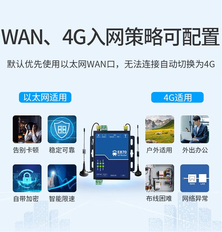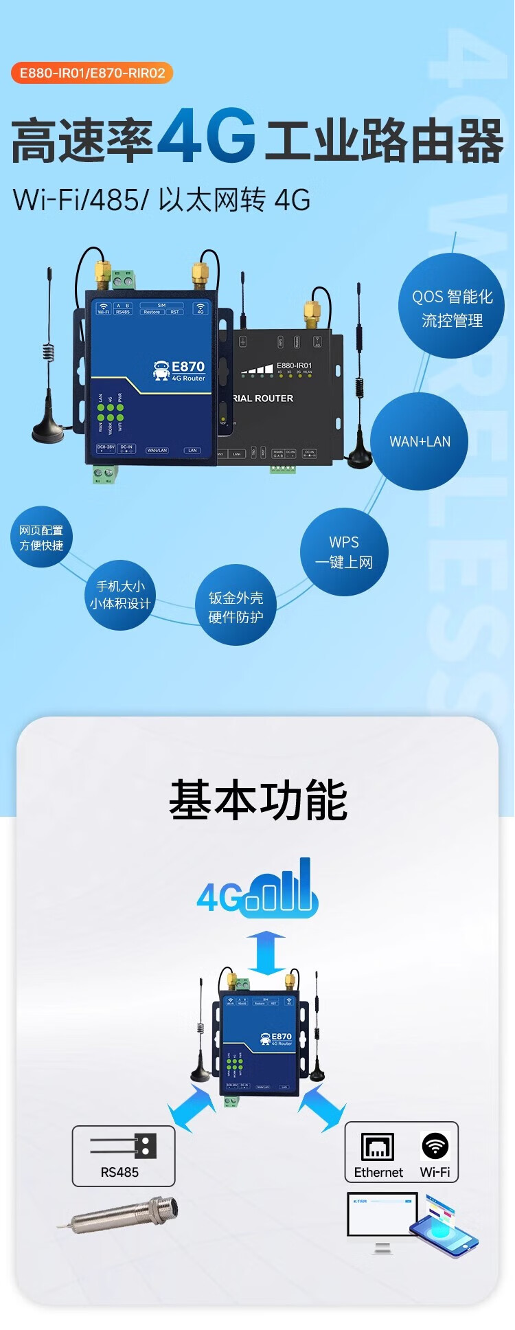 Ebyte wireless router full Netcom 4G to Ethernet 4G to WiFi QOS flow control management WPS one-click Internet access comes with antenna E870-RIR02+2A power supply +4G card