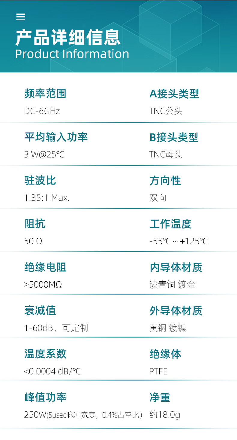 XINQY TNC-JK RF coaxial attenuator DC-6GHz power 3W fixed attenuation head 1-30/40dB DC-6GHz power 3W attenuation value 3dB