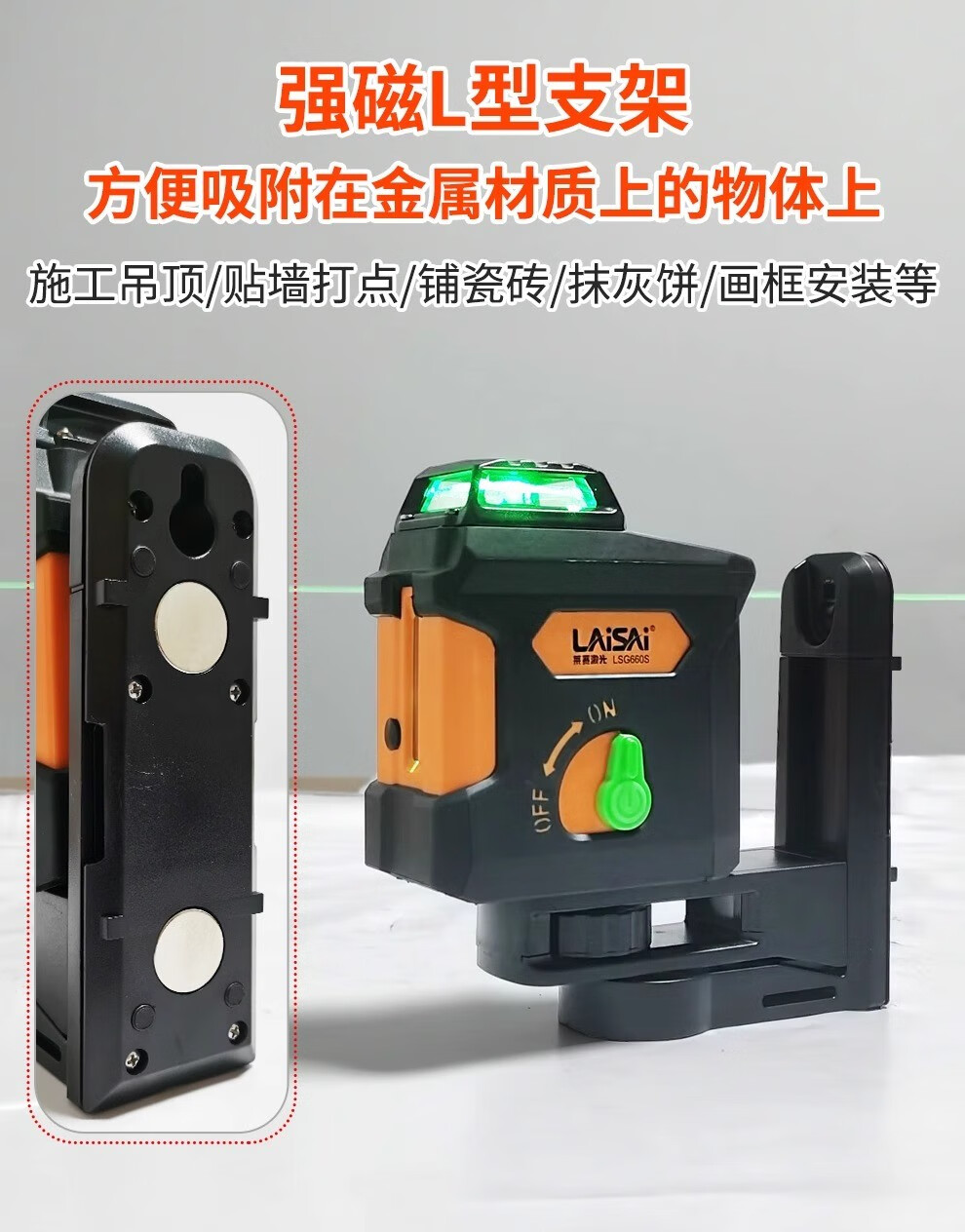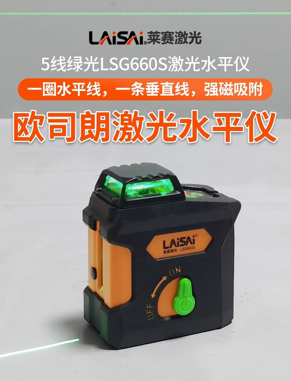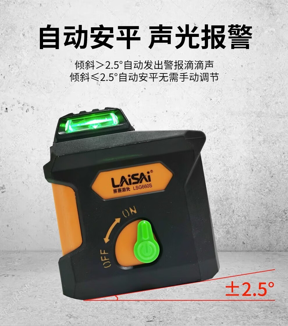 LAISAI laser level 5-line green light LSG660S laser infrared high-precision strong light thin line leveler strong magnetic adsorption 5-line green light LSG660S dual battery + tripod