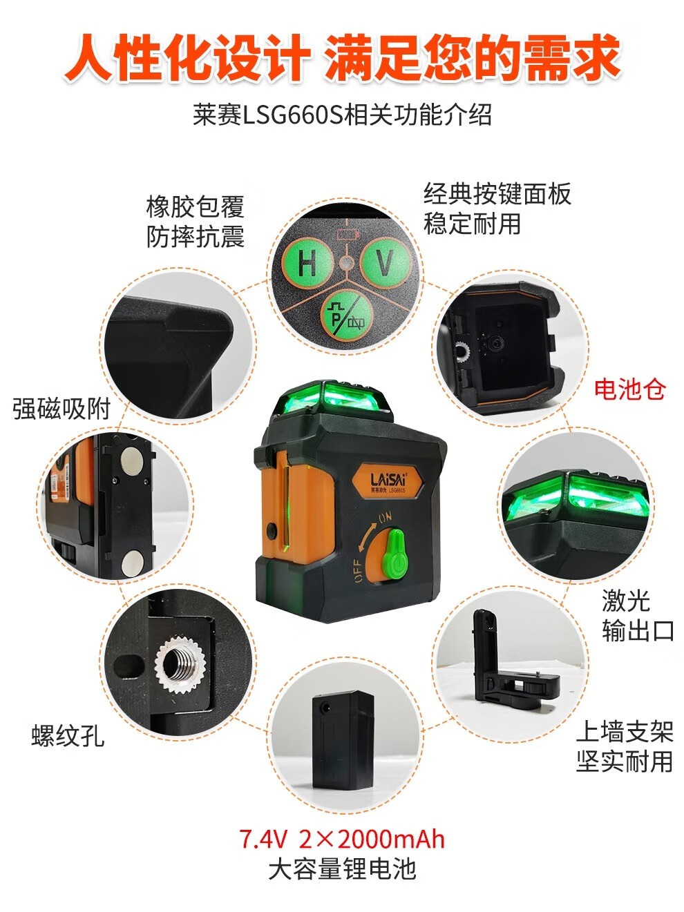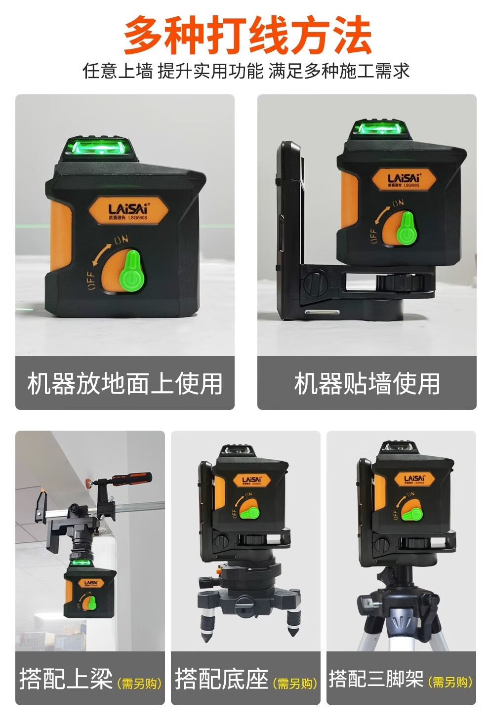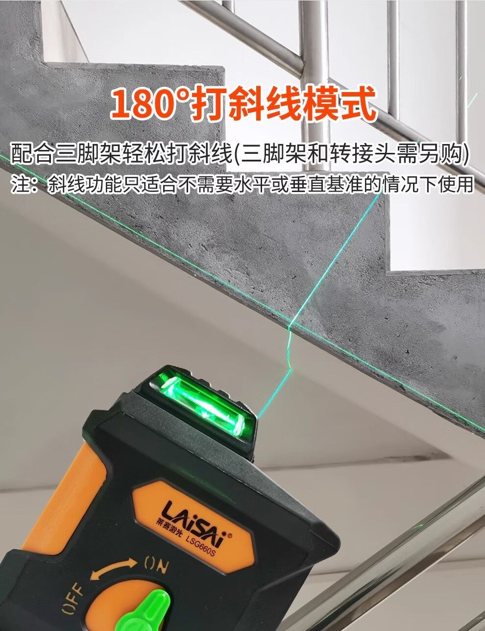 LAISAI laser level 5-line green light LSG660S laser infrared high-precision strong light thin line leveler strong magnetic adsorption 5-line green light LSG660S dual battery + tripod