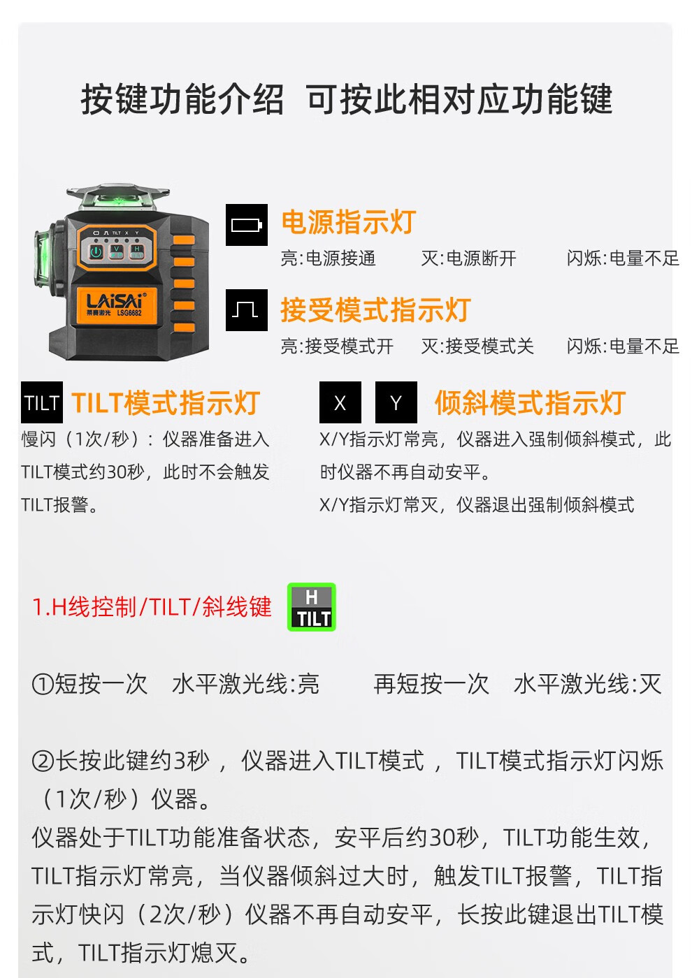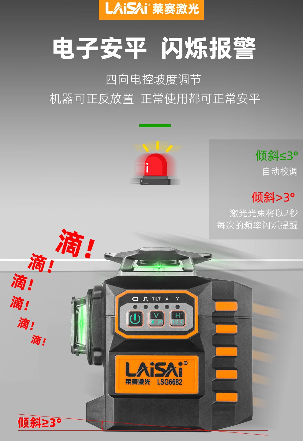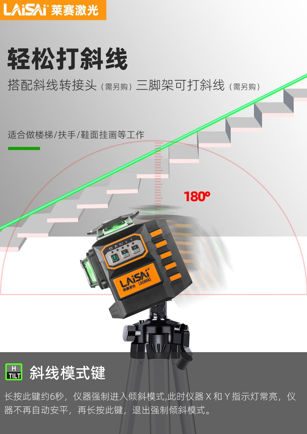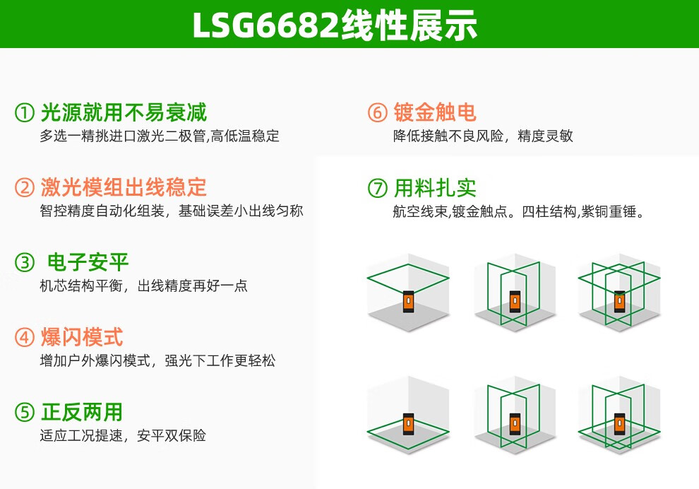 LAISAI laser level 12-line LSG6682 electronic leveling floor and wall integrated reversible plastering dot infrared 12-line LSG6682 green light standard