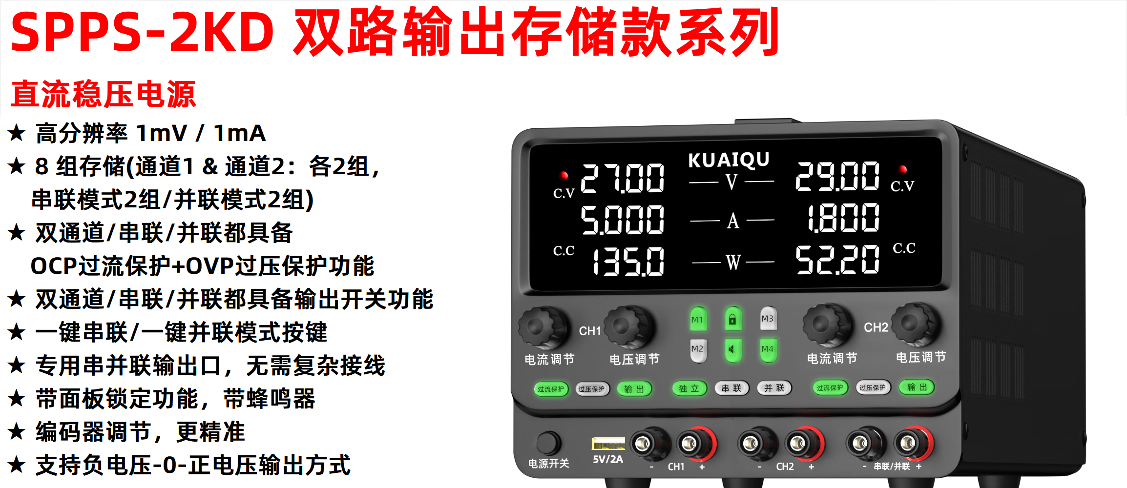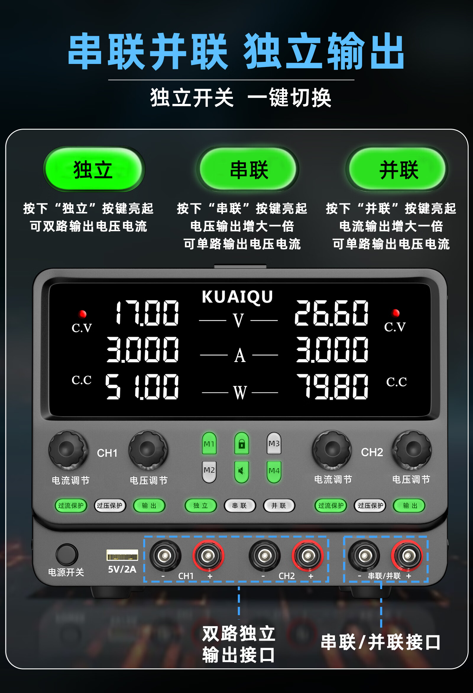 KUAIQU adjustable DC regulated power supply 60V5A dual output factory experimental maintenance positive and negative output switching power supply 60V5A two-way 120V5A series 60V10A parallel