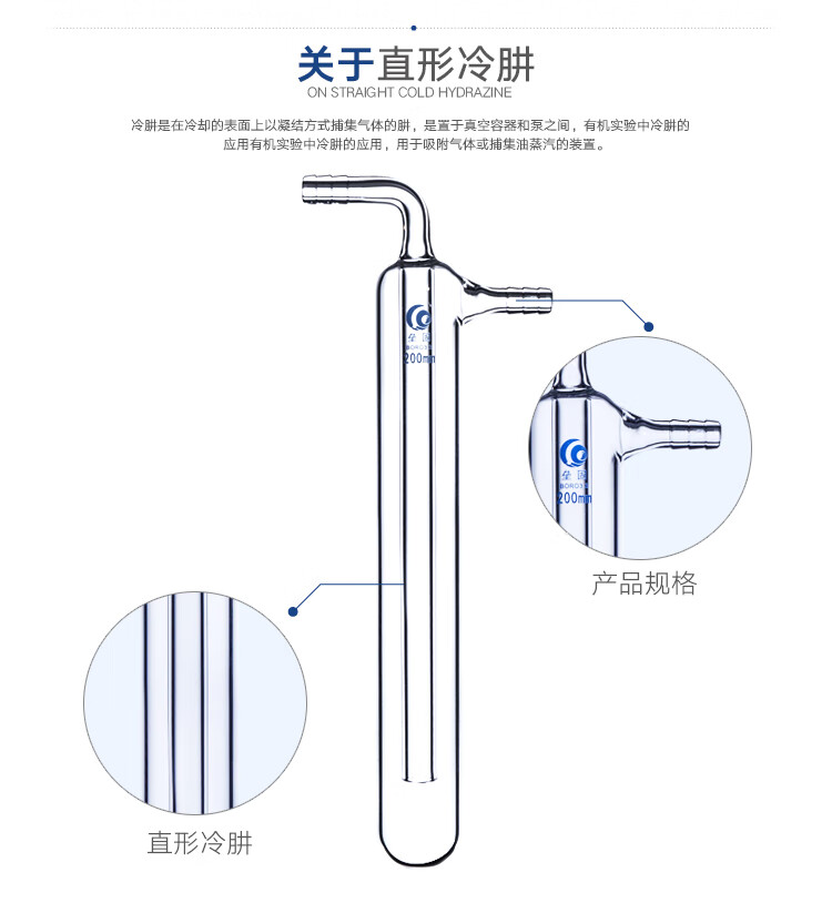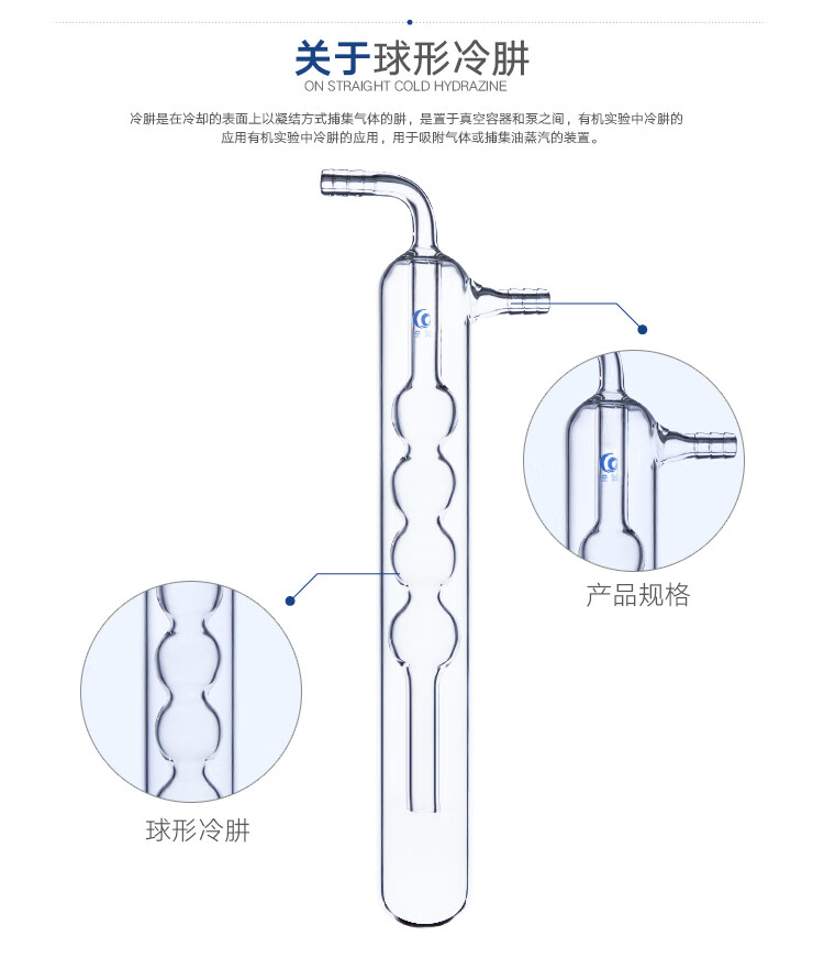 Spherical cold hydrazine straight cold hydrazine glass cold hydrazine high borosilicate glass thickened glass high temperature resistance