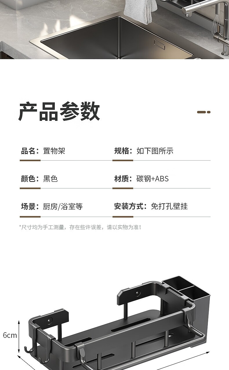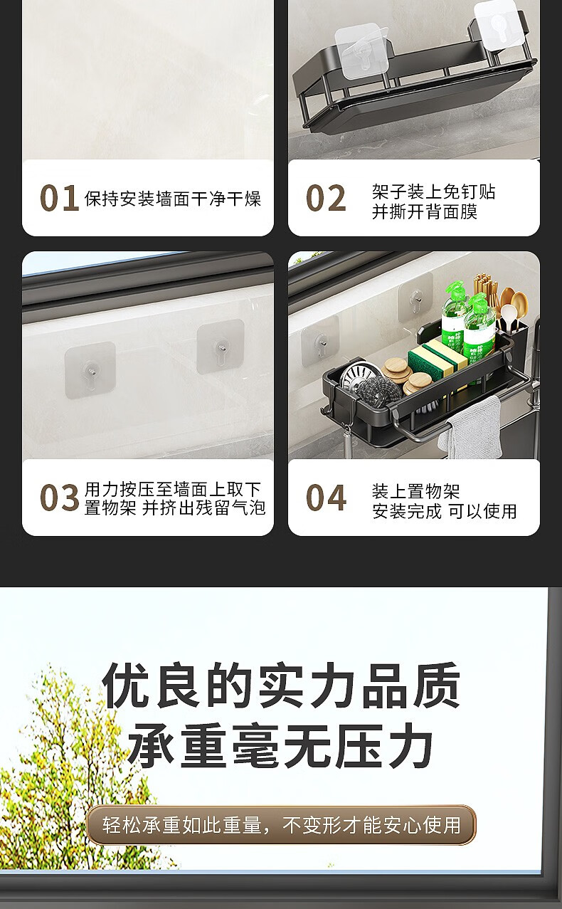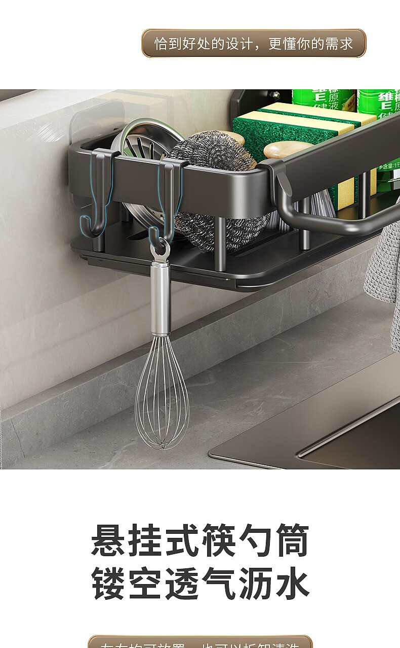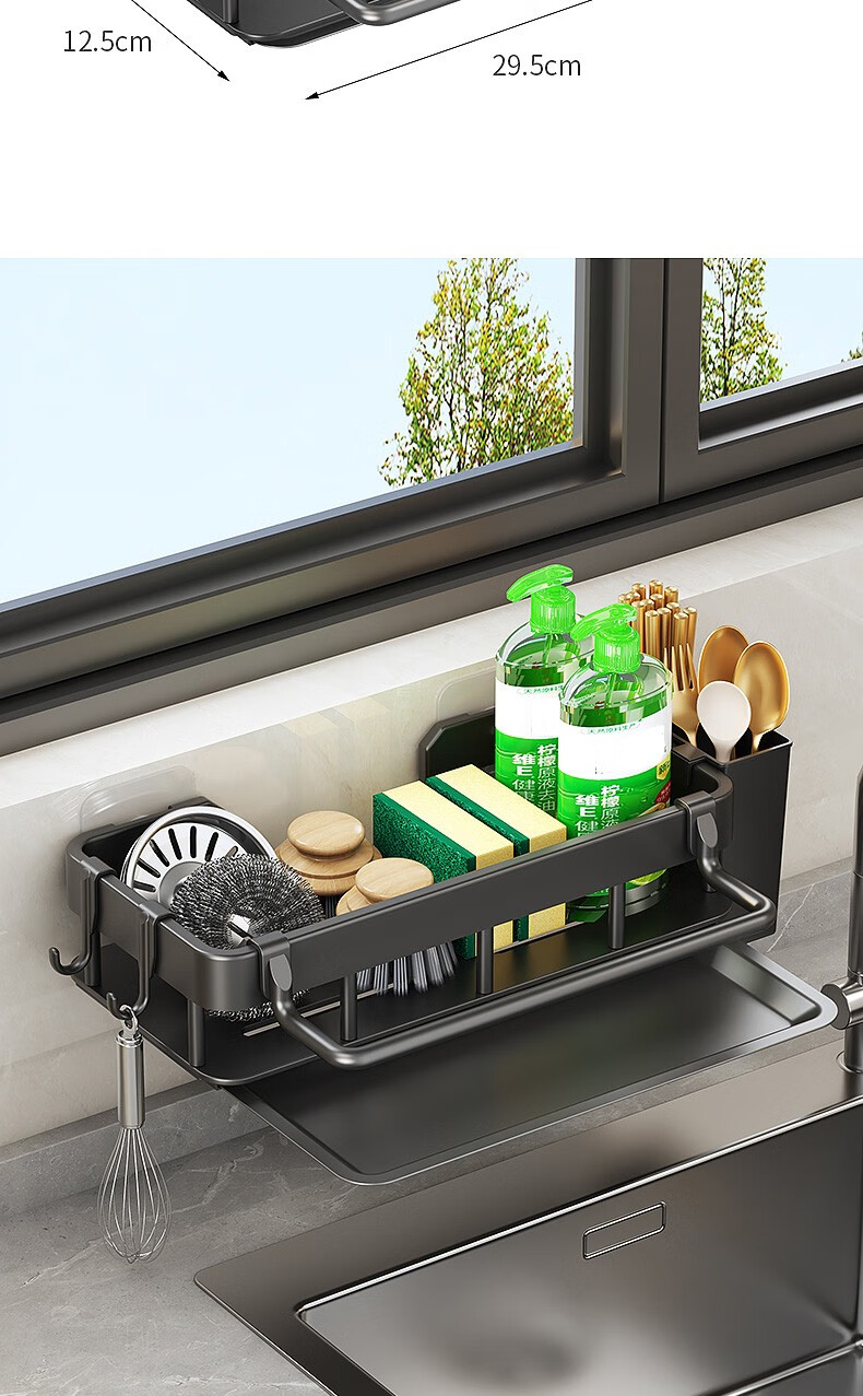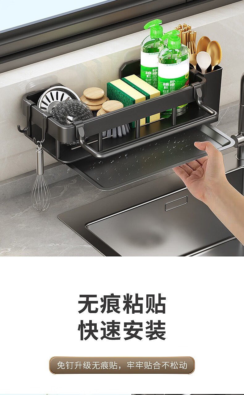 MiHangshu kitchen rack wall-mounted sink drain rack countertop rag rack bathroom storage hanging basket spice rack dishcloth rack main rack + towel bar + water tray + hook * 2