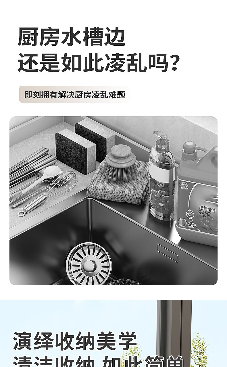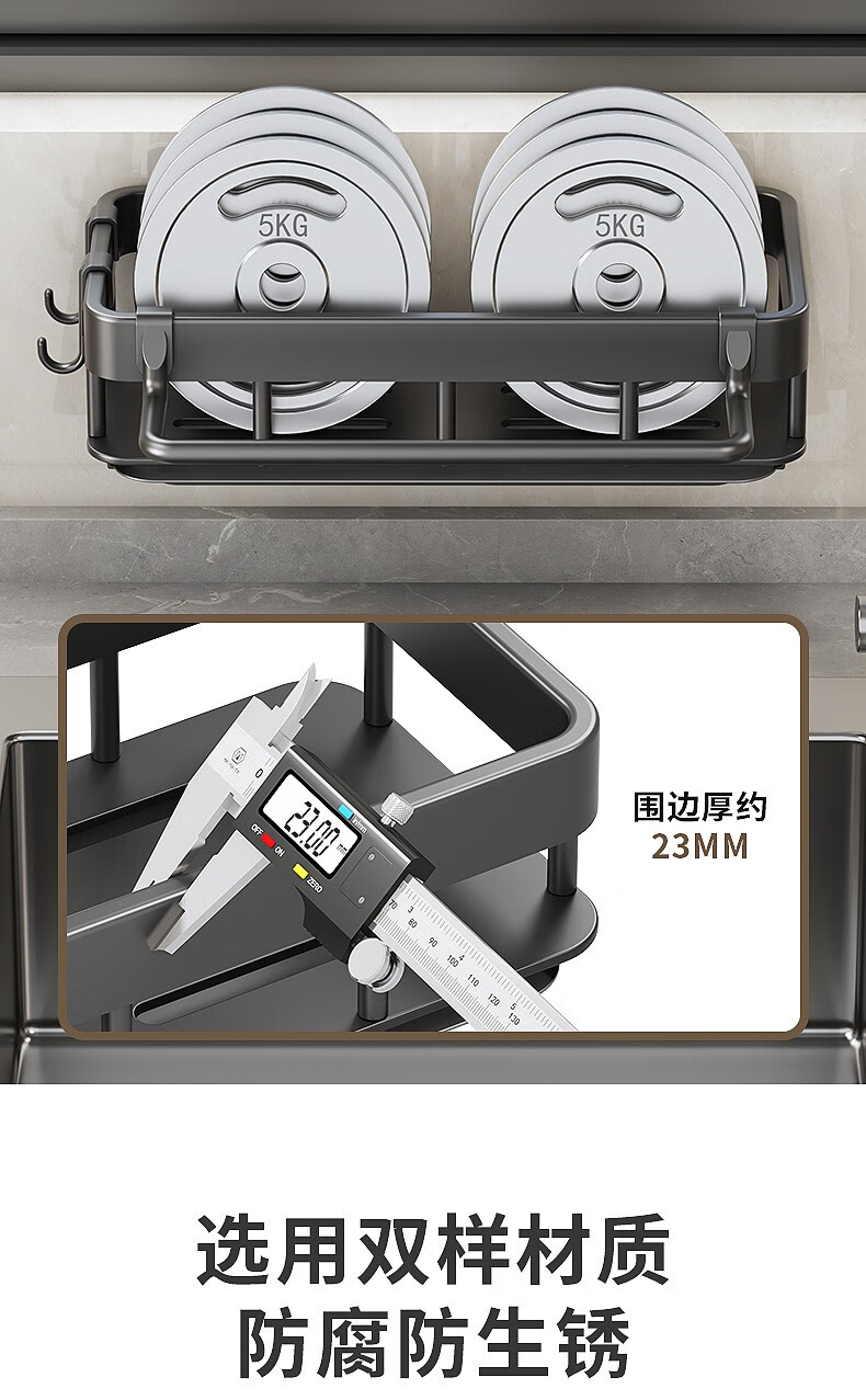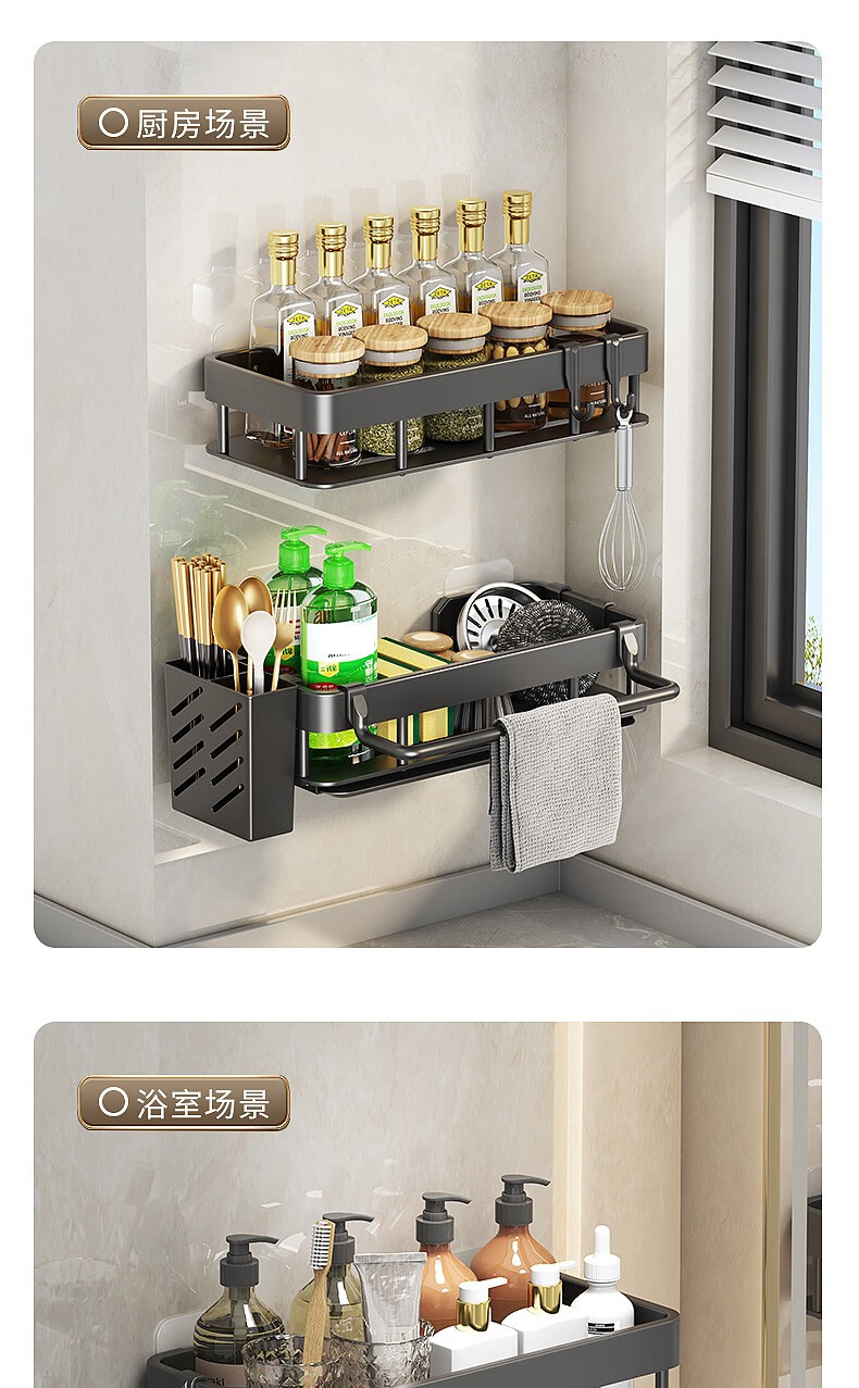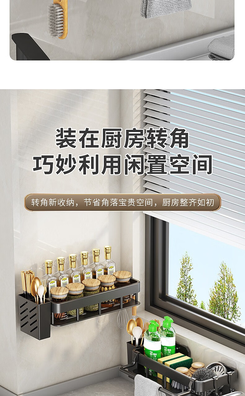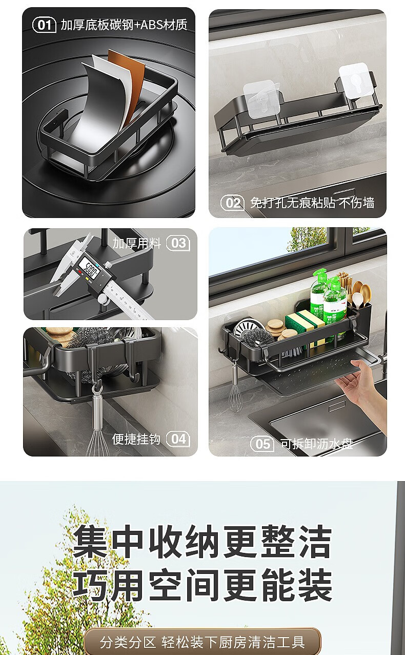 MiHangshu kitchen rack wall-mounted sink drain rack countertop rag rack bathroom storage hanging basket spice rack dishcloth rack main rack + towel bar + water tray + hook * 2