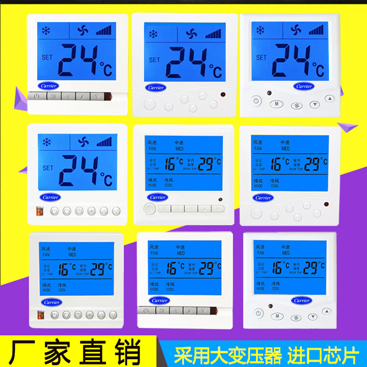 Carrier thermostat water fan coil line LCD controller panel three-speed remote control switch 805 thermostat model
