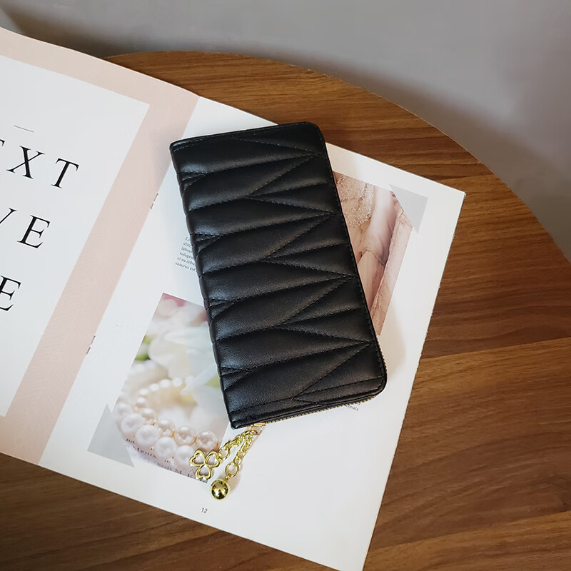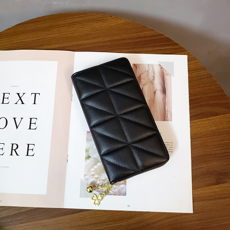 Chongsukei small&ck diamond pattern women's wallet women's long multifunctional wallet 2025 new fashion card bag clutch bag money black-checkered pattern