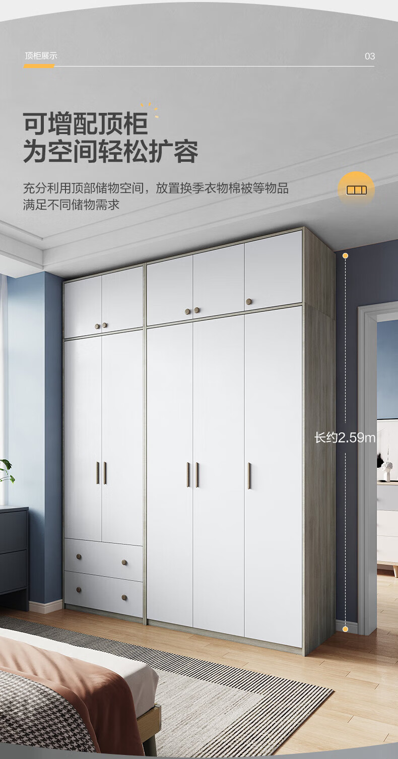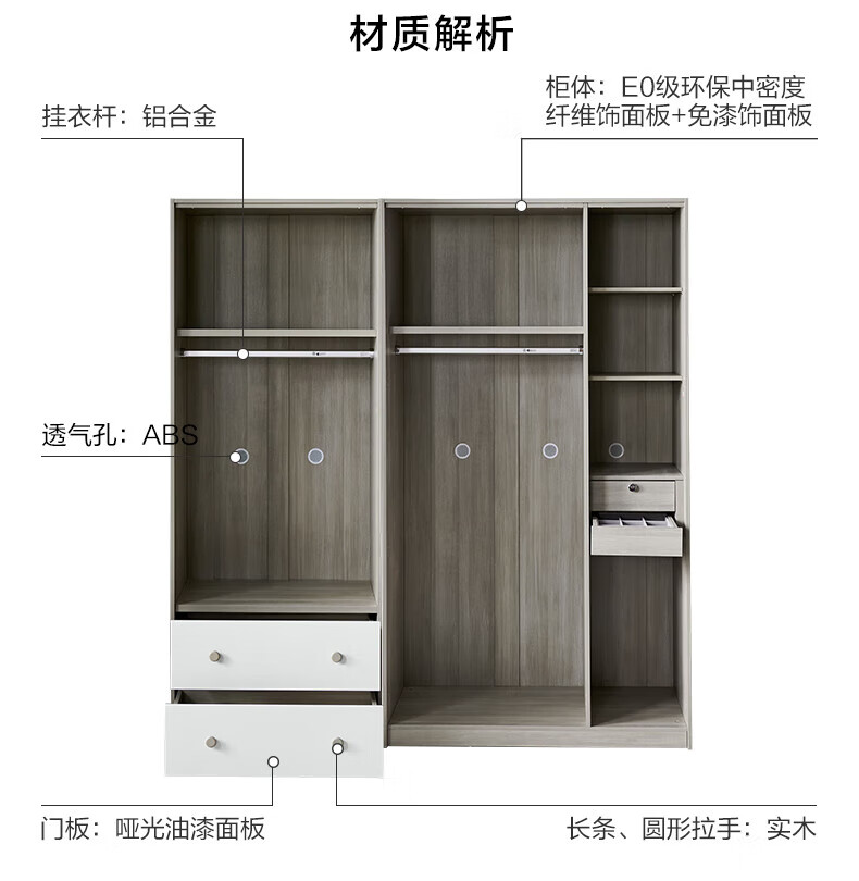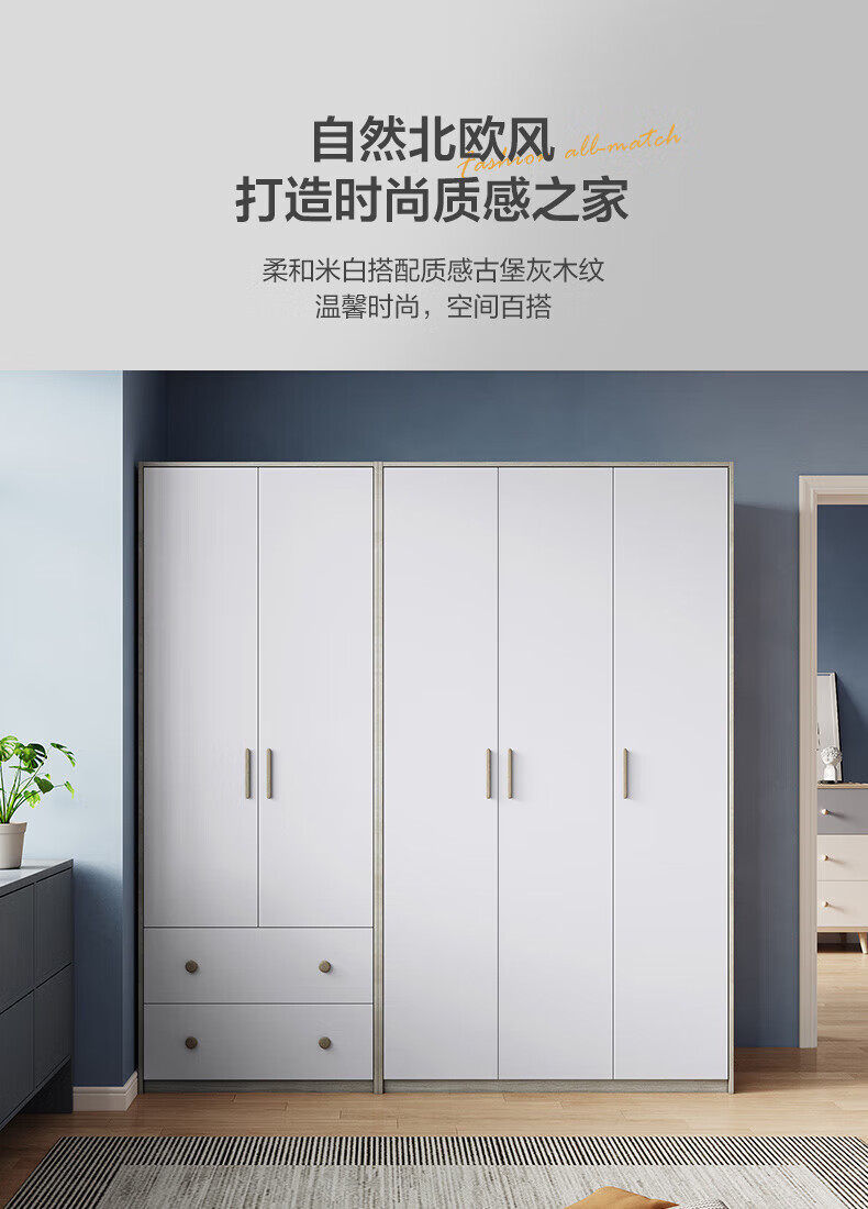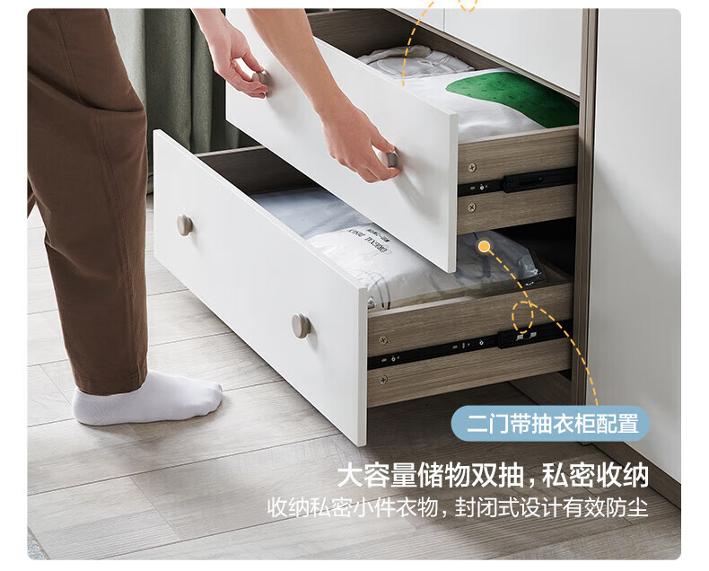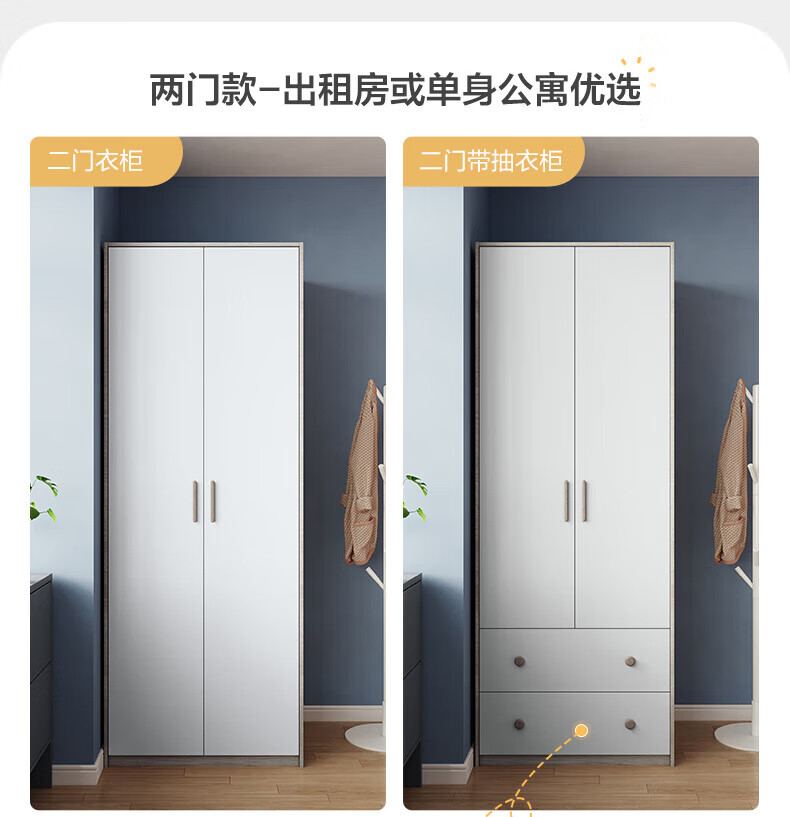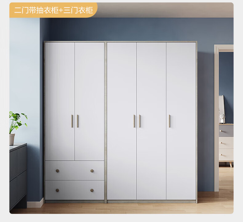 Quanyou (QUANU) Wardrobe Modern Simple Flat Door Wardrobe Warm and Versatile Bedroom Furniture Combination Large Wardrobe Two-Door Wardrobe C