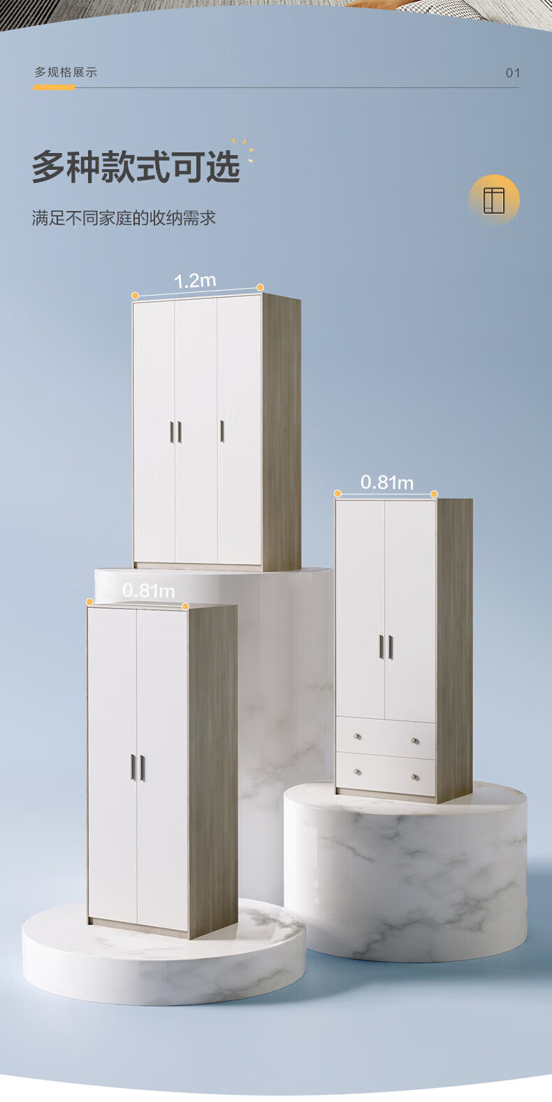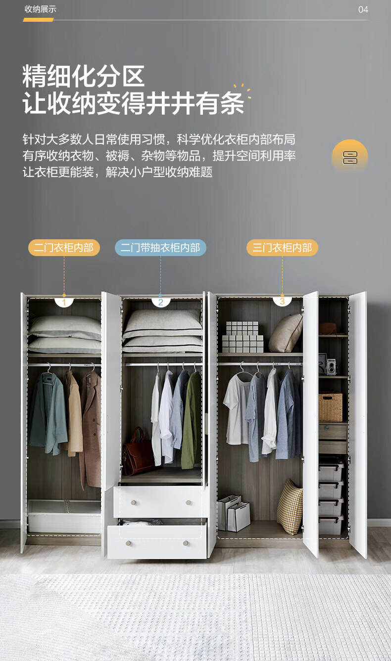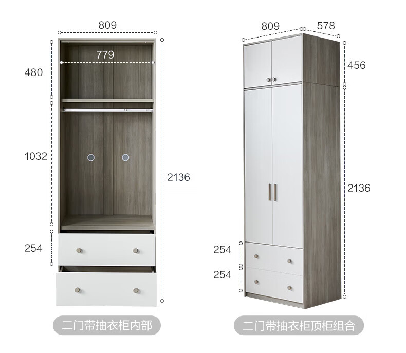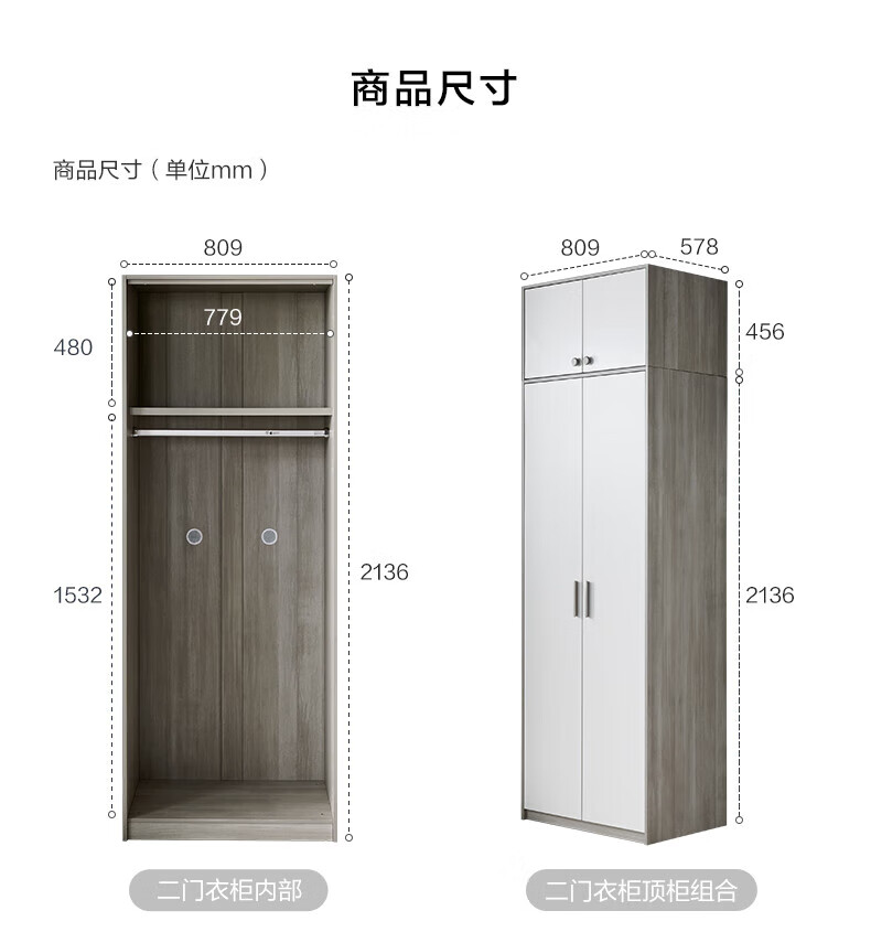 Quanyou (QUANU) Wardrobe Modern Simple Flat Door Wardrobe Warm and Versatile Bedroom Furniture Combination Large Wardrobe Two-Door Wardrobe C