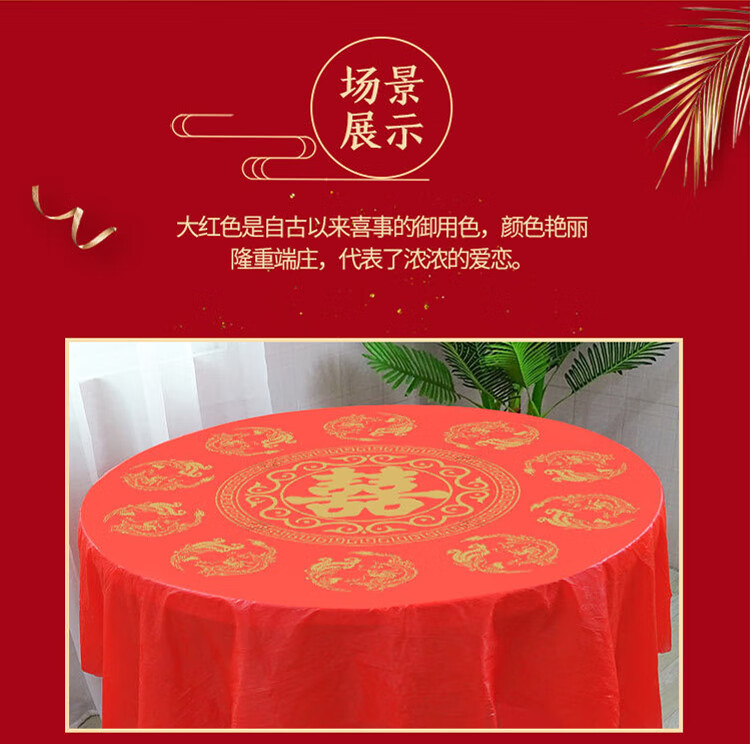 Tuojin Wedding Disposable Tablecloth Round Table with Happy Characters Tablecloth Red Festive Wedding Banquet Wedding Banquet Happy Event Home Thickened 6 Square Table Cloths with Happy Characters (200*214CM)
