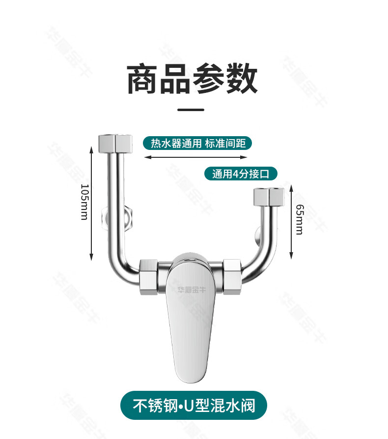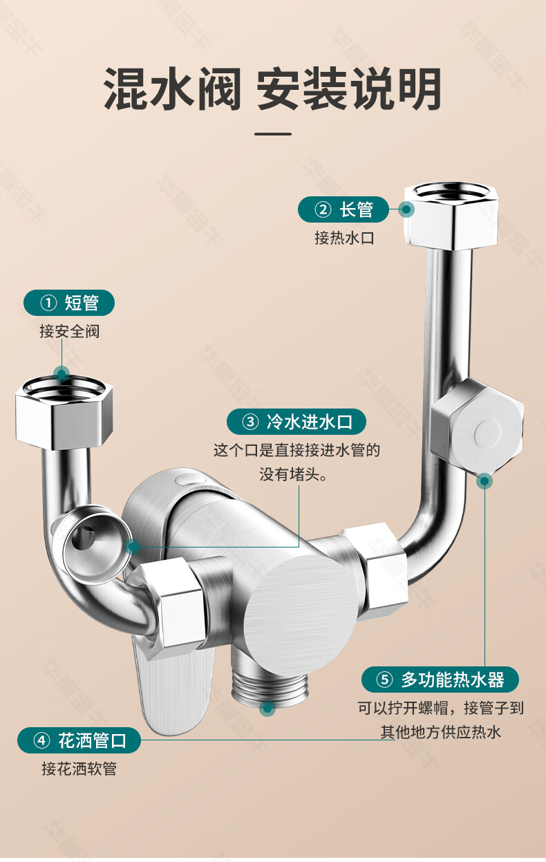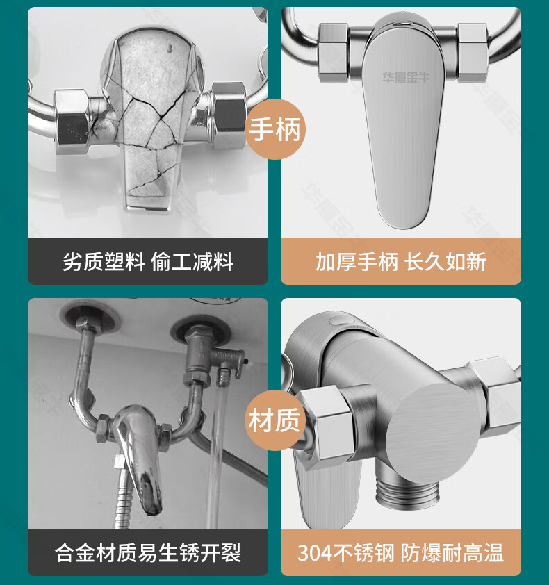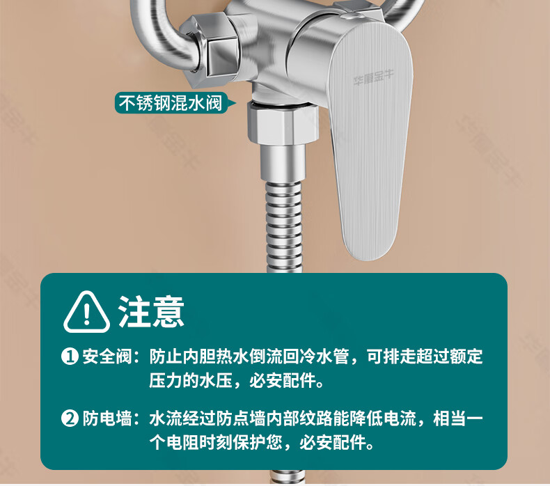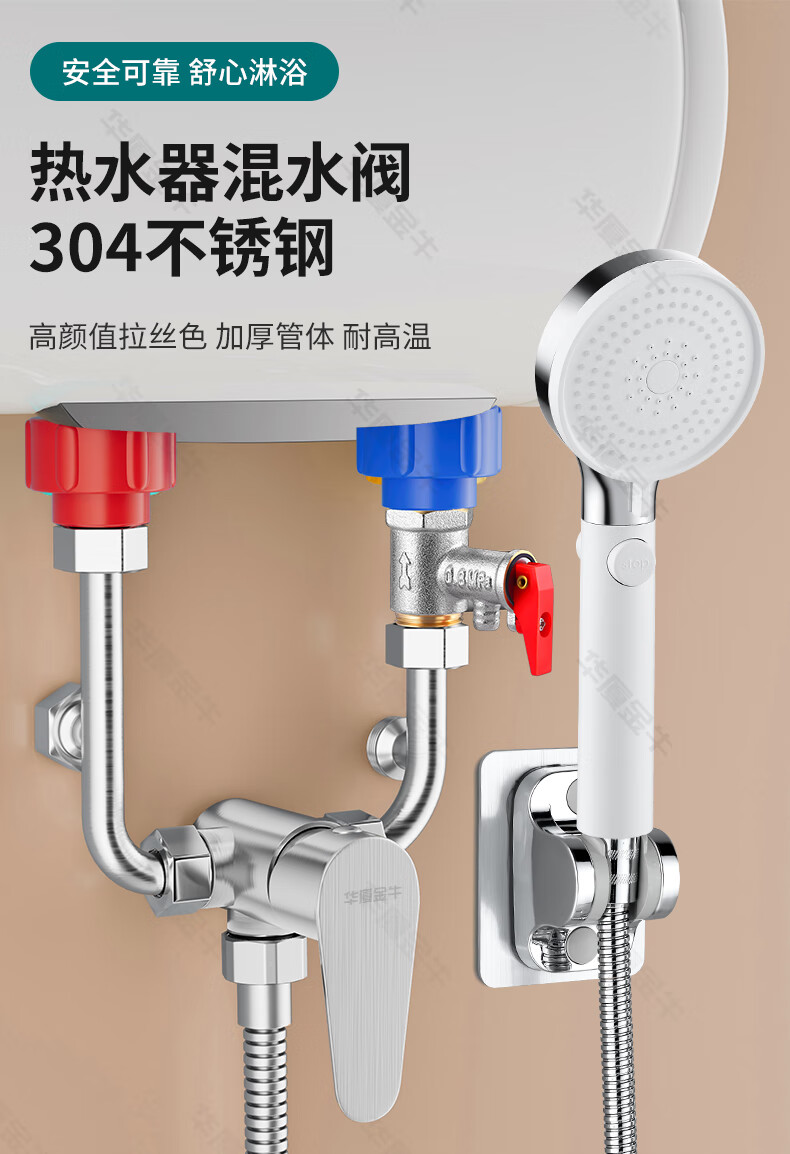 Huaxia Jinniu electric water heater mixing valve switch valve bathroom hot and cold exposed shower faucet with universal U-shaped valve 304 mixing valve + five-speed shower set