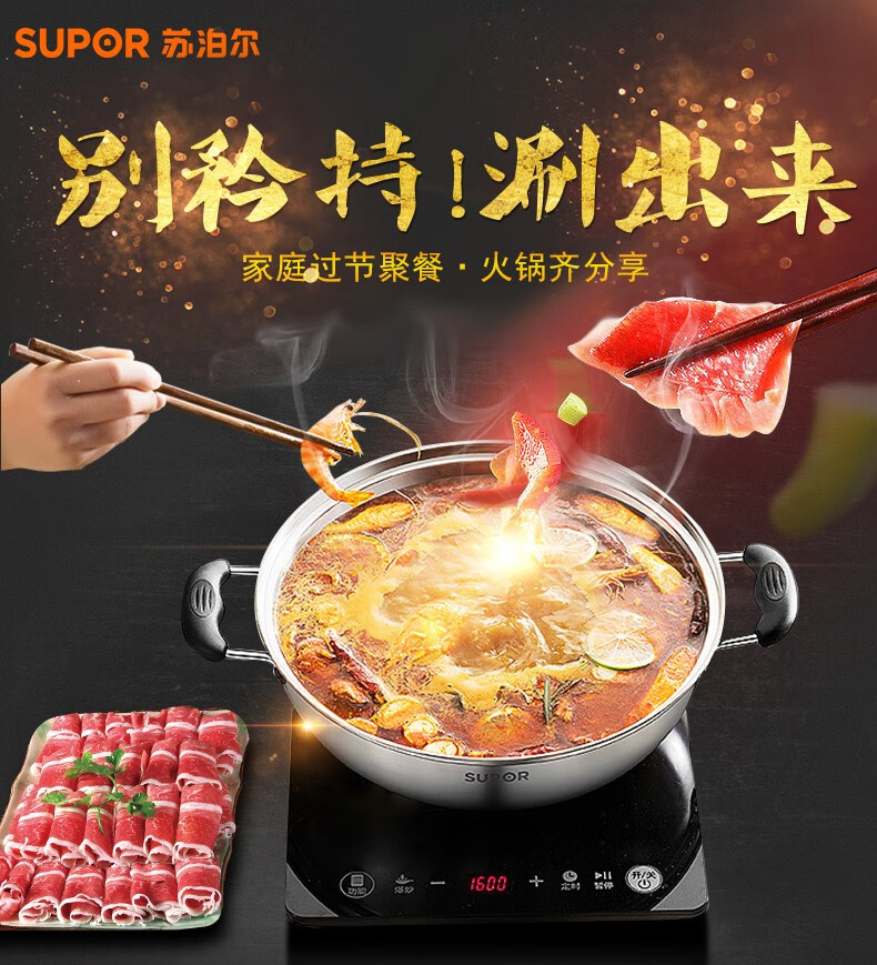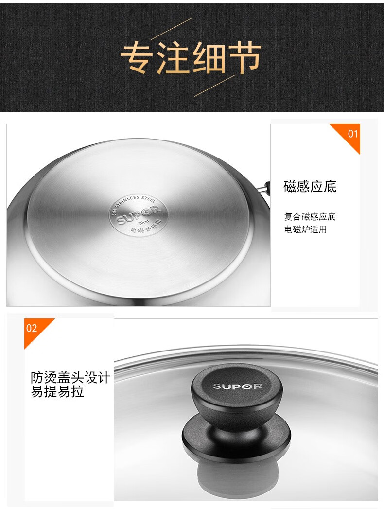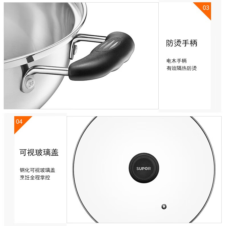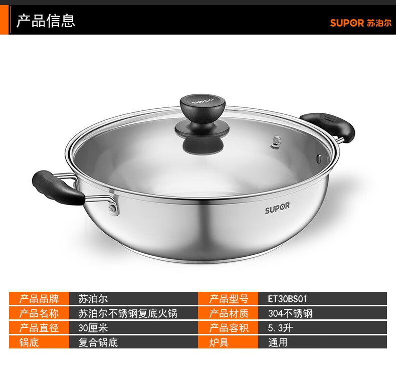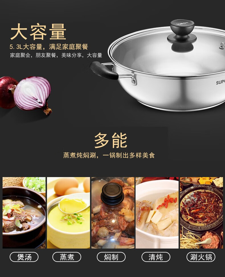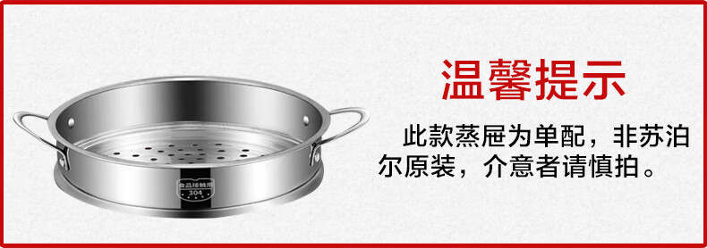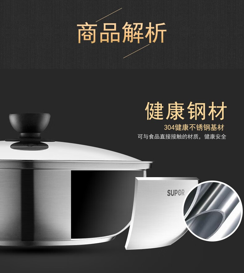 Supor steamer 304 stainless steel thickened 30CM single layer multi-layer steamer hot pot soup steamer universal gas induction cooker single layer multi-purpose pot thickened bottom 1 layer 30cm