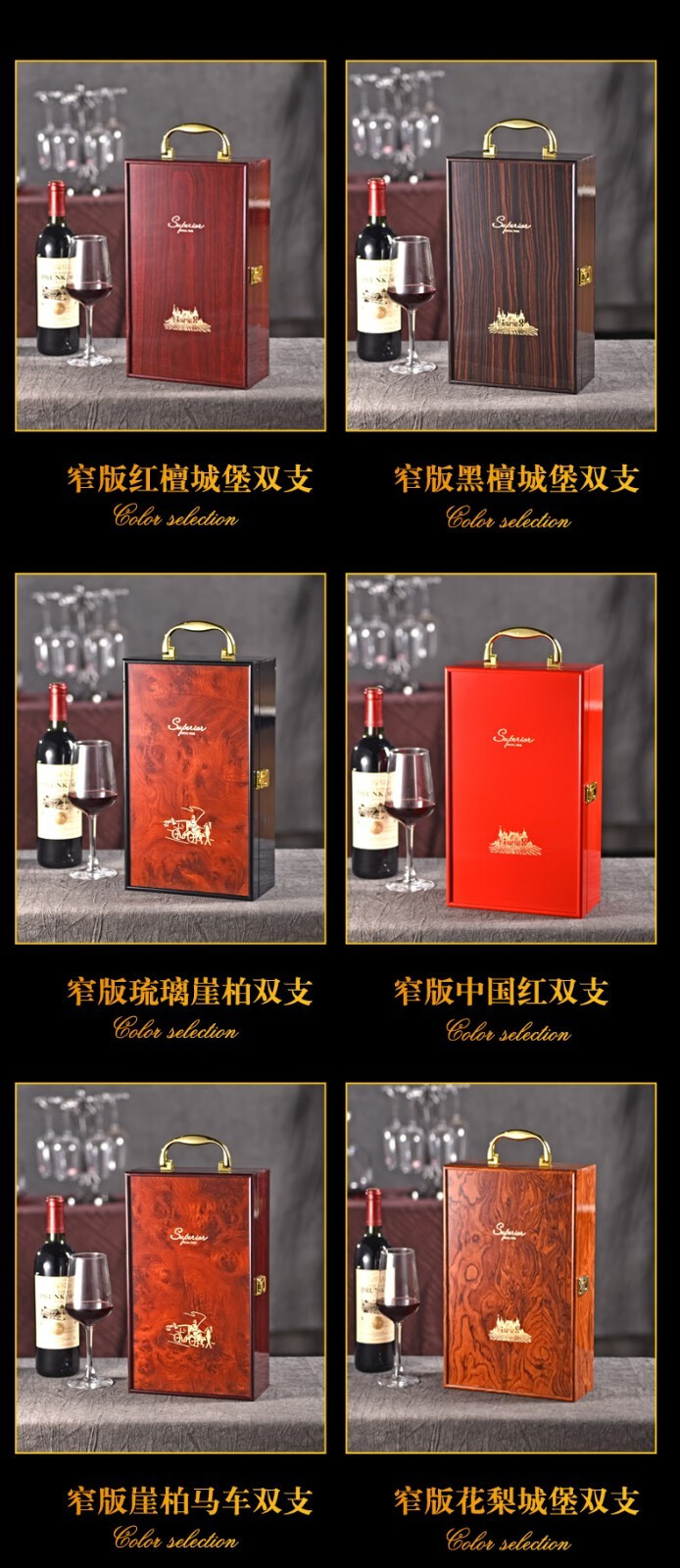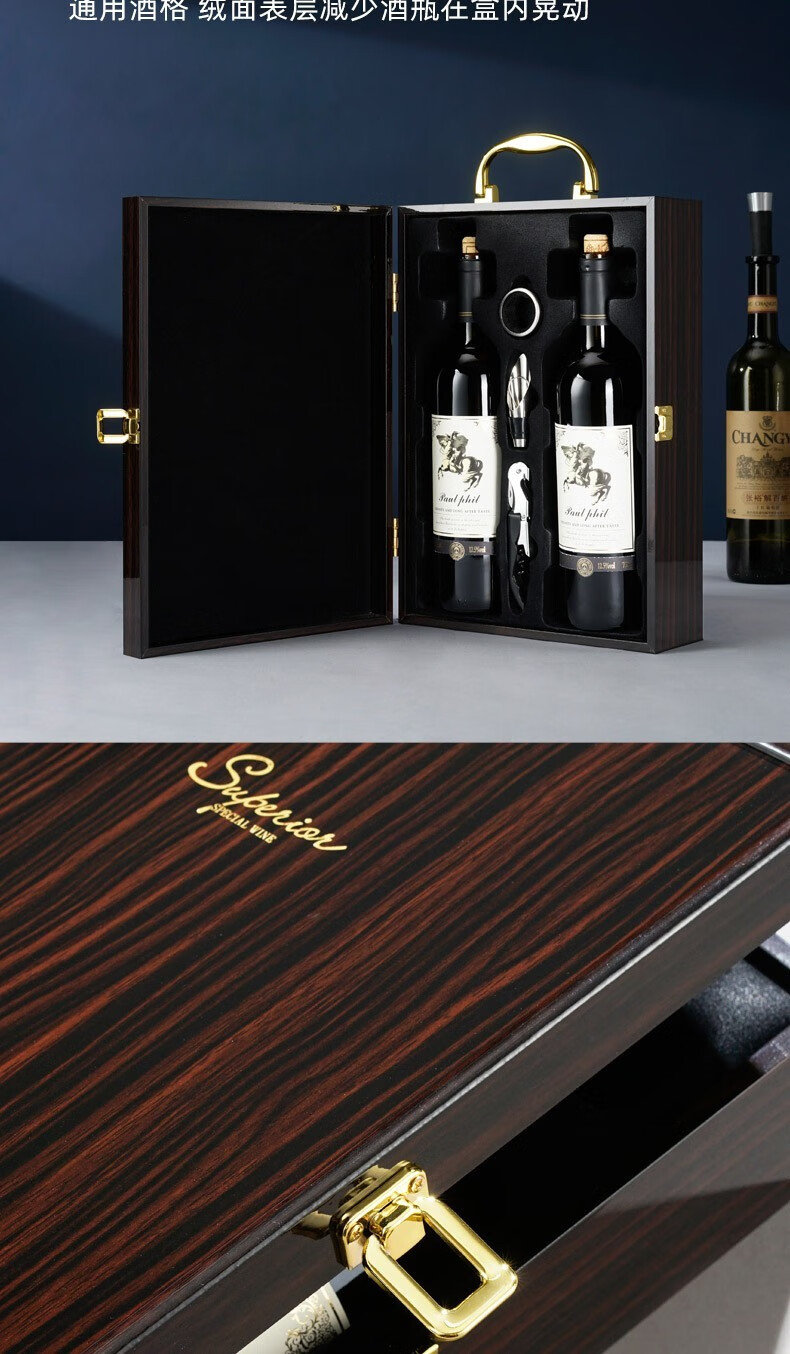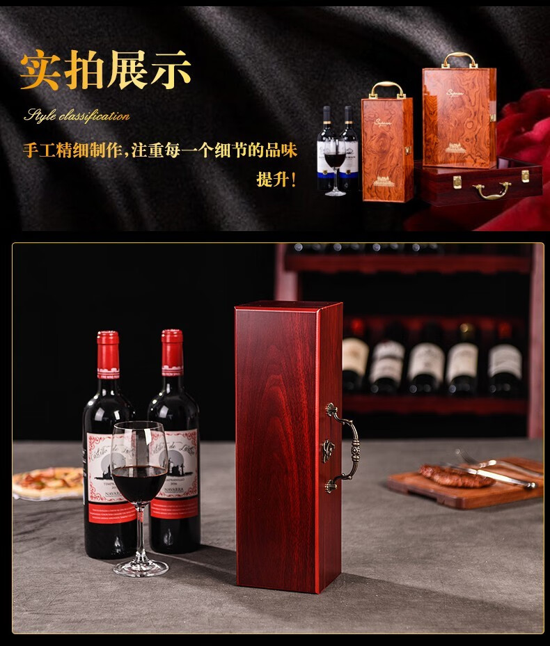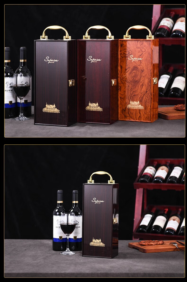 Taigetu red wine gift box empty box 2 wine wine packaging box universal leather empty packaging box double red packaging wine box red sandalwood castle four