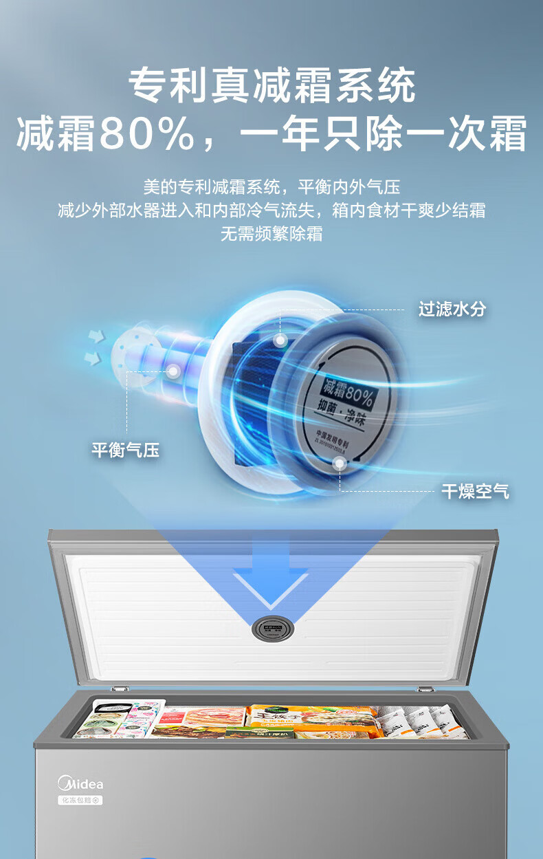 Midea 300 liters or above freezer household small freezer large capacity freezer commercial - 40 degree seafood special cabinet cryogenic quick freezer single temperature horizontal tea refrigerator freezer 419 liters newly upgraded taste and frost reduction quick freezing - 40