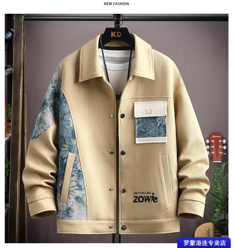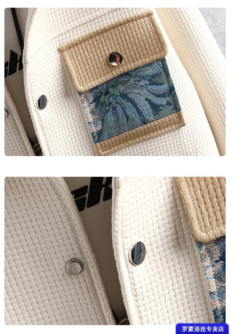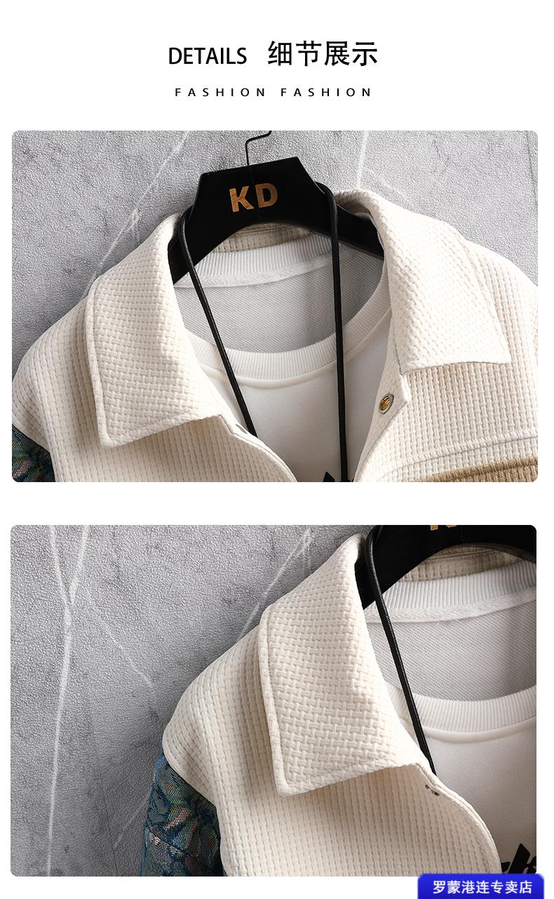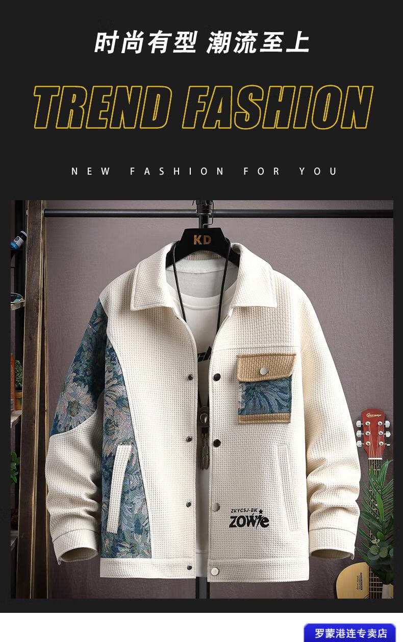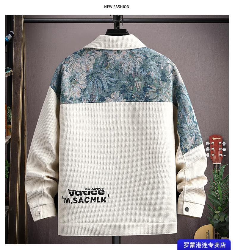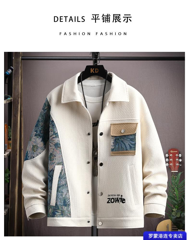 ROMON Waffle Jacket Men's Autumn and Winter Ethnic Style Splicing Loose Casual Lapel Jacket Handsome Winter Top 525 White