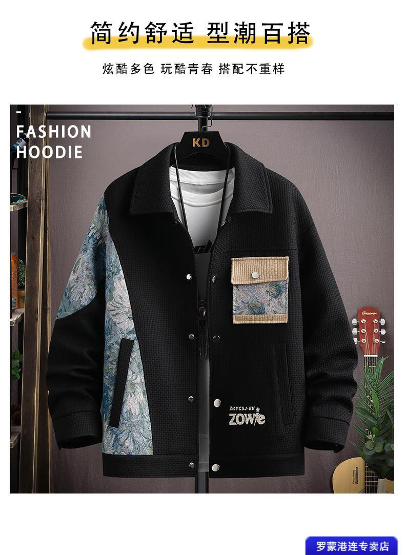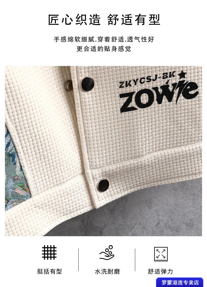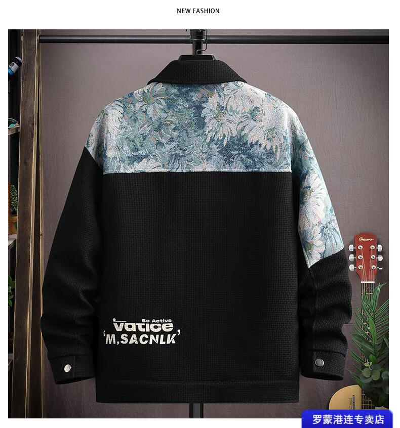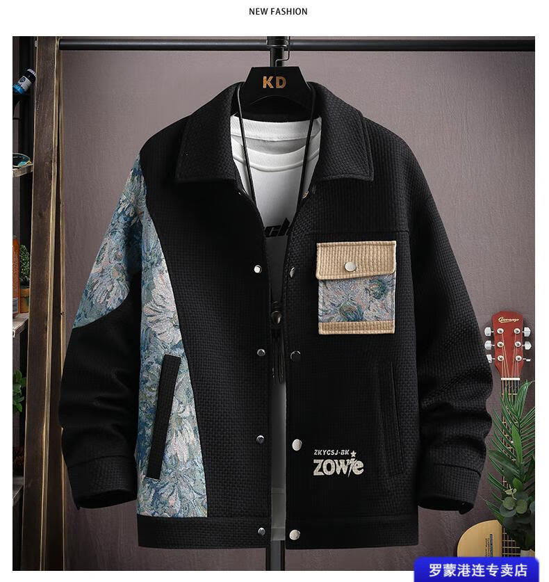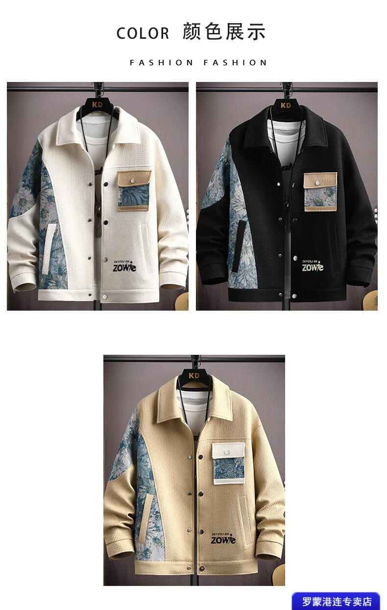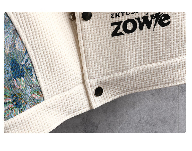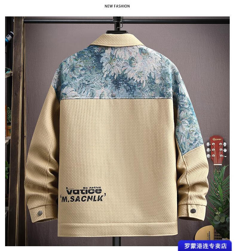 ROMON Waffle Jacket Men's Autumn and Winter Ethnic Style Splicing Loose Casual Lapel Jacket Handsome Winter Top 525 White