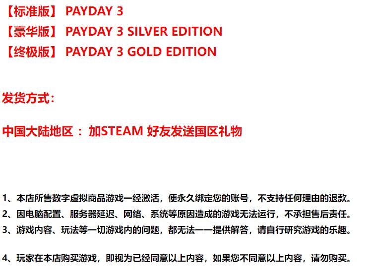 STEAM PC Genuine PAYDAY 3 Action Cooperation First Person 3D Shooting Payday 3 PAYDAY 3