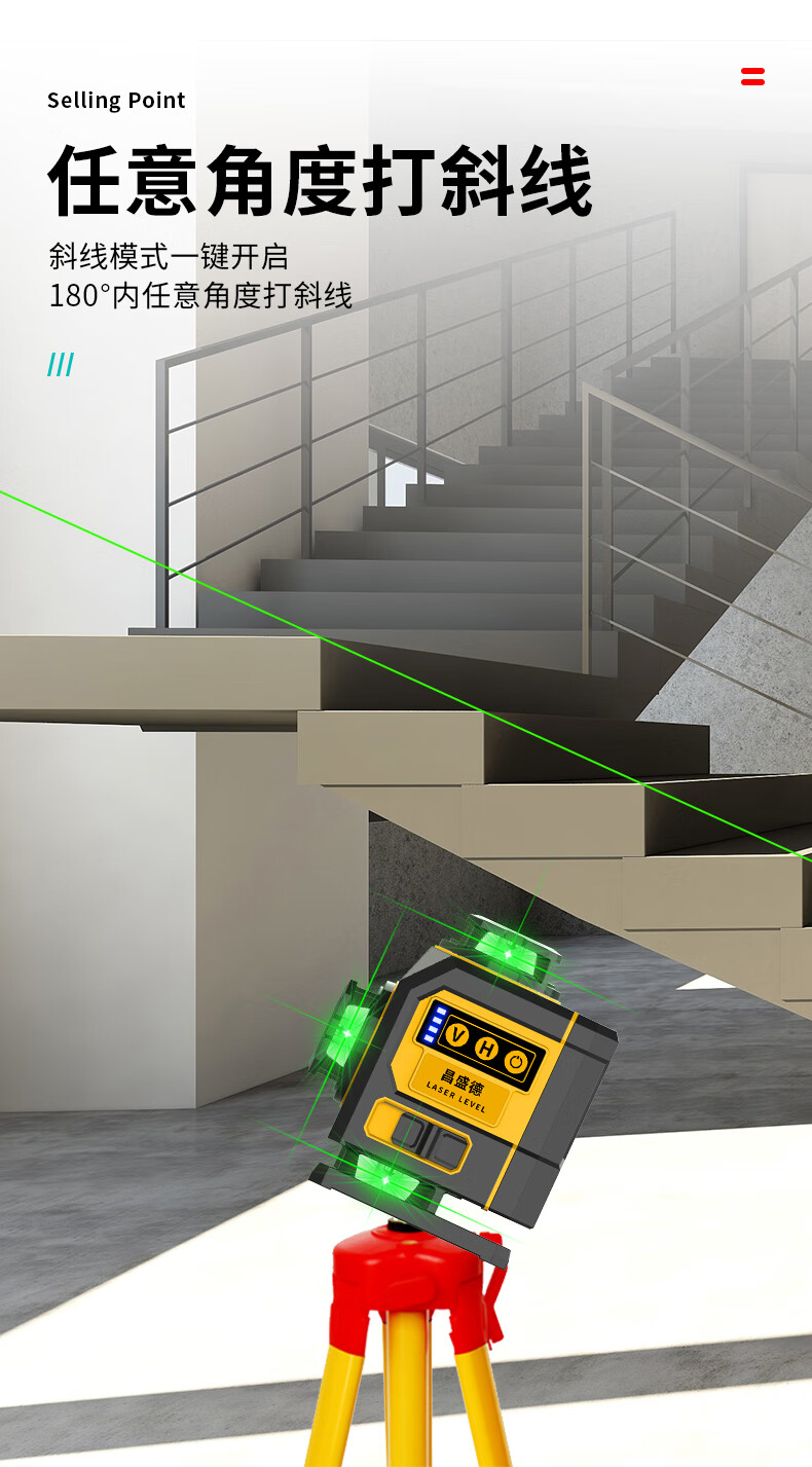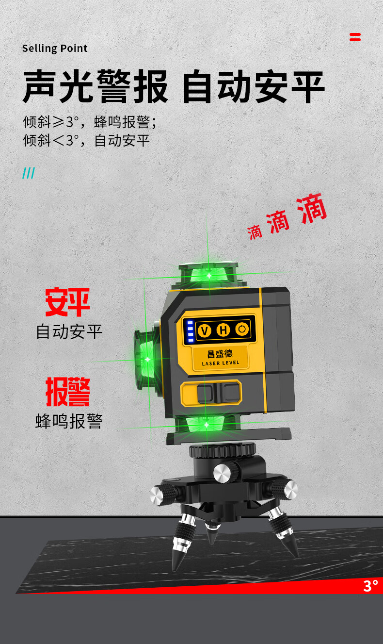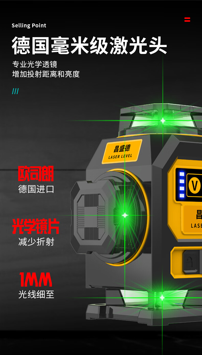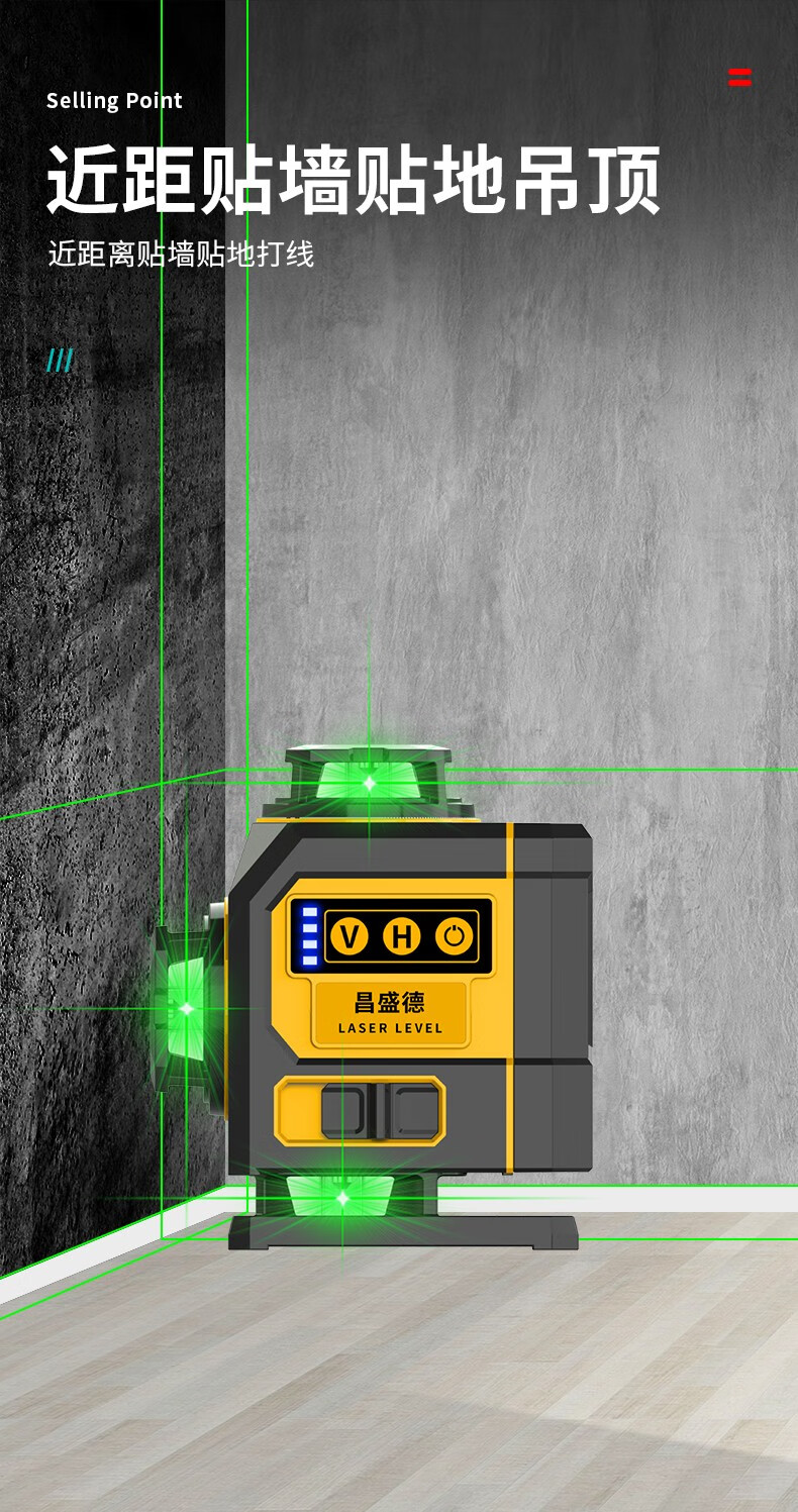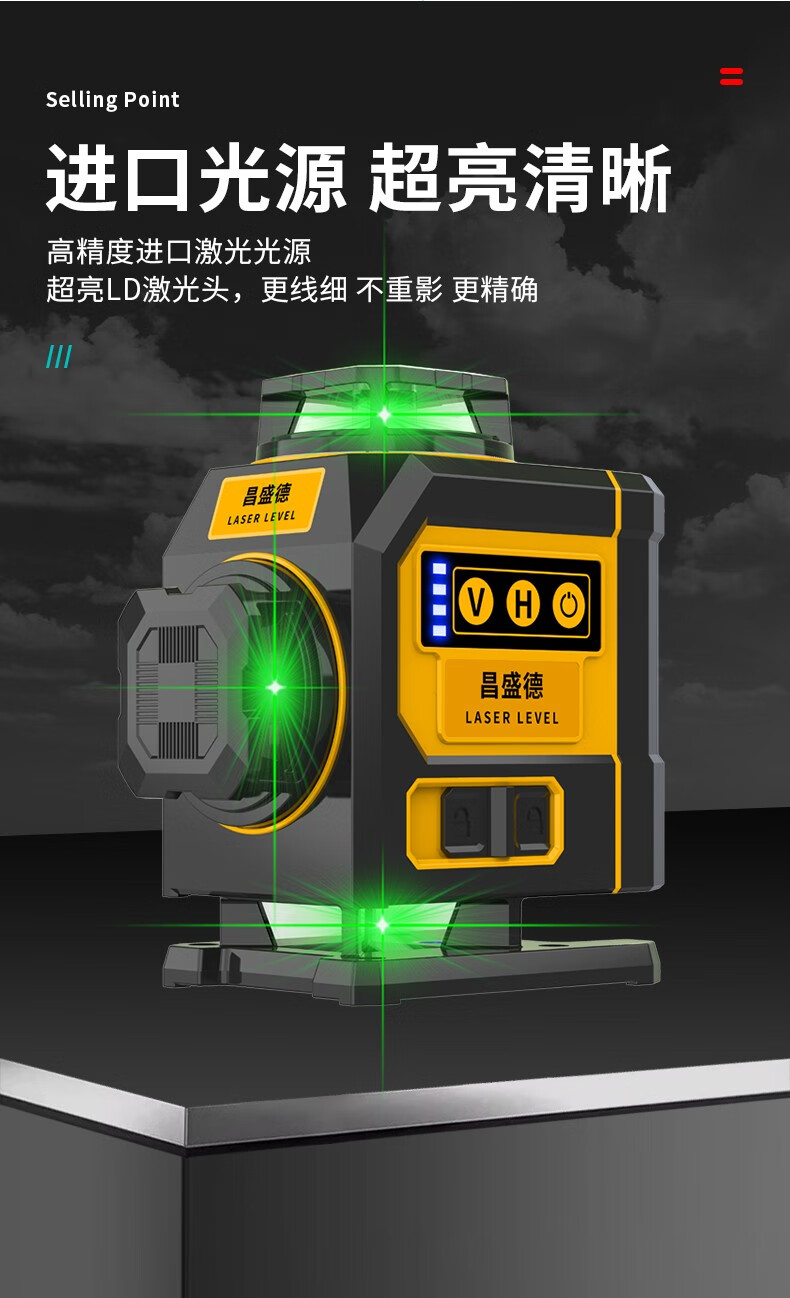 Changshengde mini digital display level high-precision strong light thin line automatic leveling infrared laser level super strong light digital display red light 8 lines luxury high configuration