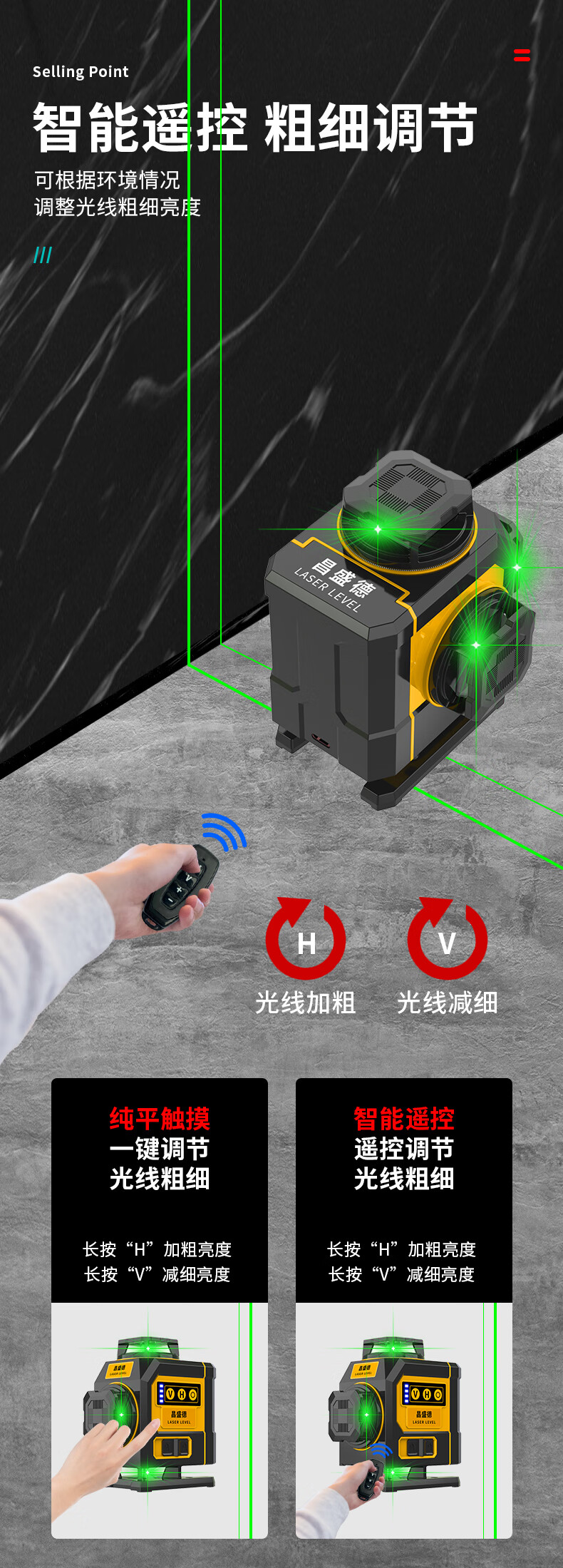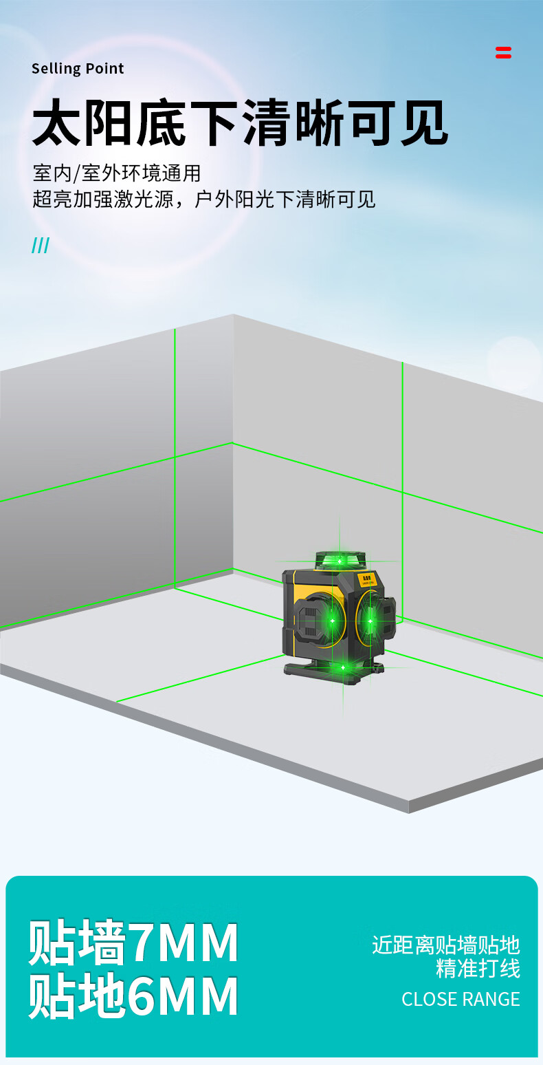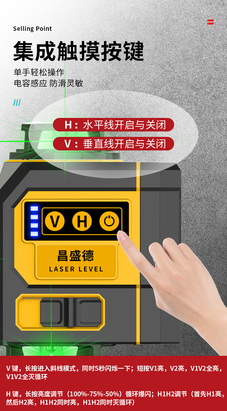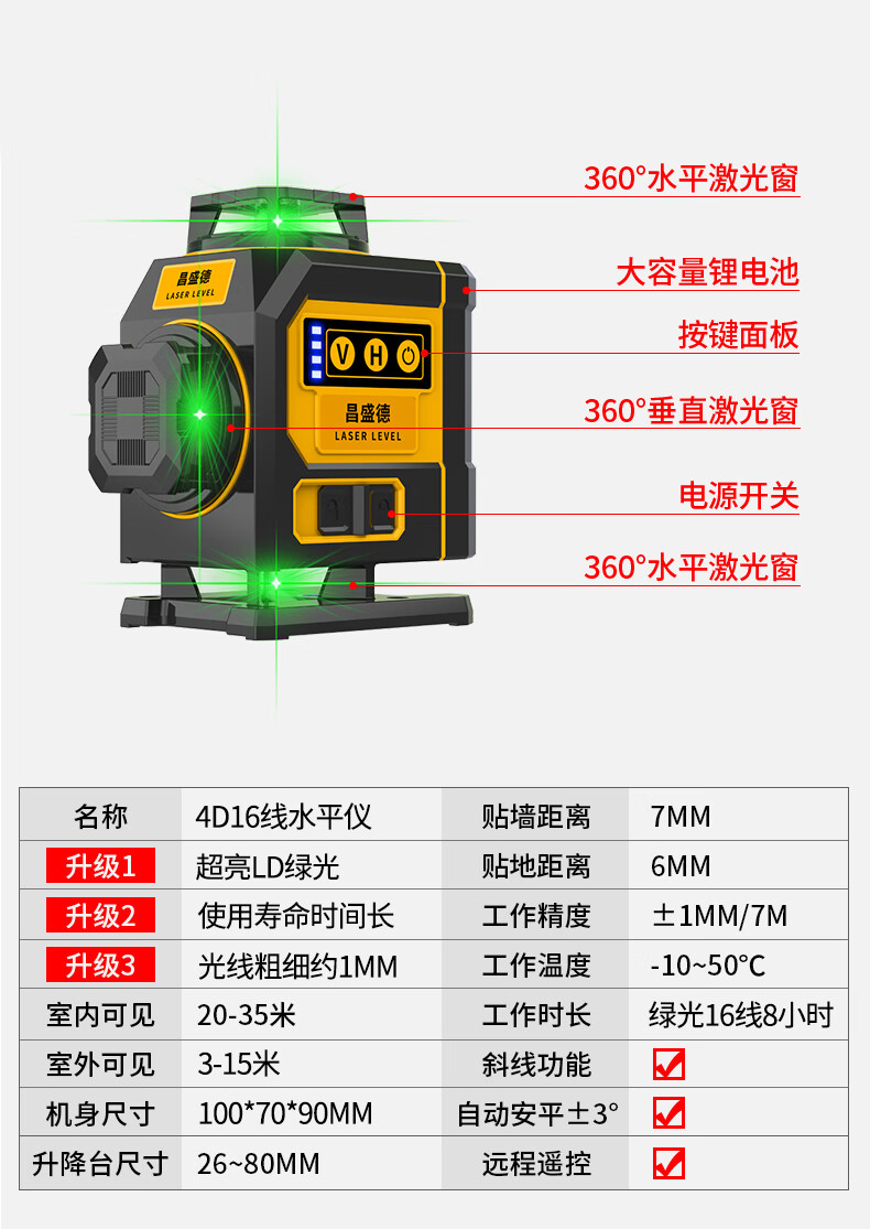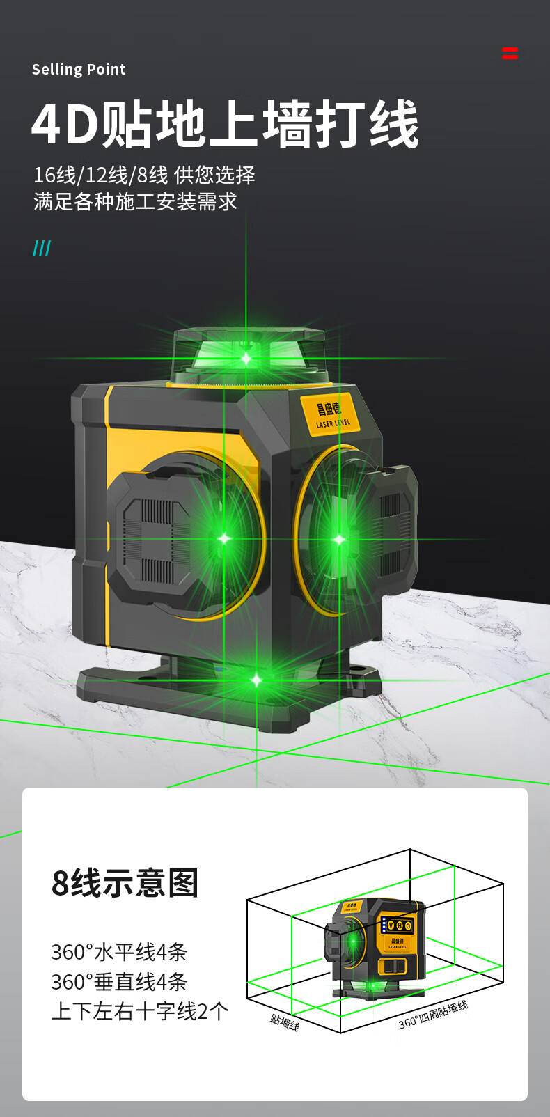 Changshengde mini digital display level high-precision strong light thin line automatic leveling infrared laser level super strong light digital display red light 8 lines luxury high configuration