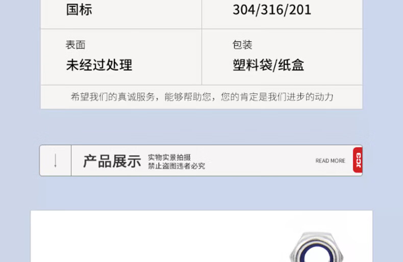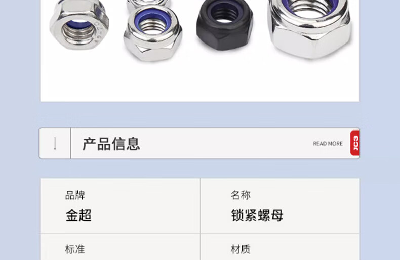 Jinchao 316 anti-loosening self-locking nut 304 stainless steel nylon anti-slip locking hexagonal screw M34M5M6M8M10 M4 (50 pieces) 304