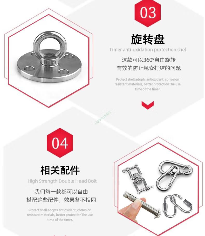 Dixin 304 stainless steel hanging ring yoga hanging plate hanging ring fixed buckle fixed plate hook 304 rotating plate load bearing 300kg