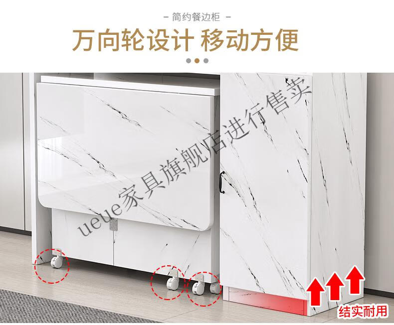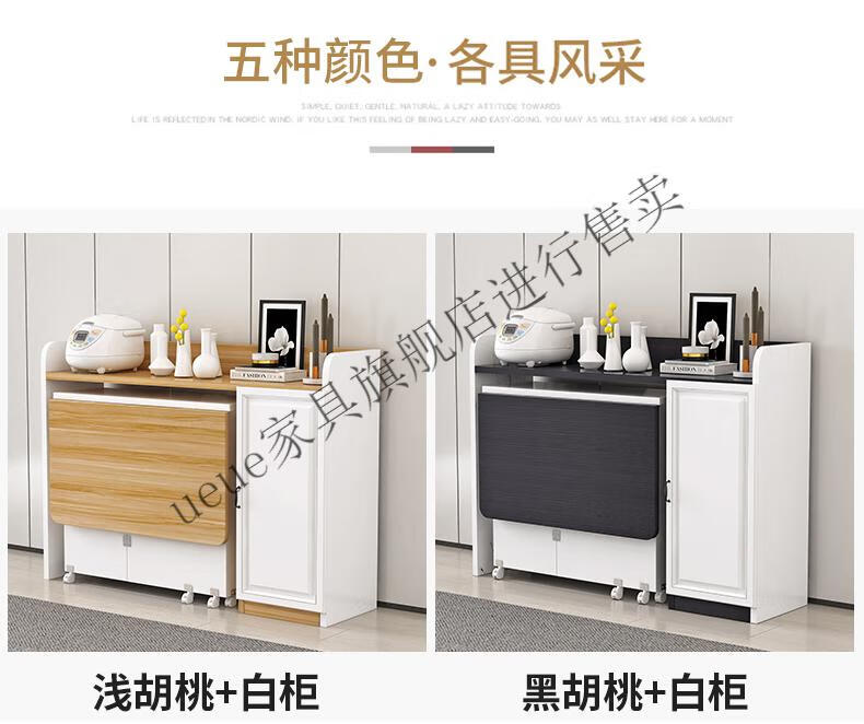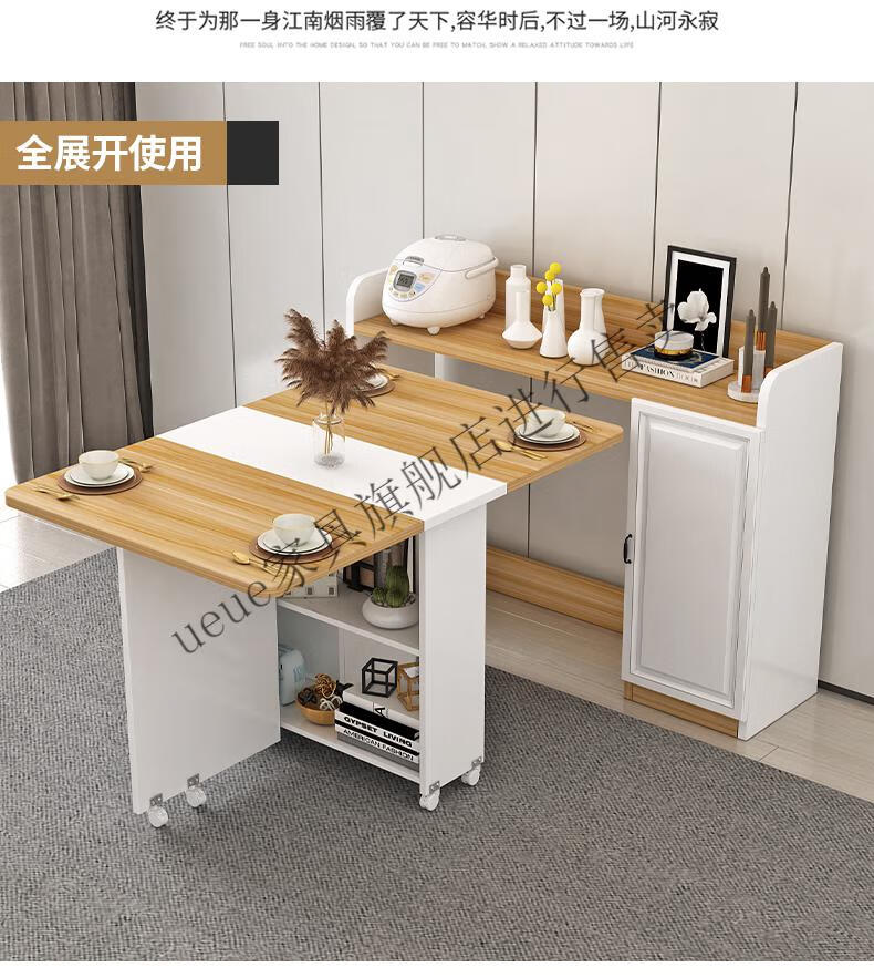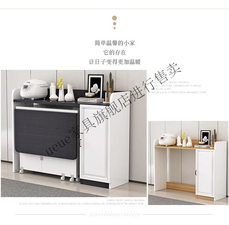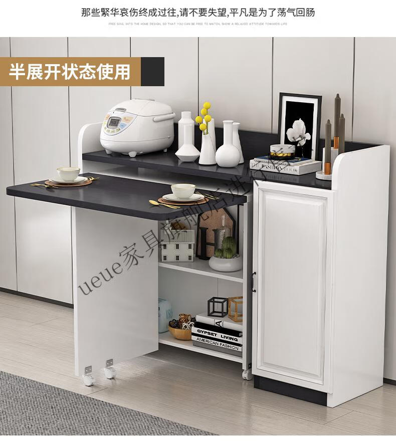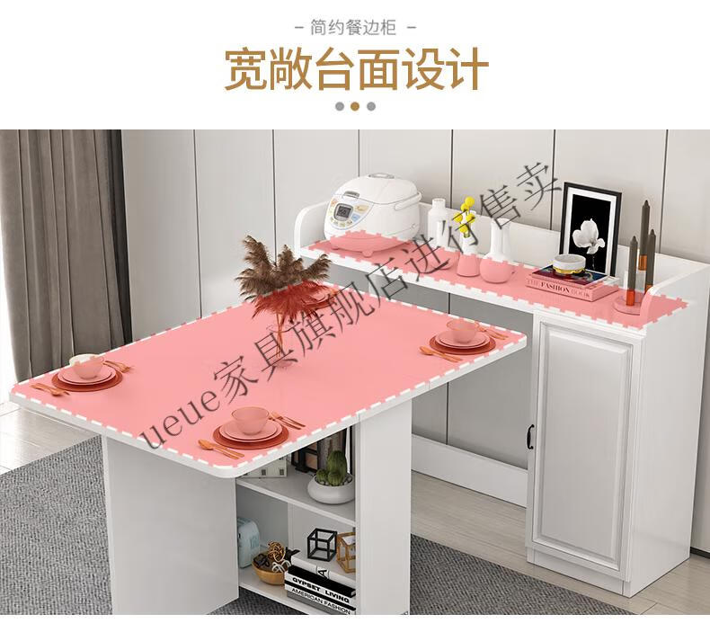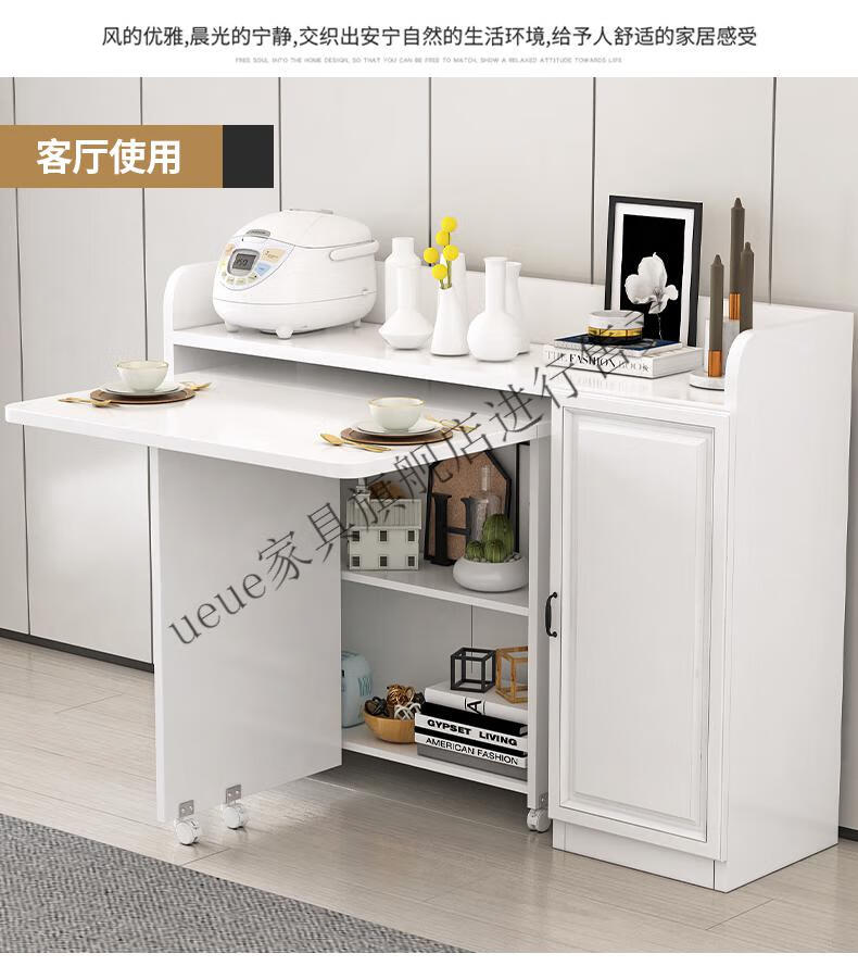 UEUE household folding dining table small apartment removable multifunctional sideboard combination cupboard microwave cabinet eating table (white) 1.2m rectangular dining table + 93cm side cabinet