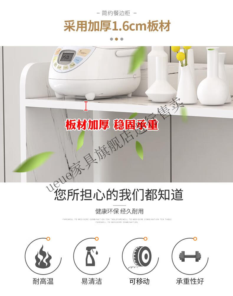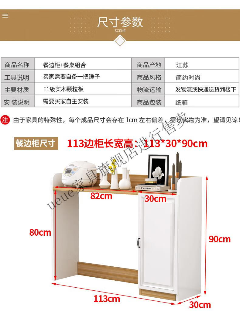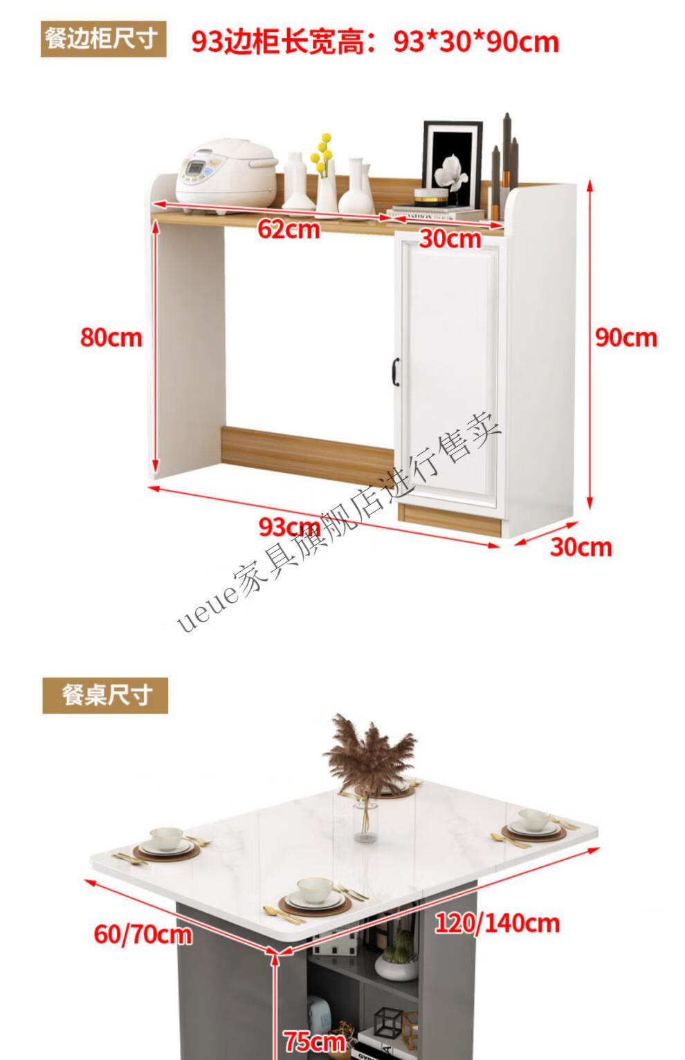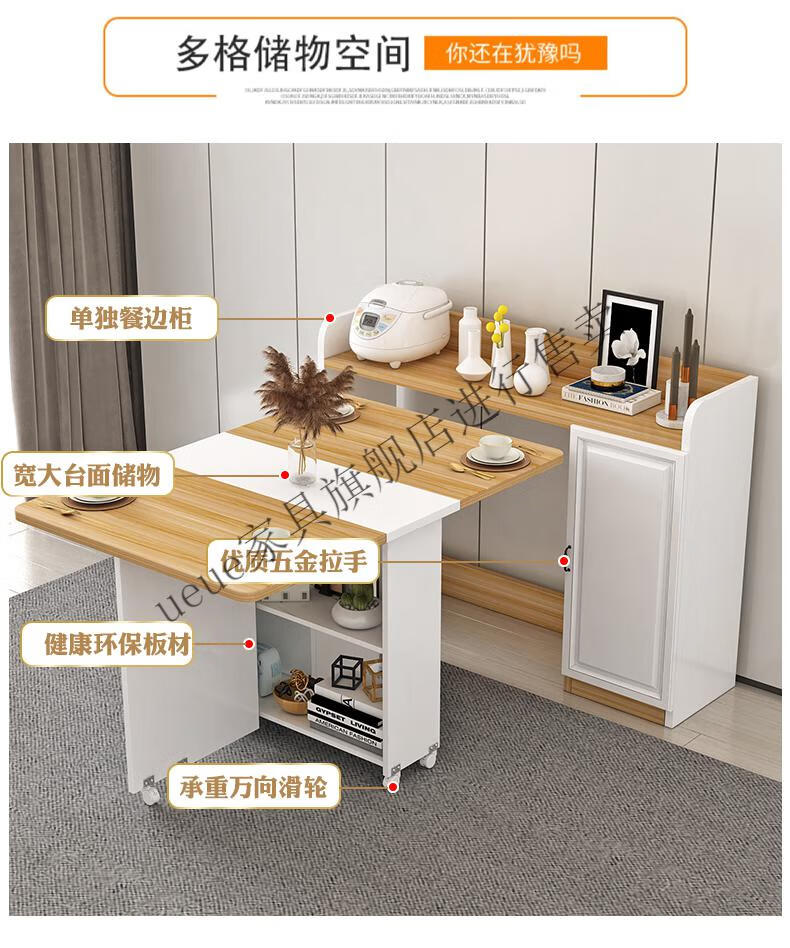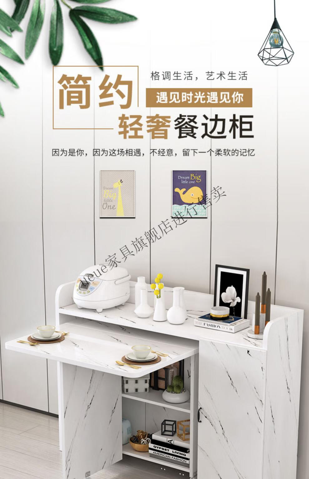 UEUE household folding dining table small apartment removable multifunctional sideboard combination cupboard microwave cabinet eating table (white) 1.2m rectangular dining table + 93cm side cabinet