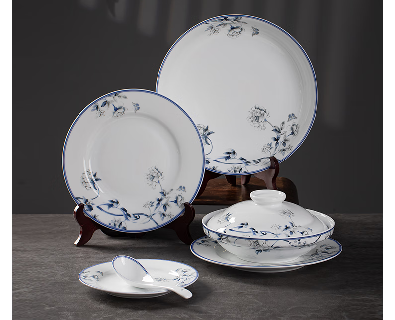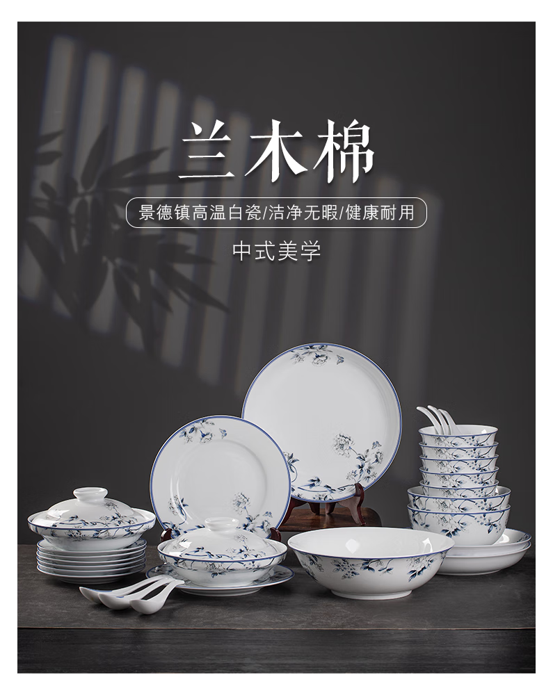 Hongye (RL) Jingdezhen tableware set, high-end bowls and dishes, complete set of ceramics, Chinese high-end sense, housewarming wedding gift, Chinese porcelain Hongye, orchid kapok gift box, 28 pieces