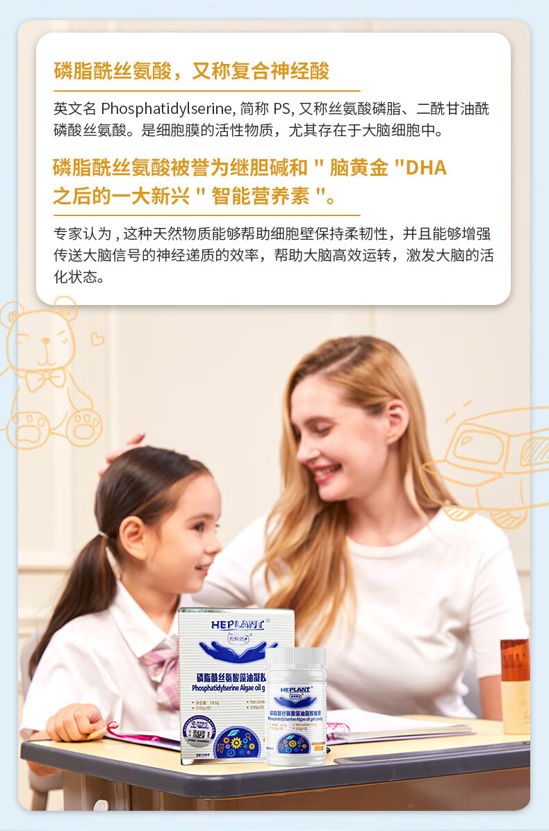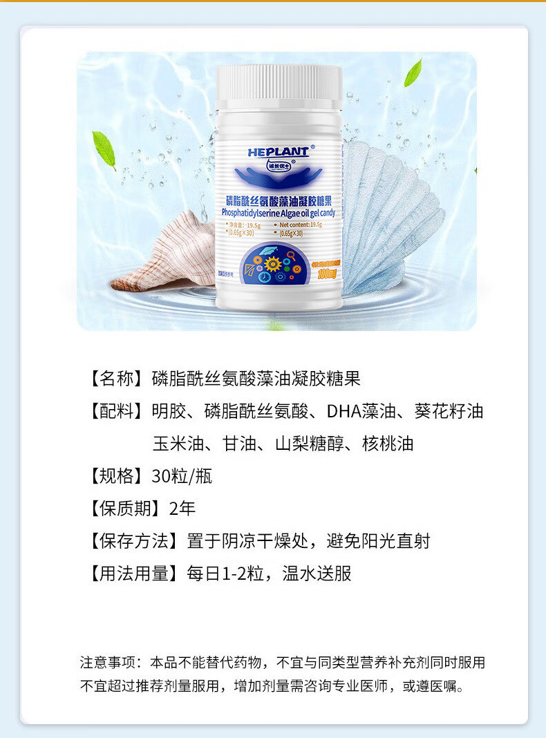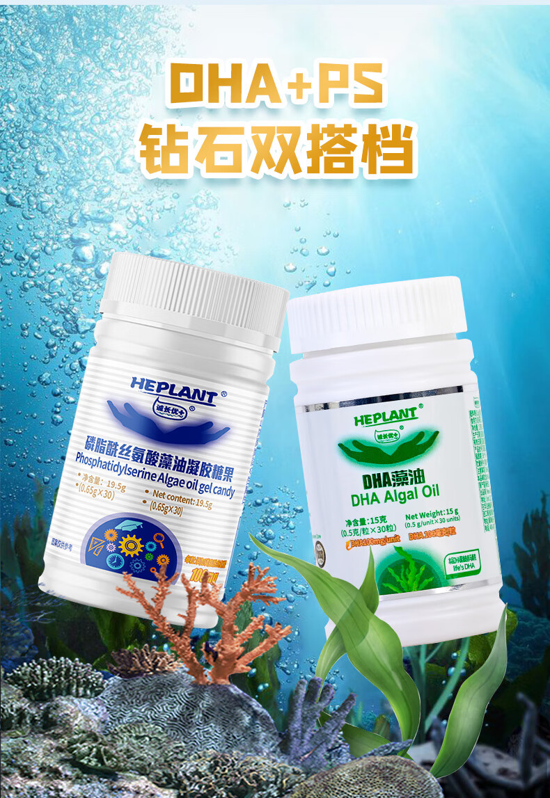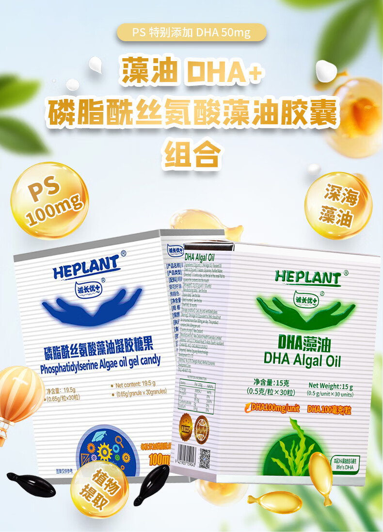Heplant Chengchangyou + DHA algae oil + PS phosphatidylserine boxed combination set Focused package 2 boxes of PS + 1 box of DHA algal oil combination set