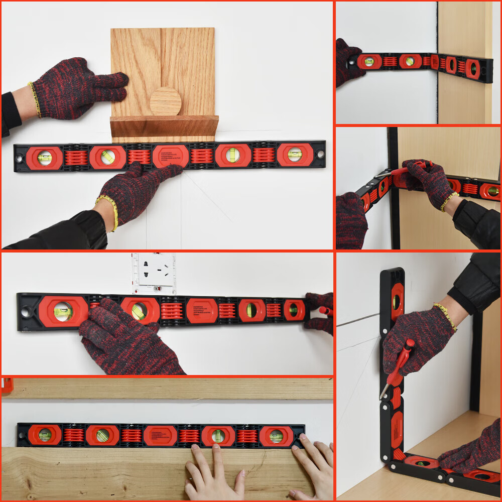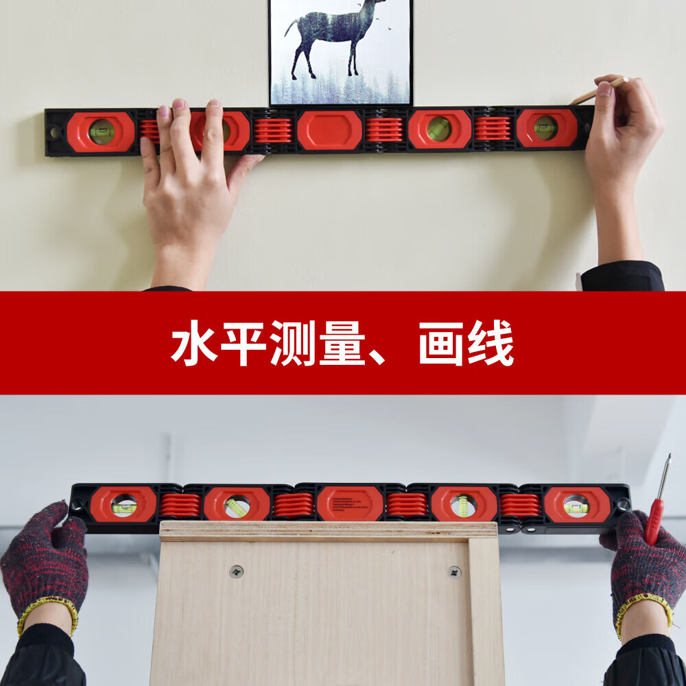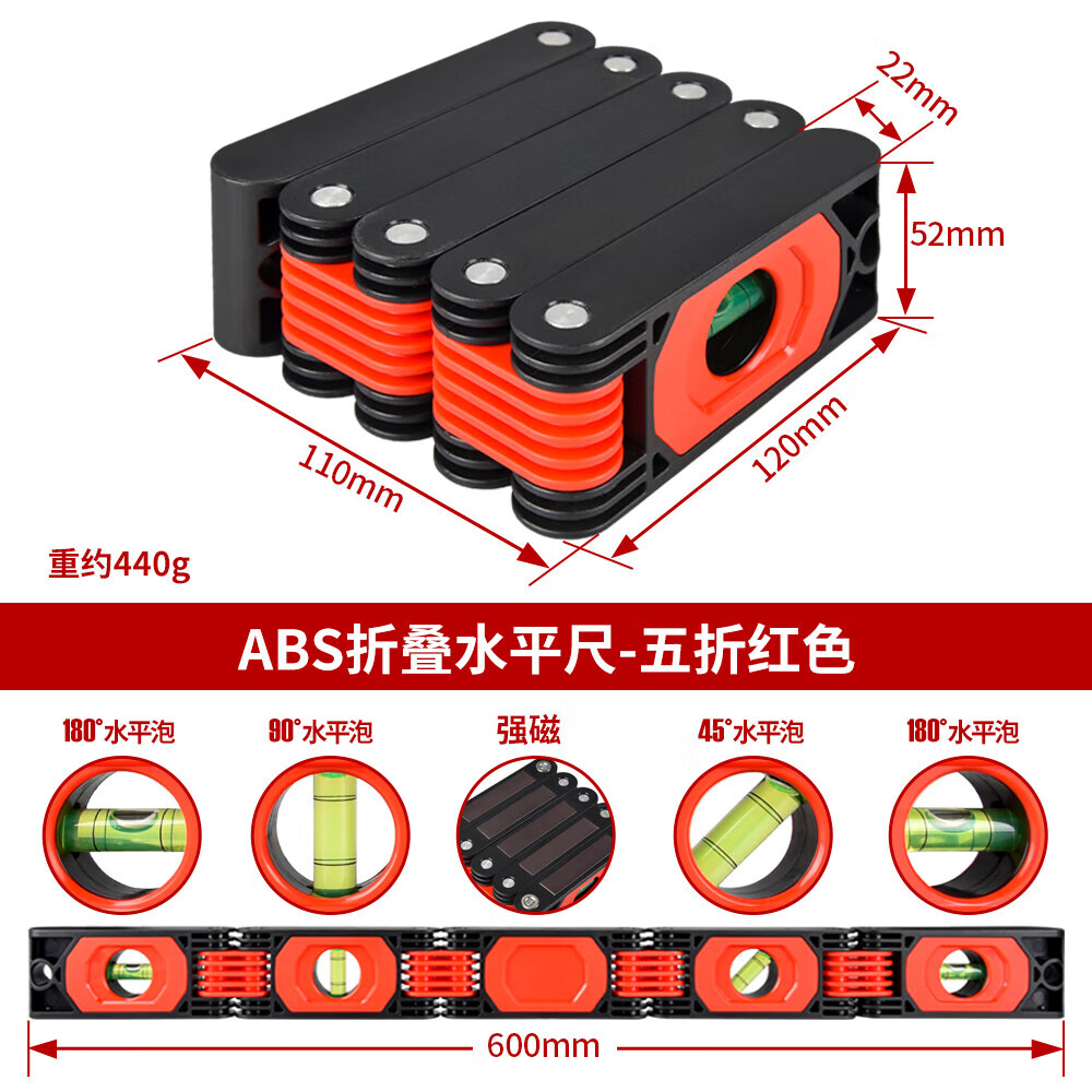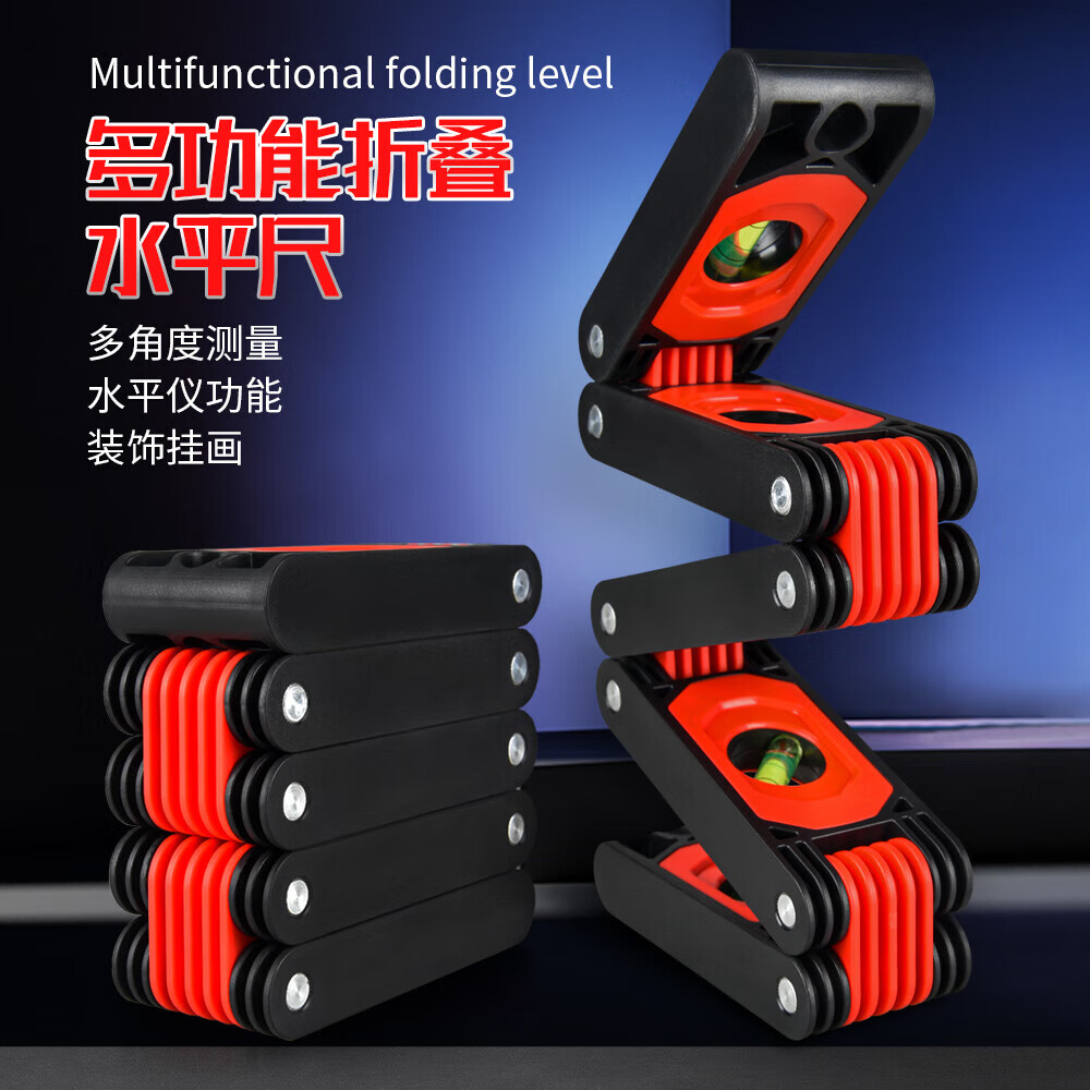 Qianhong Yixiao Multifunctional Folding Level High-precision Multi-angle Corner Construction and Decoration Measurement Woodworking Tools Level 50-fold Folding Level Red Aluminum Alloy