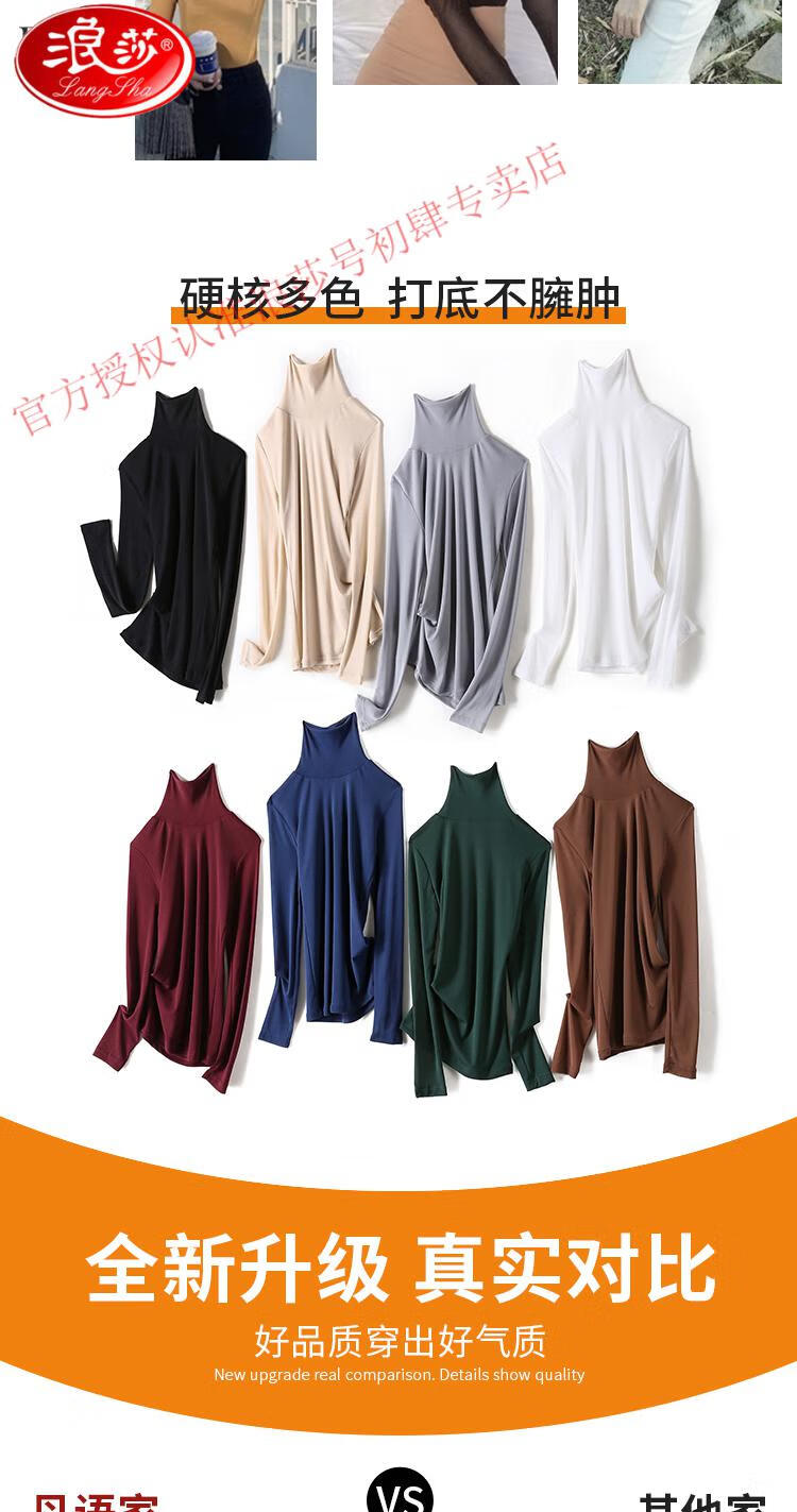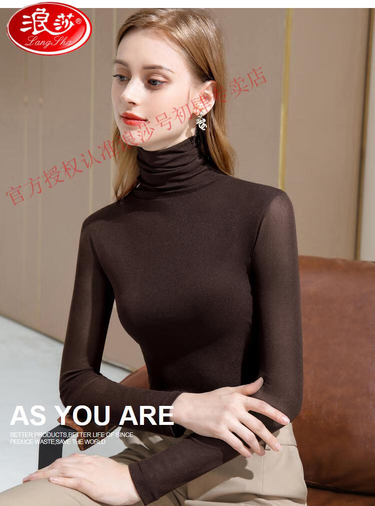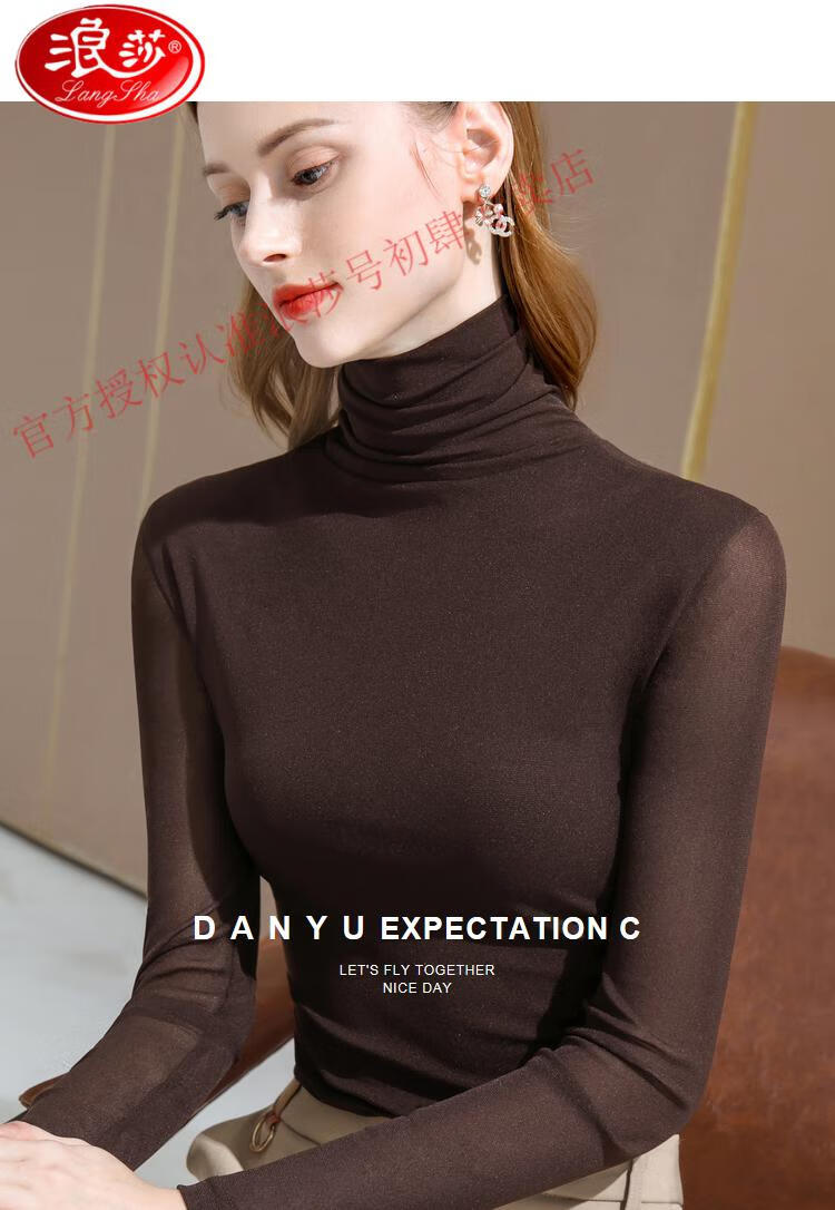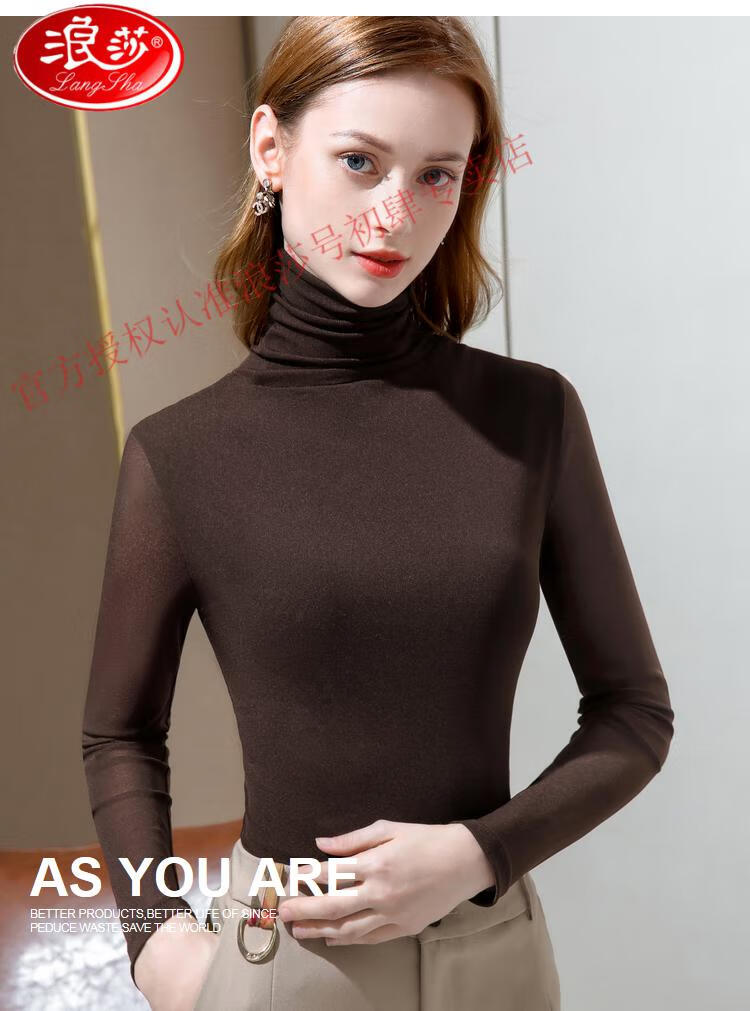 LangSha coffee-colored high-neck mesh bottoming shirt for women with gauze underwear autumn and winter 2025 black long-sleeved T-shirt high elastic top dark coffee color M recommended 100-110 pounds