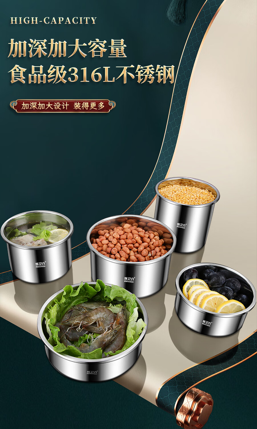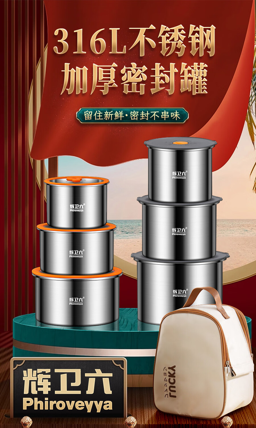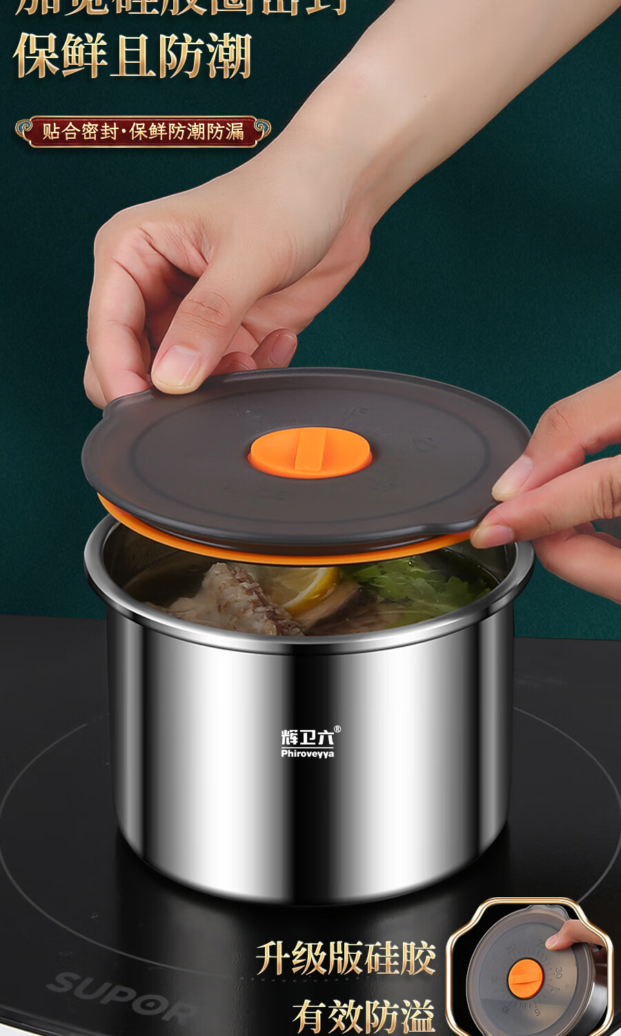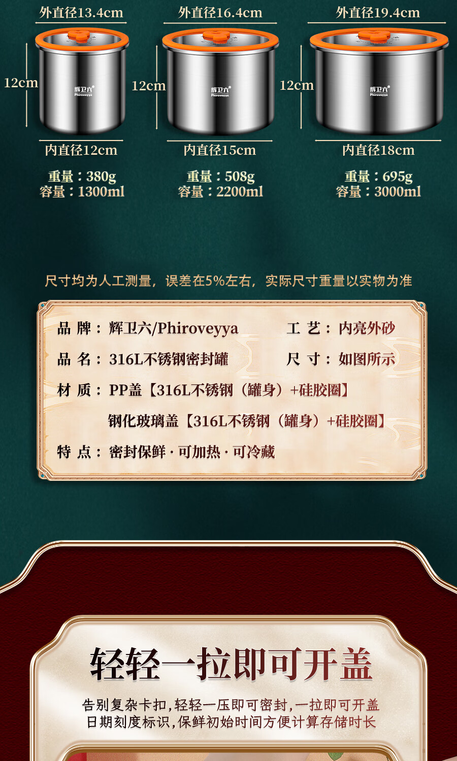 Huiwei Liu crisper sealed jar food grade 316 stainless steel lunch box coffee bean tea storage refrigerator storage box 2200ml No. 2 high glass lid