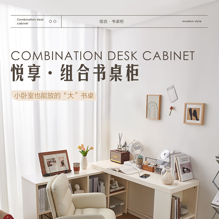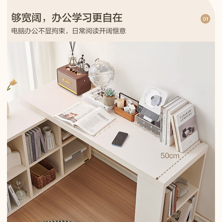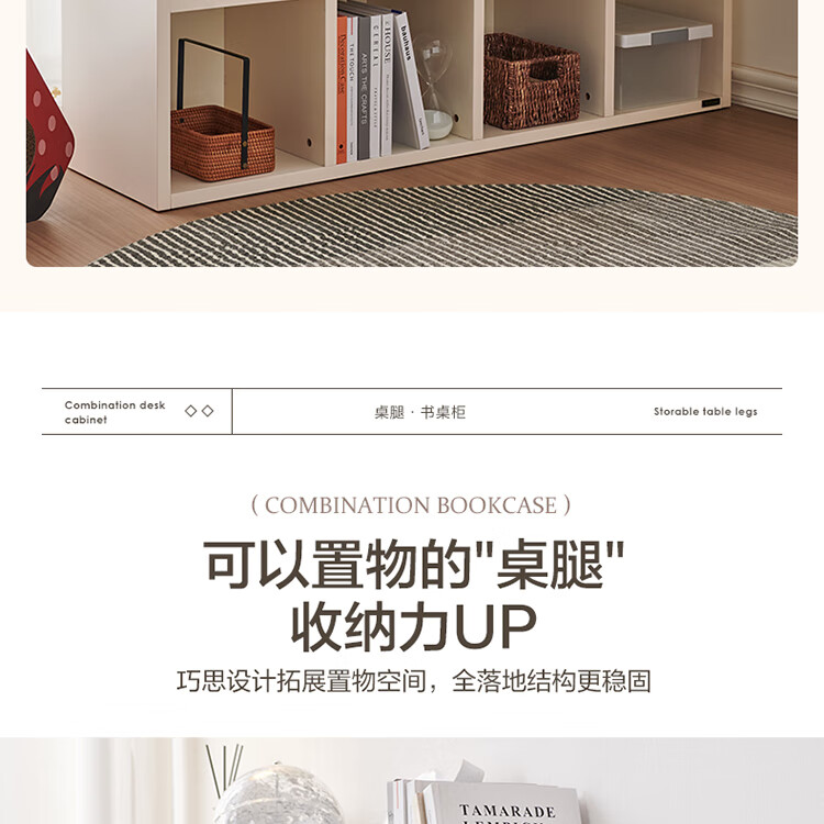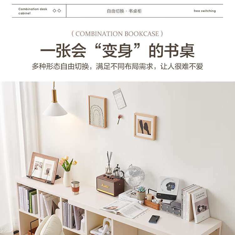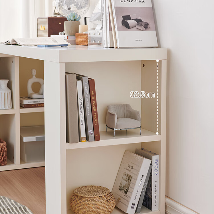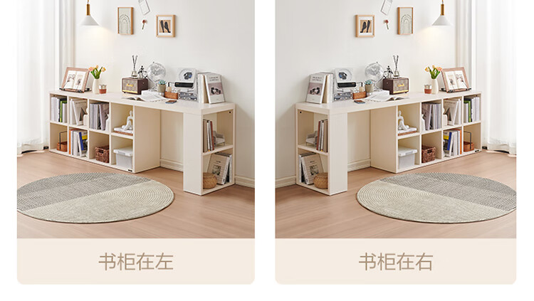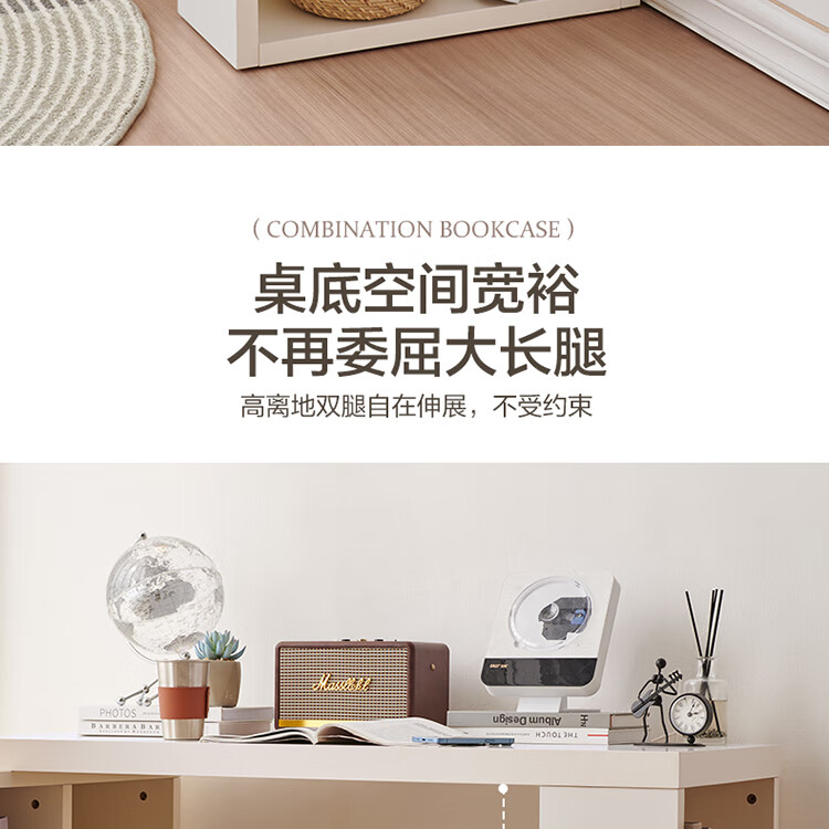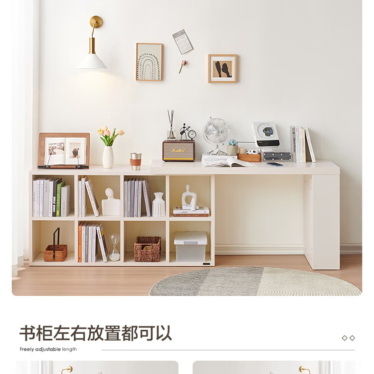 Quanyou Home Desk Cabinet Integrated Table Bookcase Living Room Bedroom Adjustable Telescopic Storage Cabinet Furniture Ivory White 6-Gate Bookcase A+1.2m Table A+32 Chair