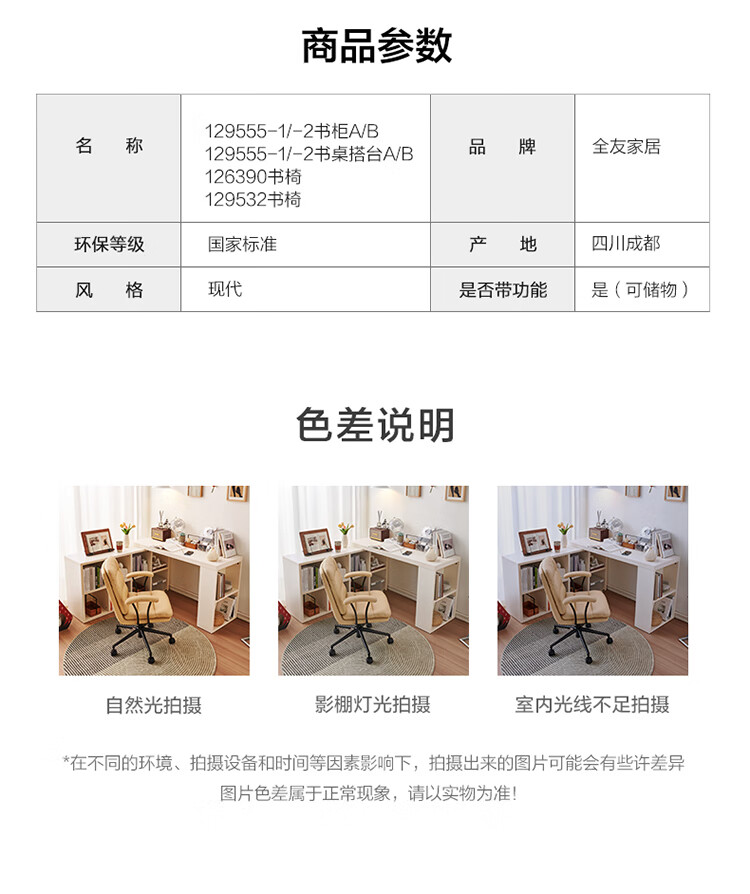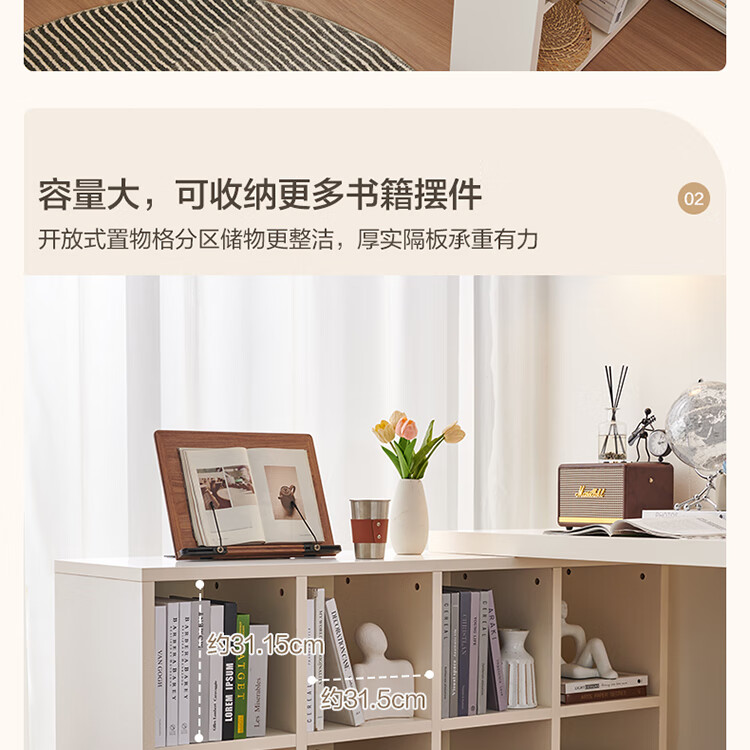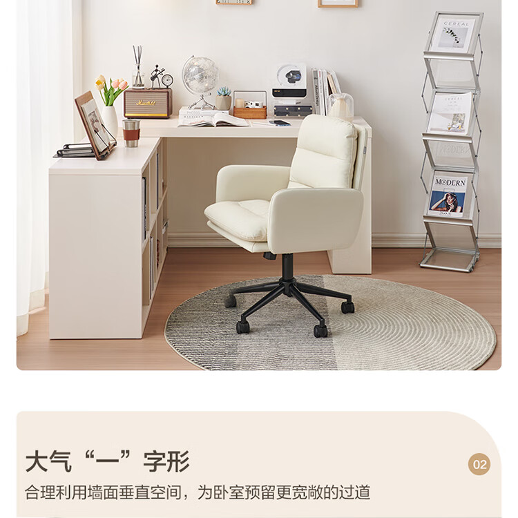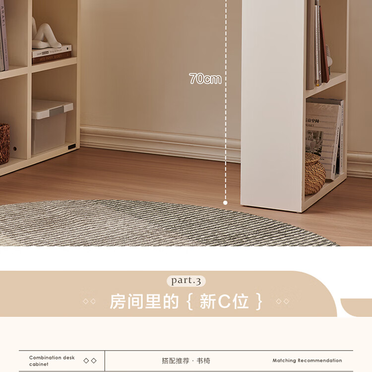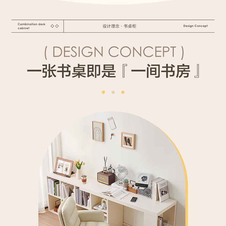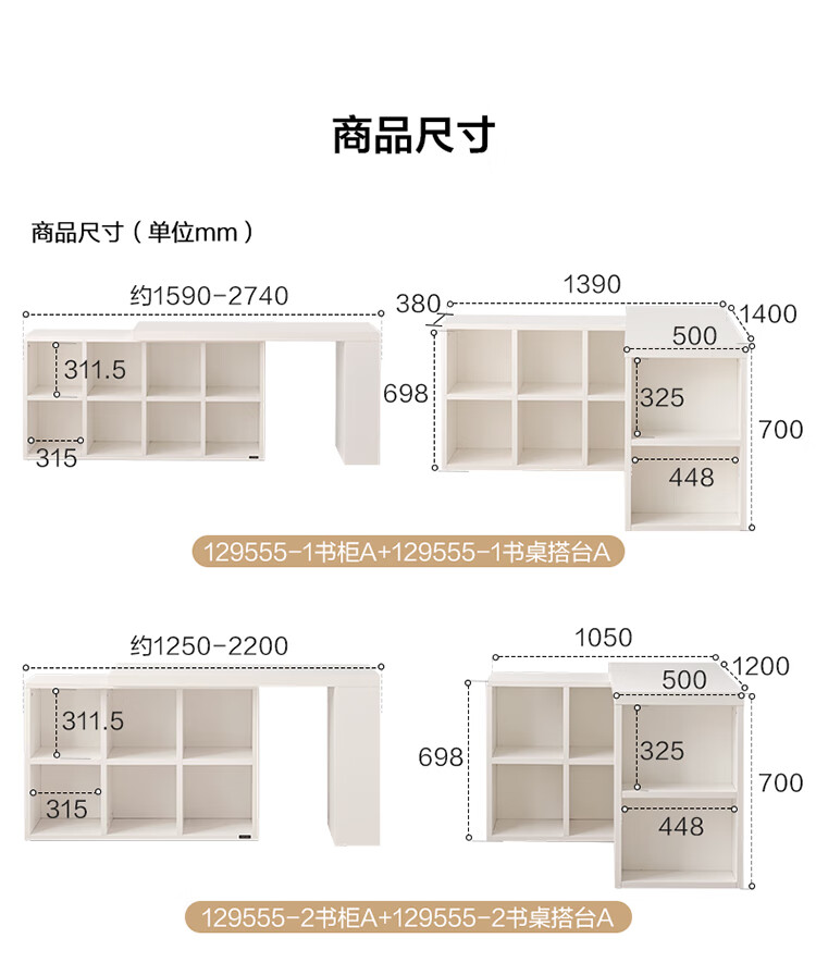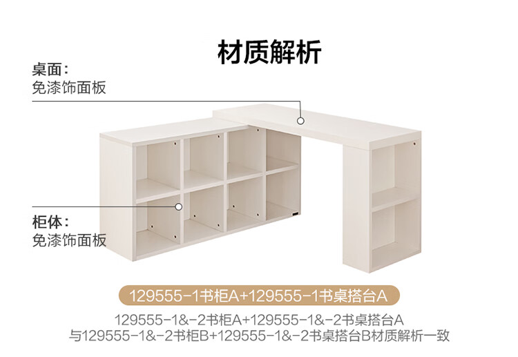 Quanyou Home Desk Cabinet Integrated Table Bookcase Living Room Bedroom Adjustable Telescopic Storage Cabinet Furniture Ivory White 6-Gate Bookcase A+1.2m Table A+32 Chair