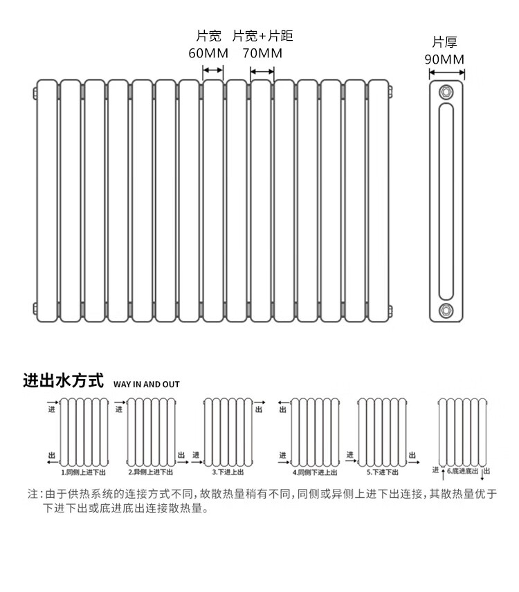 Century Baisheng radiator steel household water heating wall-mounted heating custom radiator large water channel radiator steel 60 white 1.8m