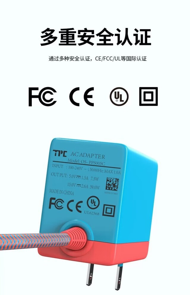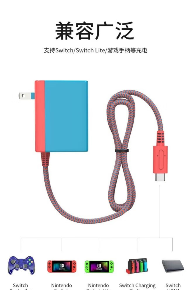 Show off and suitable for Nintendo Switch2 charger base, national bank oled power supply, switch tempered film adapter, NS Japanese version screen projection cable, Hong Kong version PD fast charging 39W storage accessories, black Nintendo switch universal charger, fast charging 1.5 meters cable, 3c national standard safety certification-39w fast charging does not damage the machine