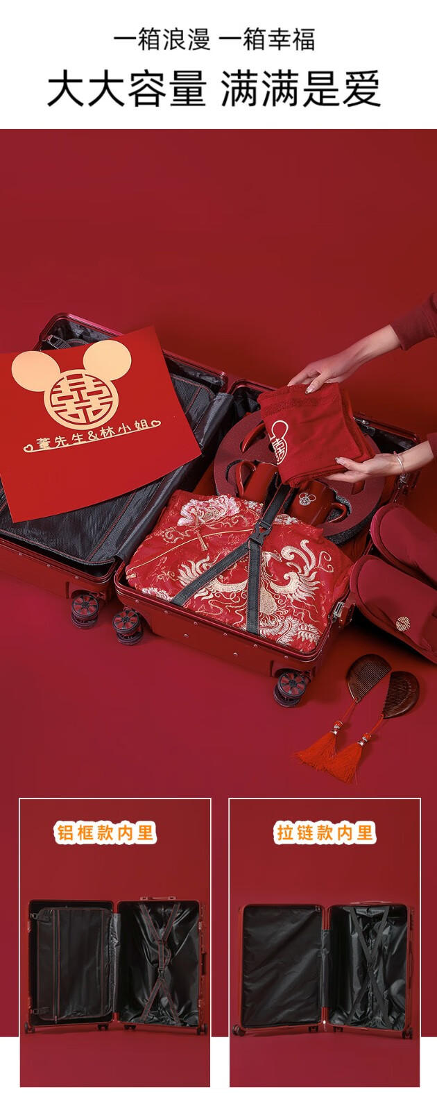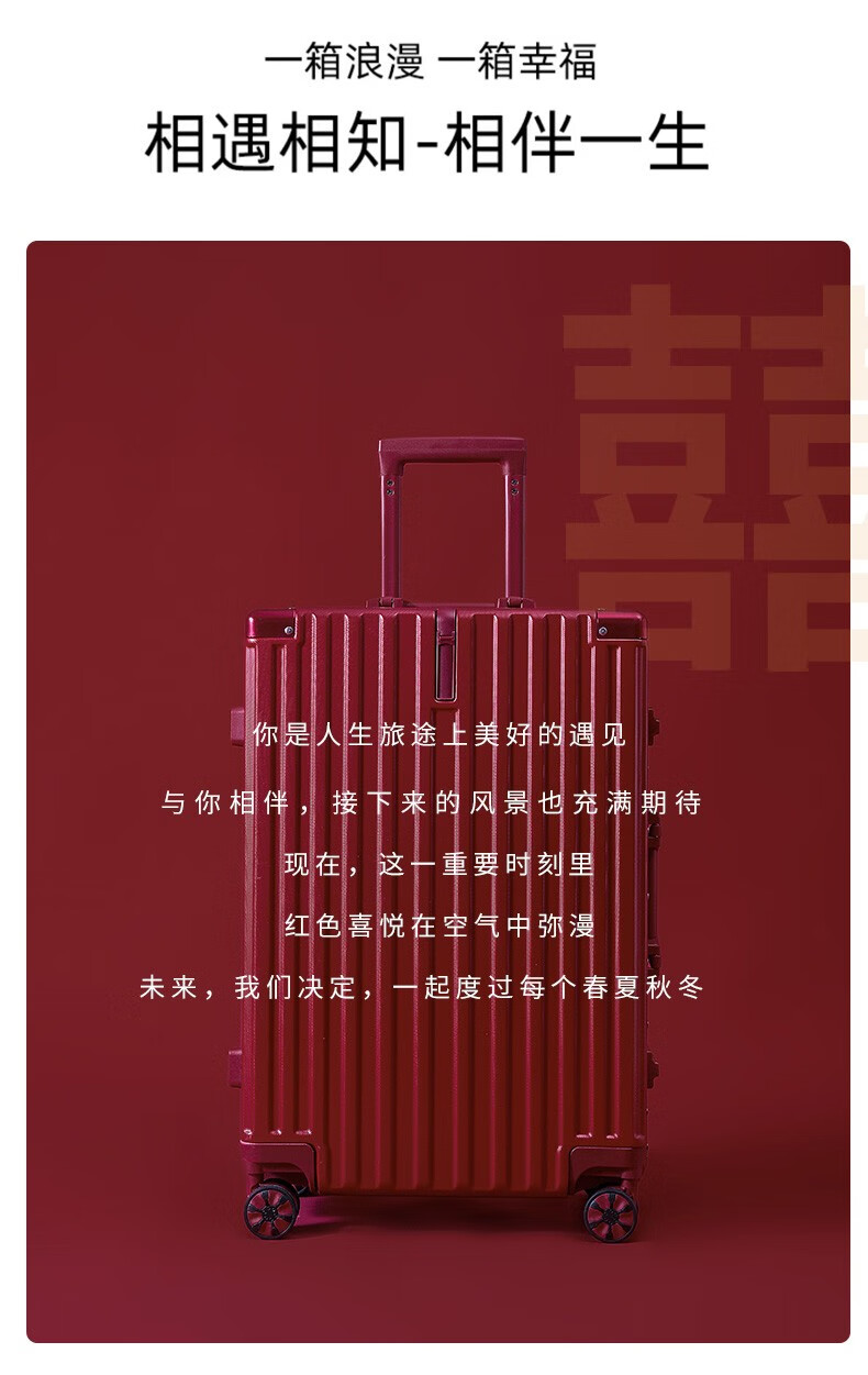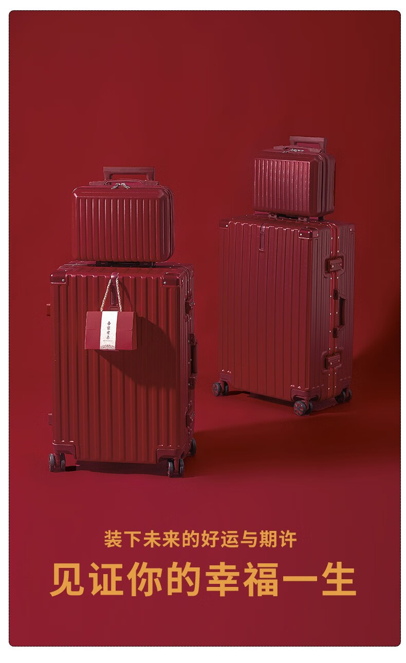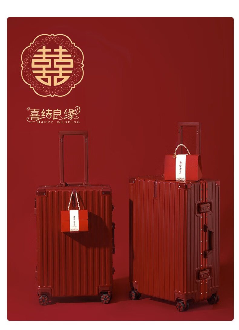 Hilandon wedding suitcase burgundy bridal dowry box female dowry box wedding trolley box password suitcase wedding press box metal hanging buckle buckle Bordeaux red 24 inches required to be checked
