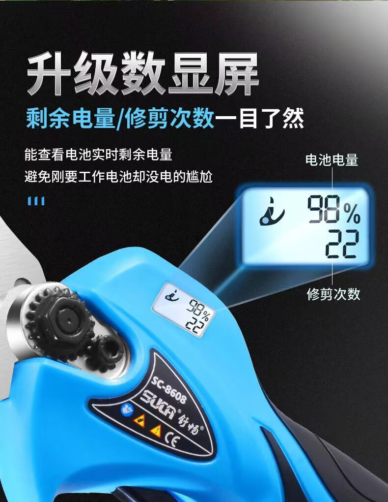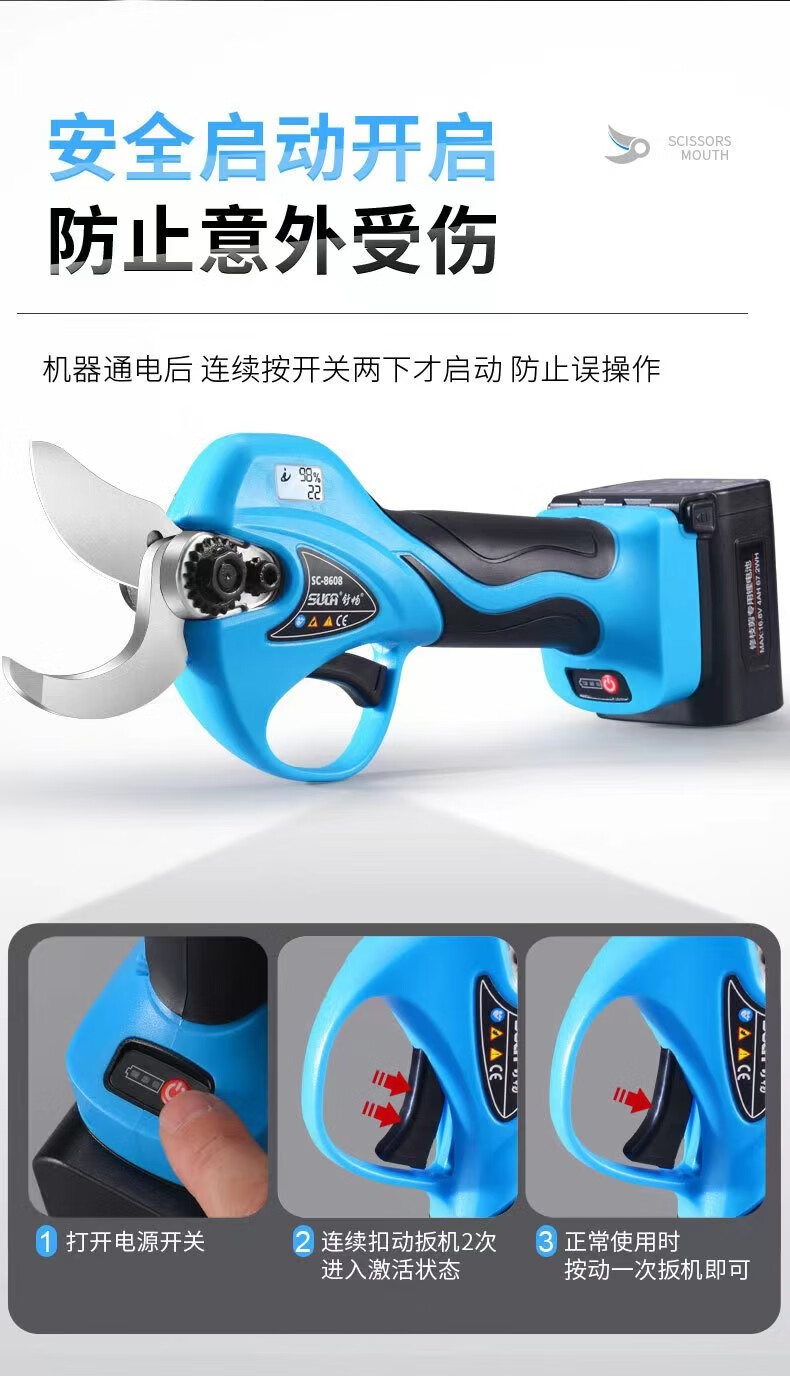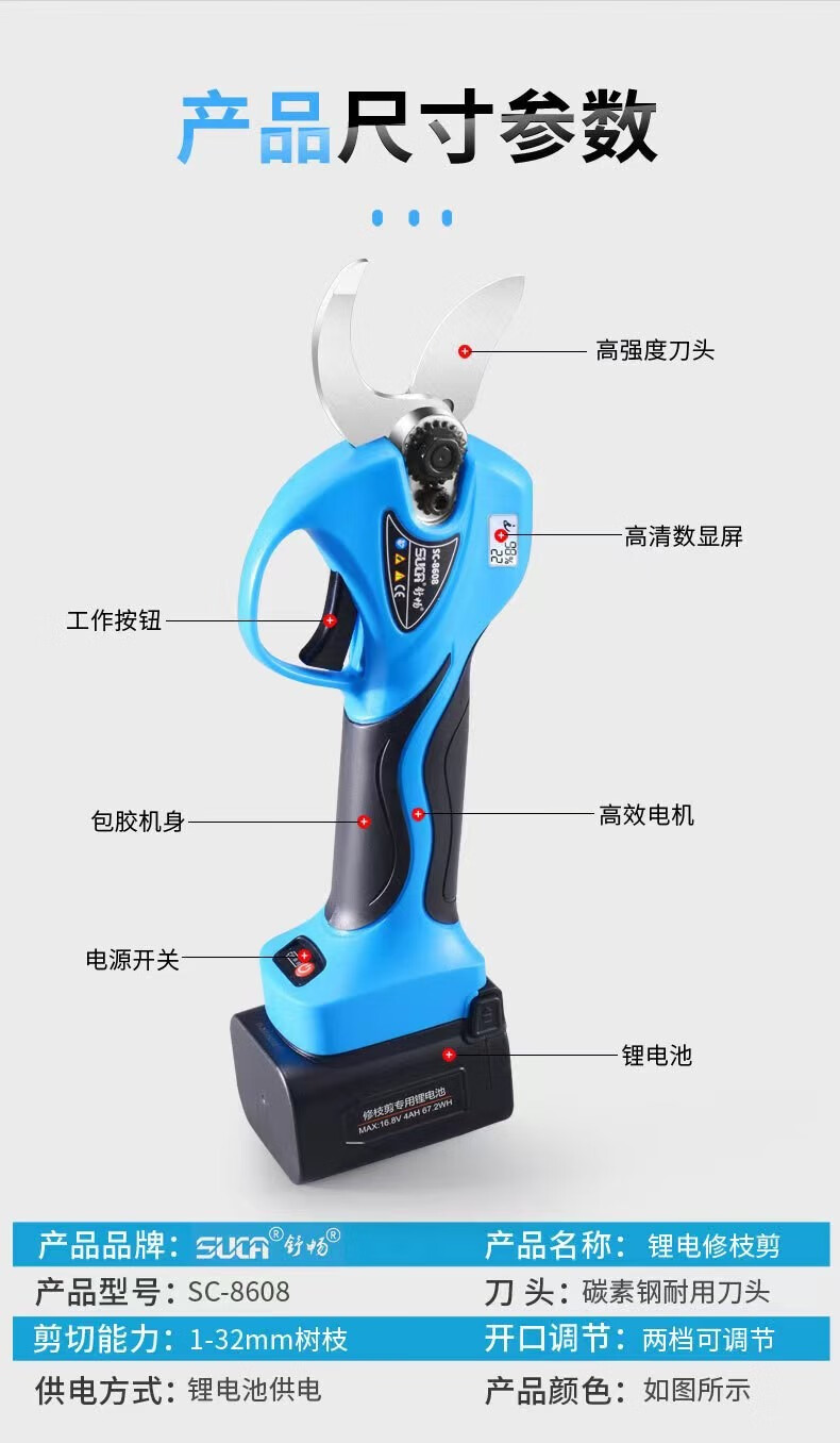 Shuchang recommends Shuchang electric pruning shears for fruit trees, rechargeable hand-cut branches, electric shears, pruning shears, lithium-ion scissors, 8608 Shuchang scissors, two batteries and one charger