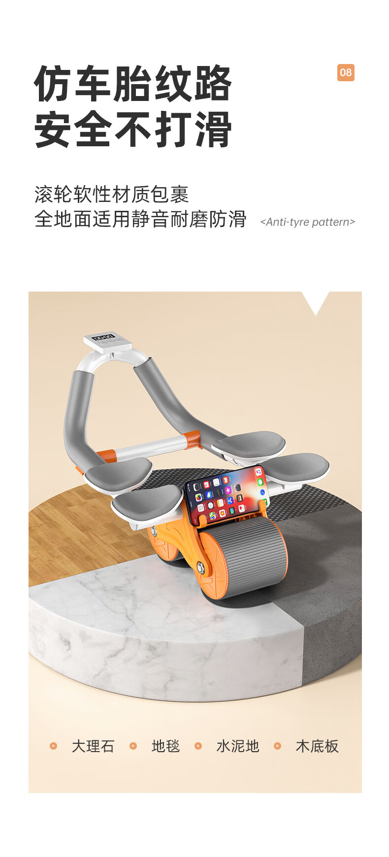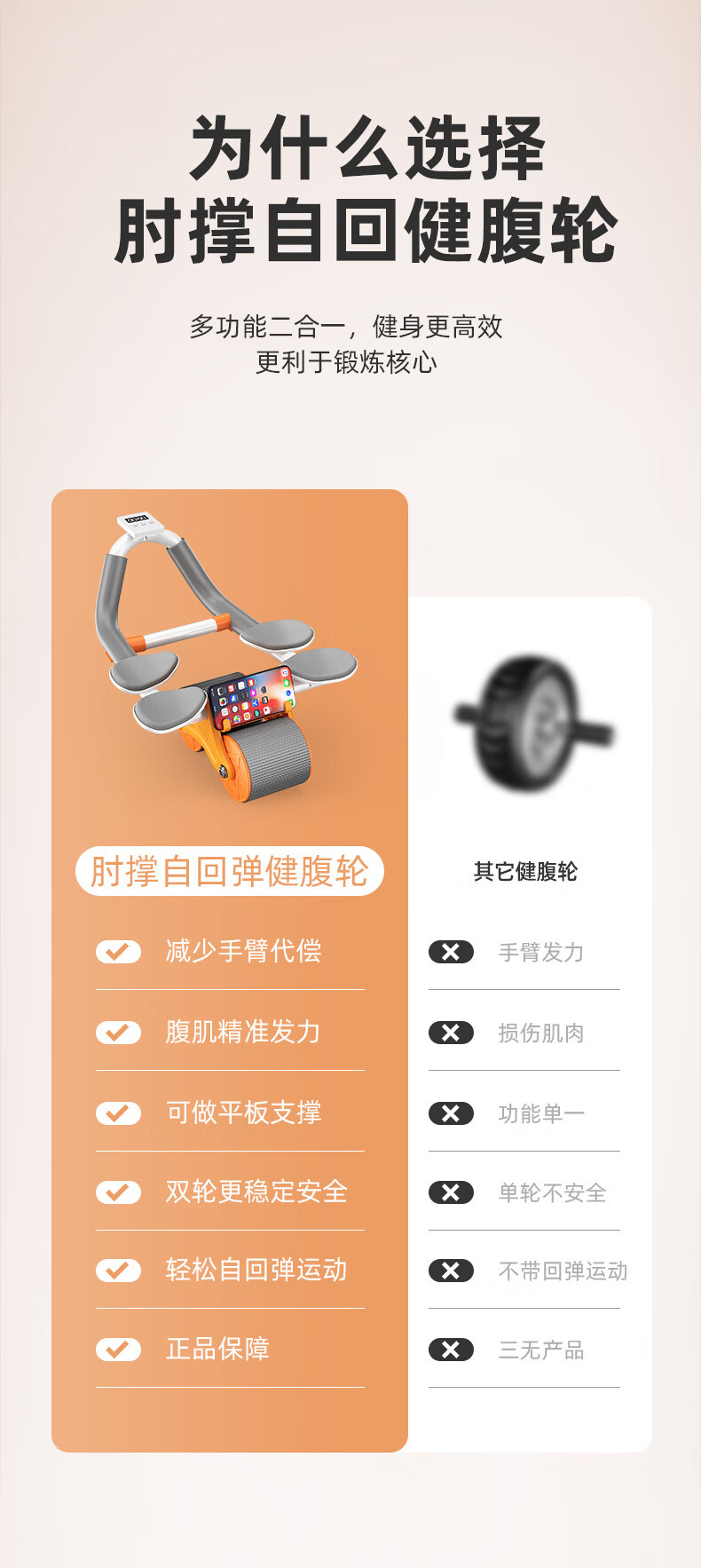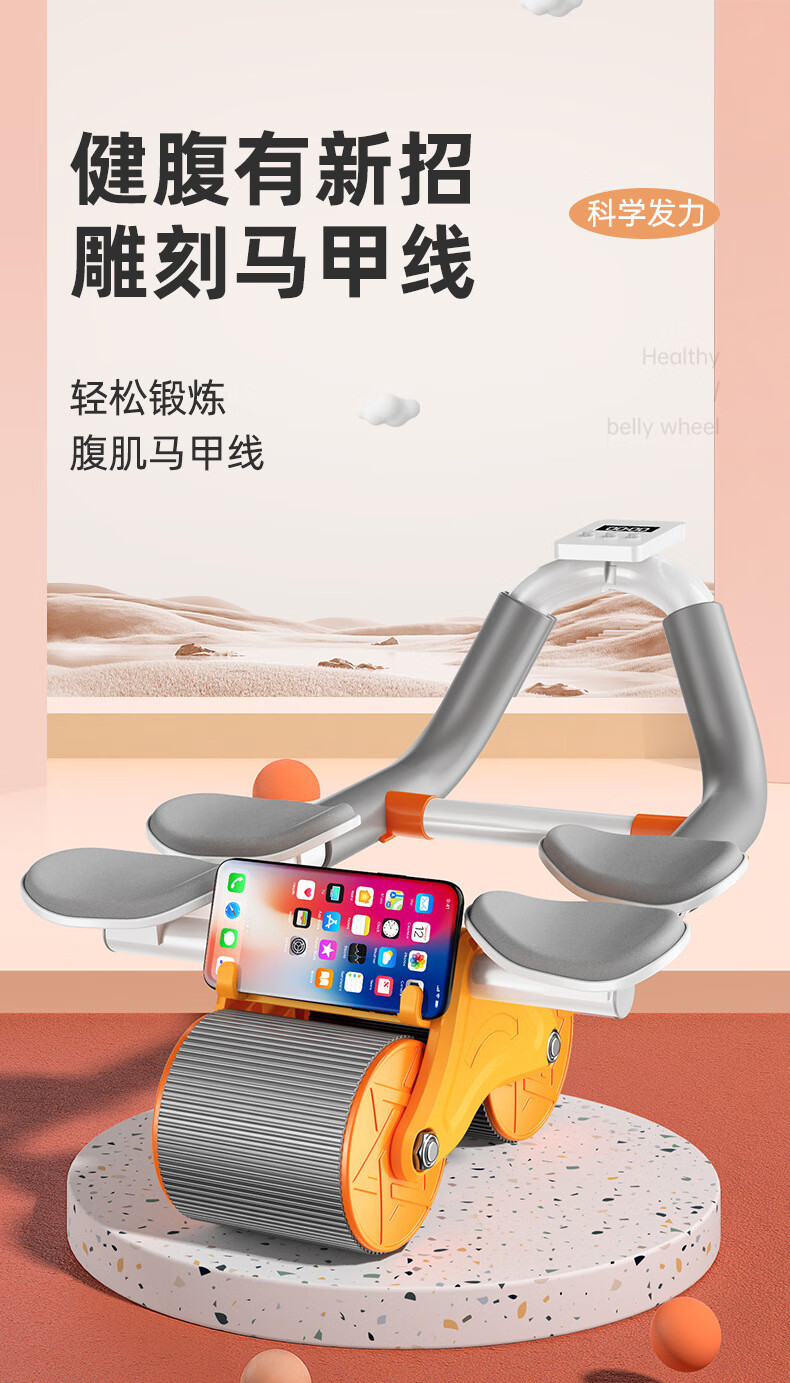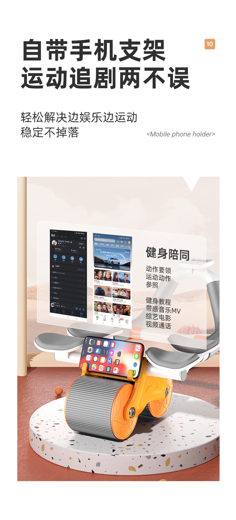 Huixian Deer Dual Wheel Abdominal Wheel Automatic Rebound Elbow Support Abdominal Muscle Wheel Rolling Abdominal Wheel Kneeling Pad Flat Support Home Slim Belly Orange Model Double Elbow Support + Kneeling Pad + Automatic Rebound Xiao Yang Ge Abdominal Wheel Unisex Fitness