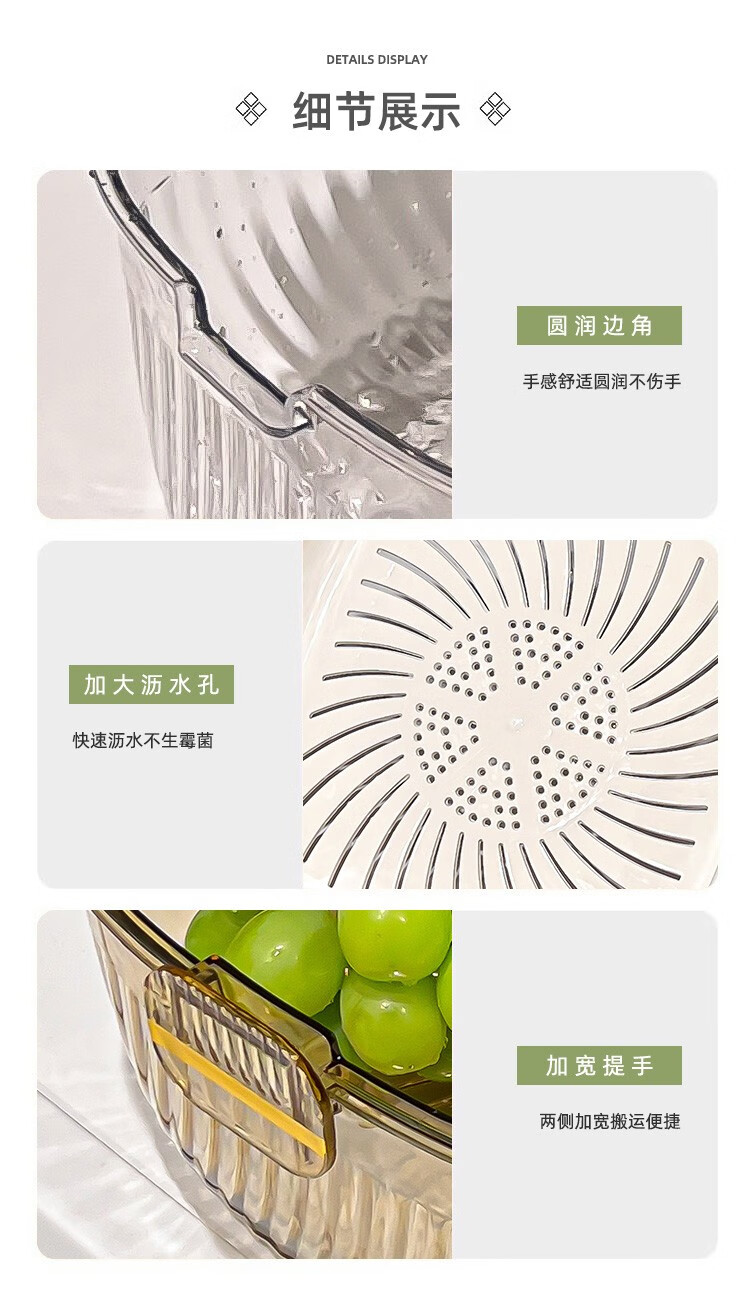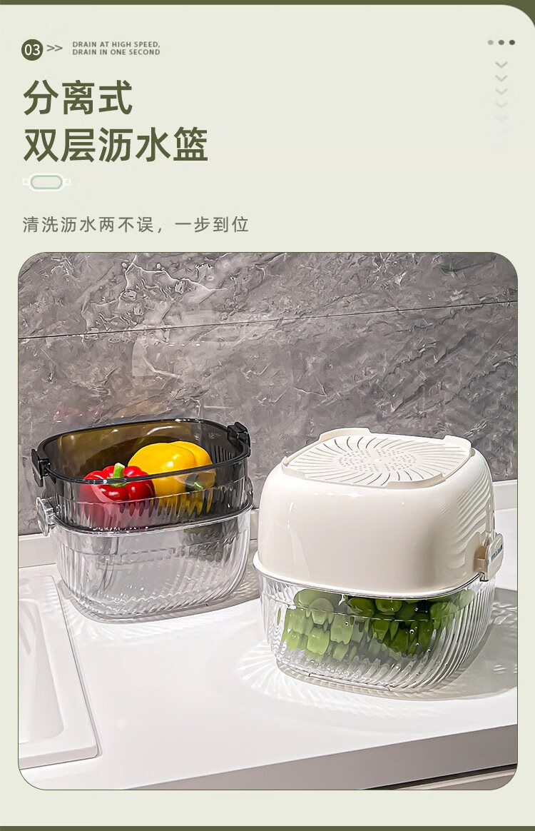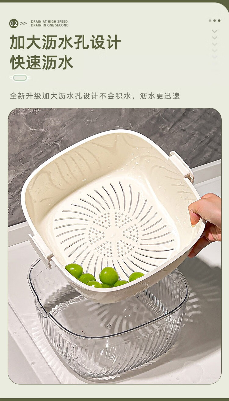 CCKO double-layered sink drain basket kitchen household fruit plate thickened large-capacity water filtering and washing vegetables storage basket medium double-layered draining basket milk white