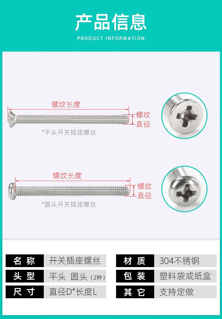 Jianzi socket extension screw switch panel 304 stainless steel M4 round head cross screw 4/5/6/8/10cm 304 round head screw length 9 cm 20 pcs