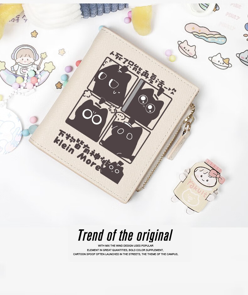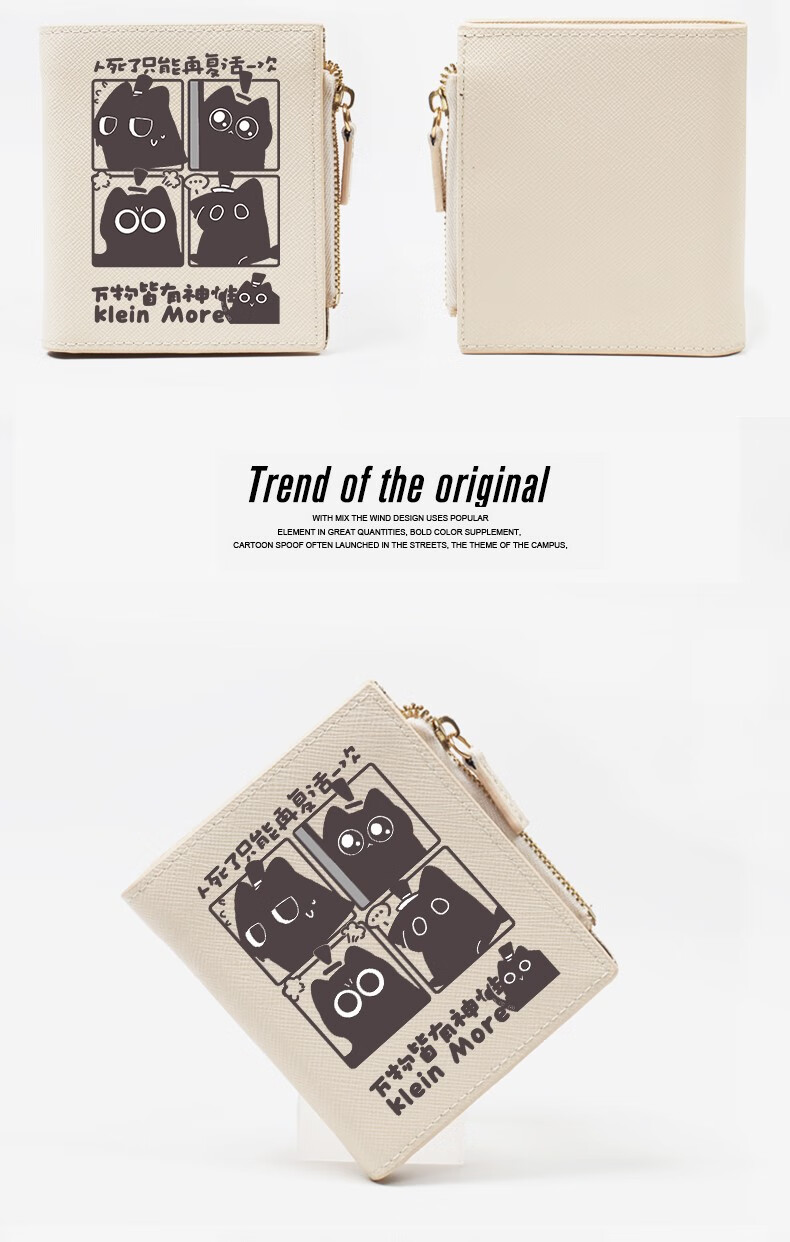 Flo Cat Mystery Lord Peripheral Kleink Meow Meow Amon Mythical Story Cute Cartoon Student Wallet Card Holder Female Off-White Ke Meow 4-Gate Resurrection