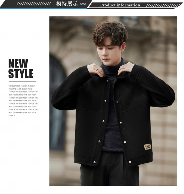 ROMON high-end woolen woolen jacket men's autumn and winter new business casual thickened short double-sided woolen jacket for young and middle-aged people, brown (66.3% sheep wool) L size (recommended 116-130 pounds)
