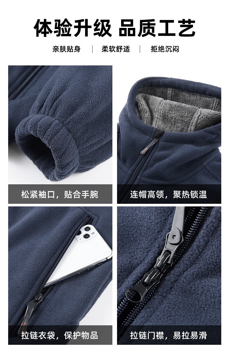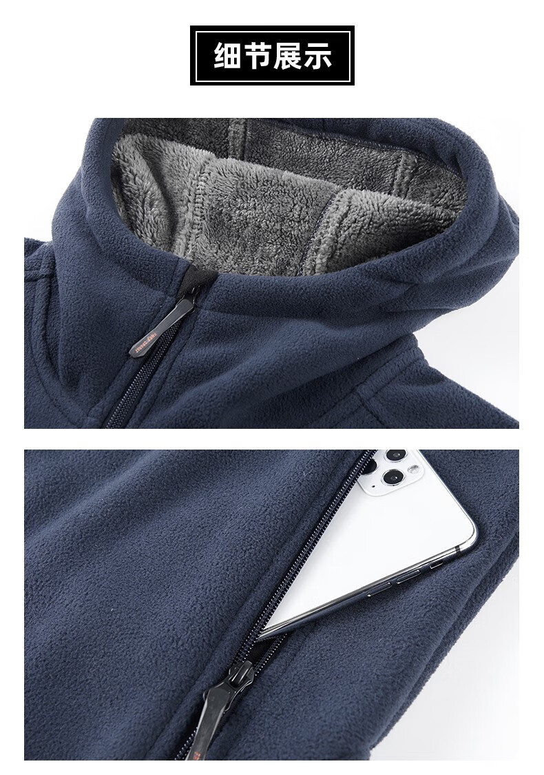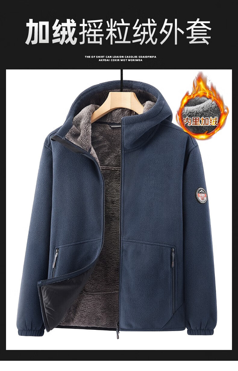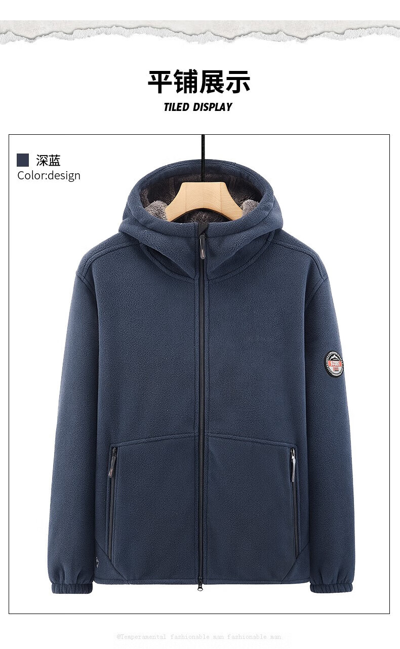 NASAOVER Light Luxury Polar Fleece Jacket Men's Autumn and Winter Plus Velvet Thickened Hooded Sweatshirt Men's Winter Windproof Warm Fleece Clothes Royal Blue Free Trial Return and Exchange Free Shipping M 110-130 Jin
