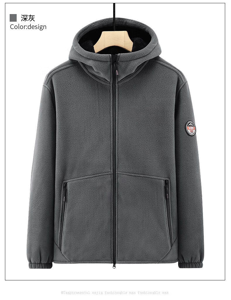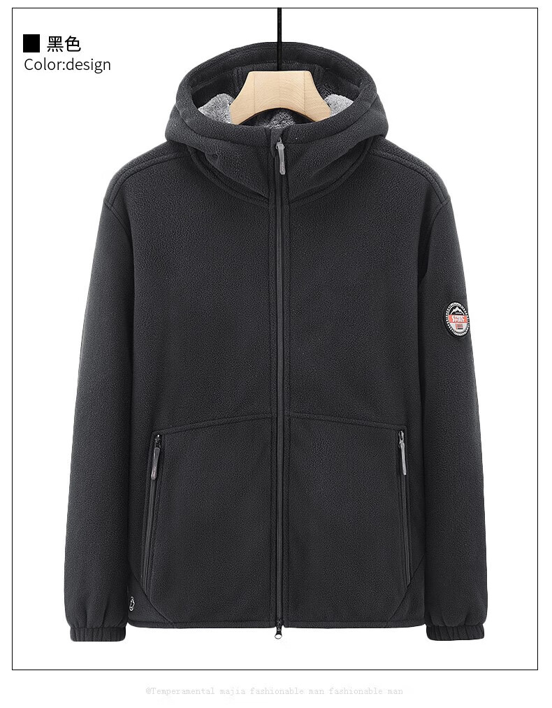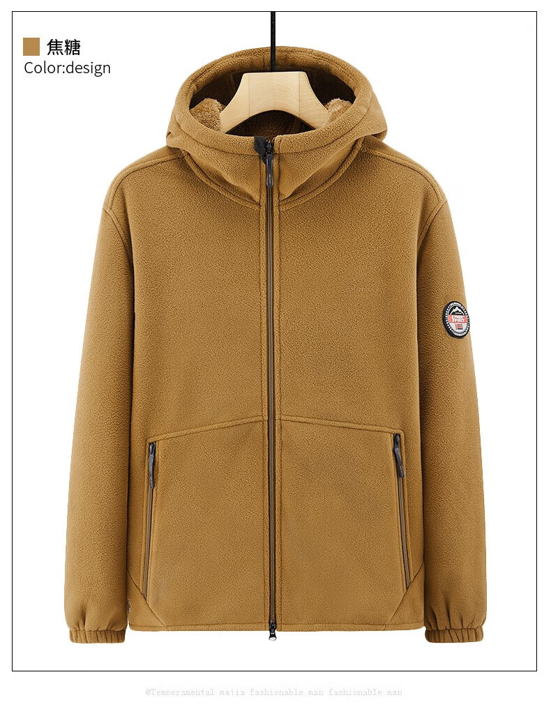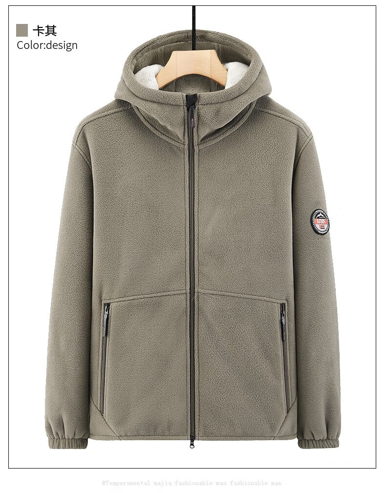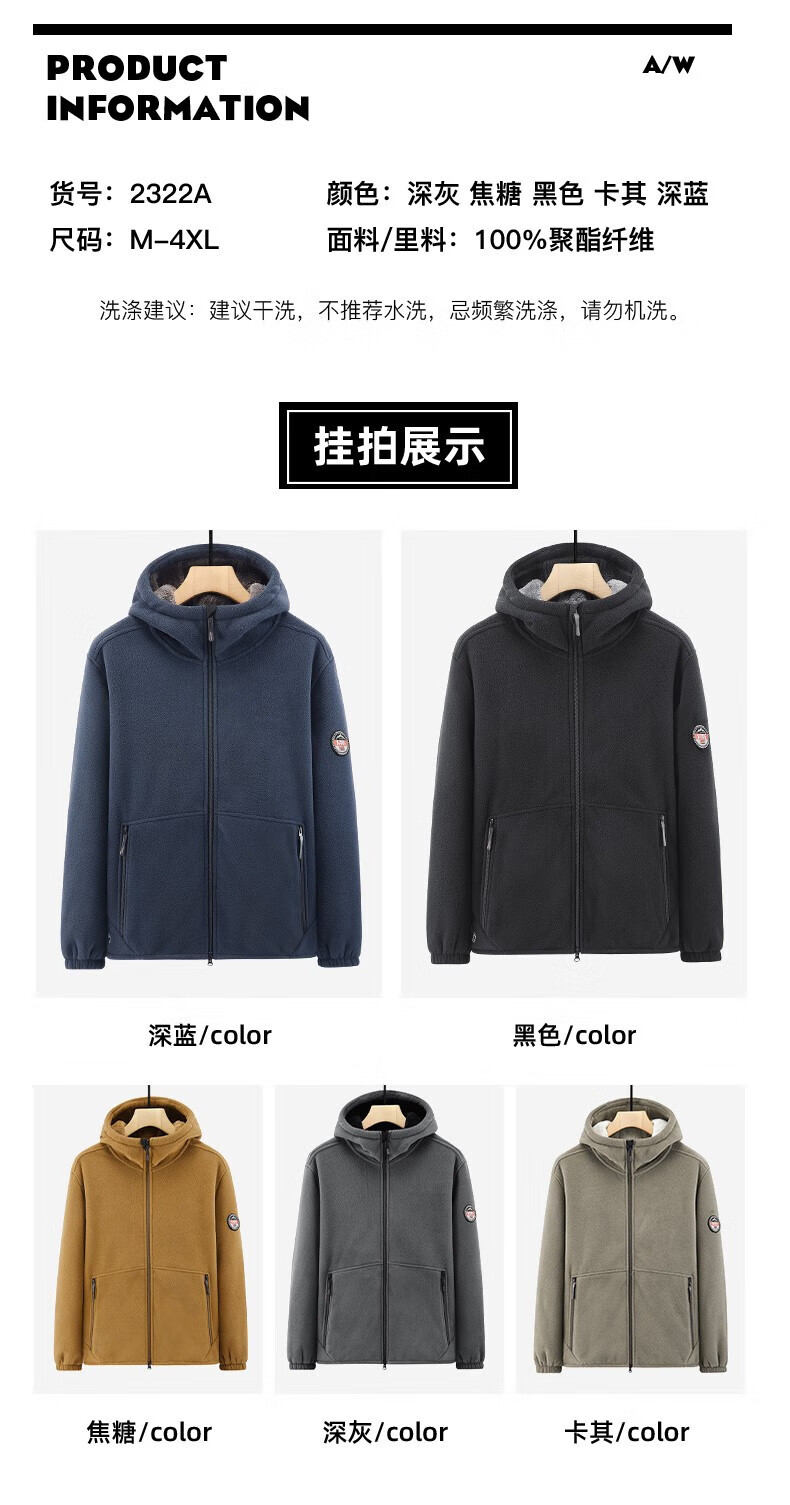 NASAOVER Light Luxury Polar Fleece Jacket Men's Autumn and Winter Plus Velvet Thickened Hooded Sweatshirt Men's Winter Windproof Warm Fleece Clothes Royal Blue Free Trial Return and Exchange Free Shipping M 110-130 Jin