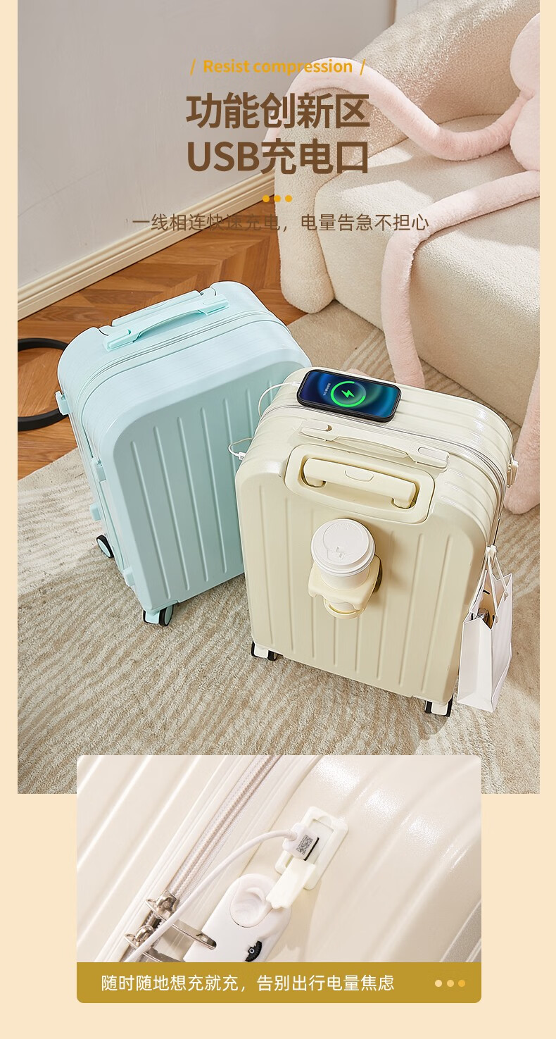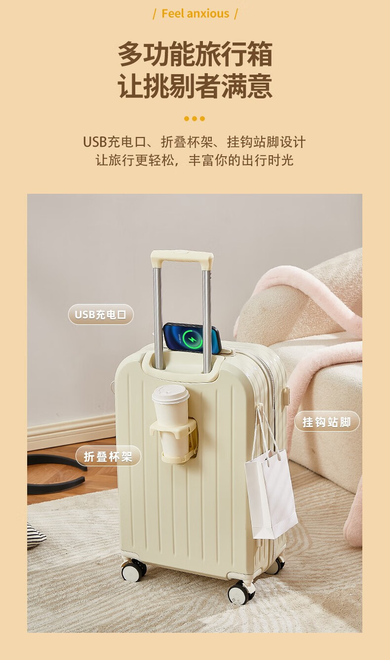 Kangaroo (KANGAROO) multifunctional suitcase for men and women, good-looking, strong and durable, student travel universal wheel trolley case, password lock suitcase, milky white, multifunctional, thickened and anti-fall, 20-inch boarding case