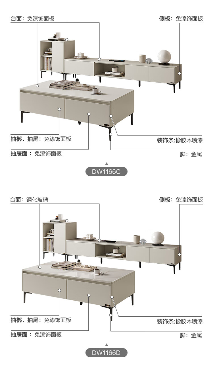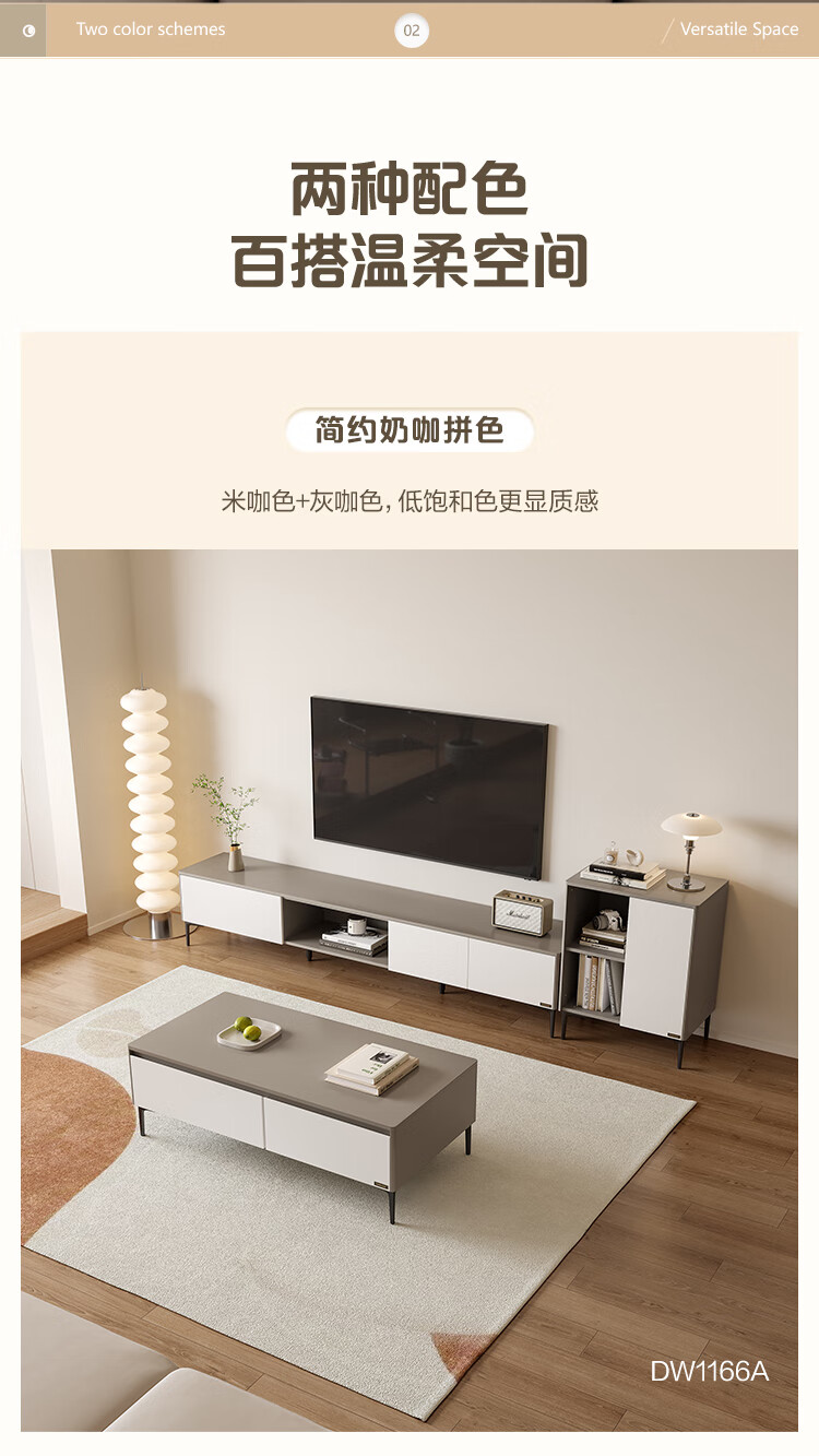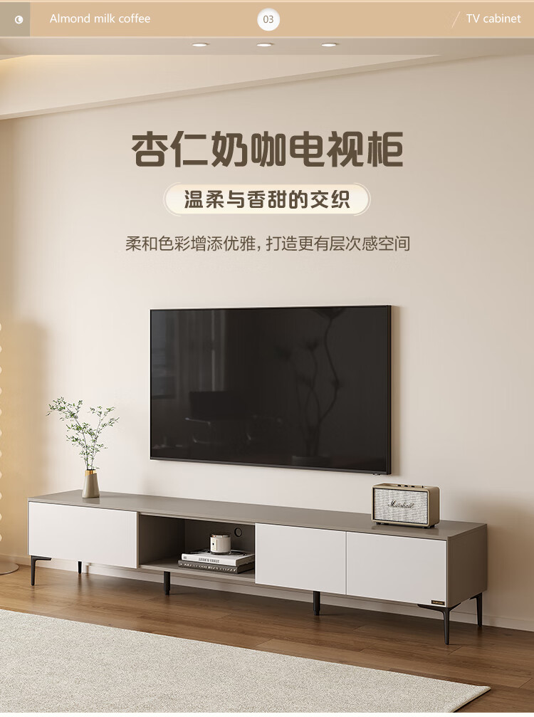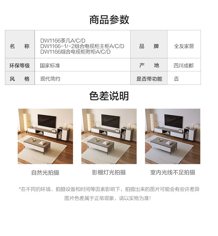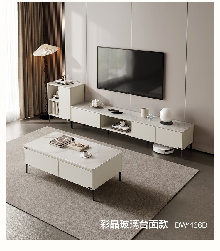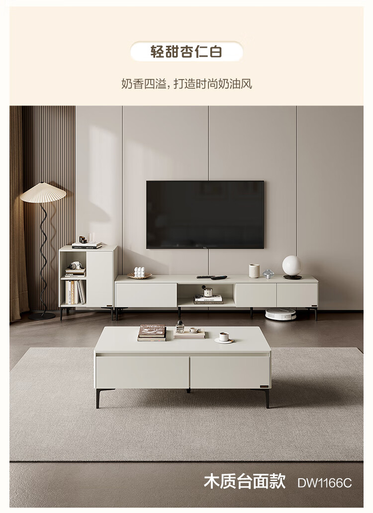 Quanyou Home Modern Minimalist Coffee Table TV Cabinet Combination Set Home Tall Storage Side Cabinet Living Room Furniture White | Wood | 1.2m Coffee Table
