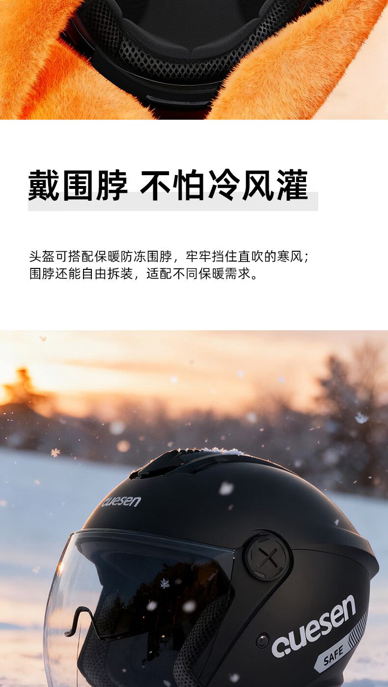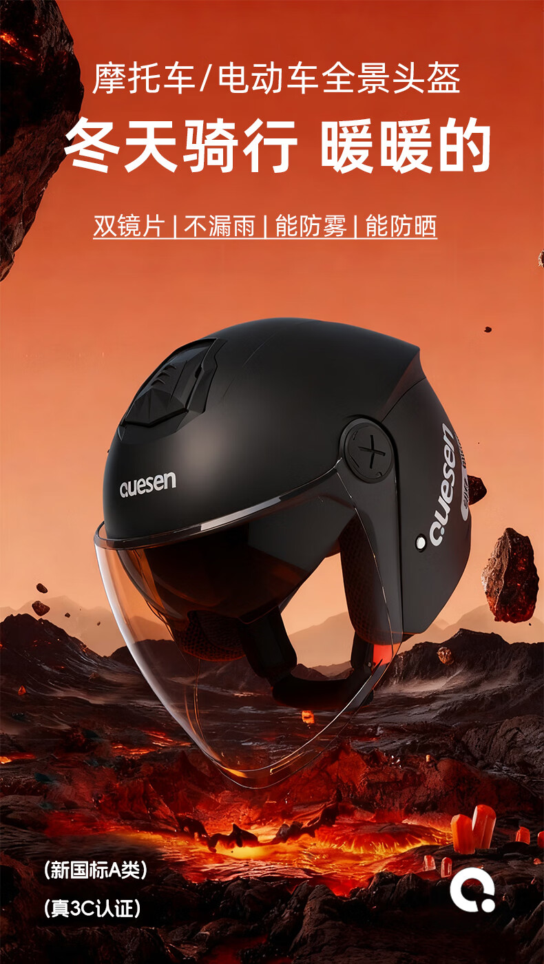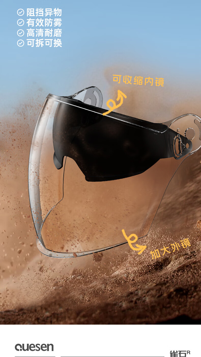 Queshi 3C certified electric motorcycle helmet with dual lenses, men's and women's all-season electric motorcycle helmet to keep warm in winter, HD lens + anti-fog cloth, warm yellow-double mirror