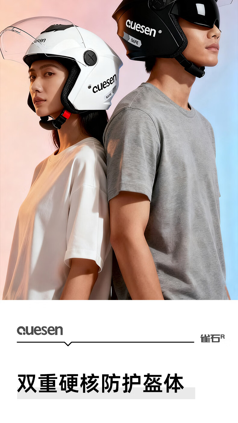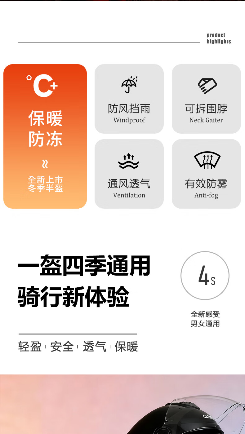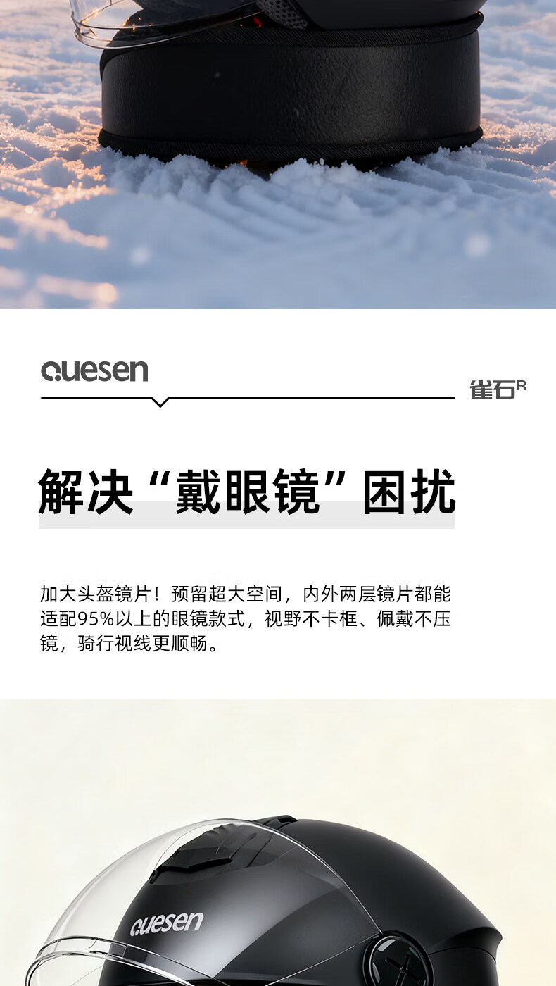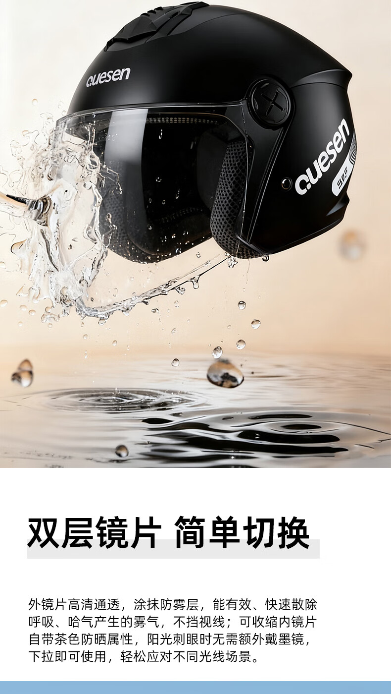 Queshi 3C certified electric motorcycle helmet with dual lenses, men's and women's all-season electric motorcycle helmet to keep warm in winter, HD lens + anti-fog cloth, warm yellow-double mirror