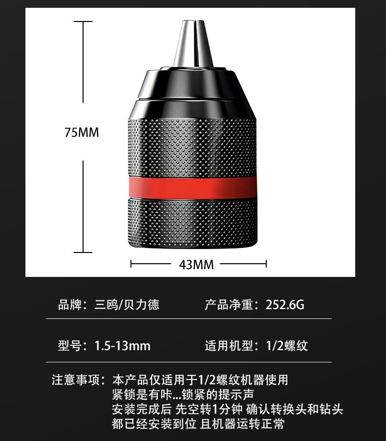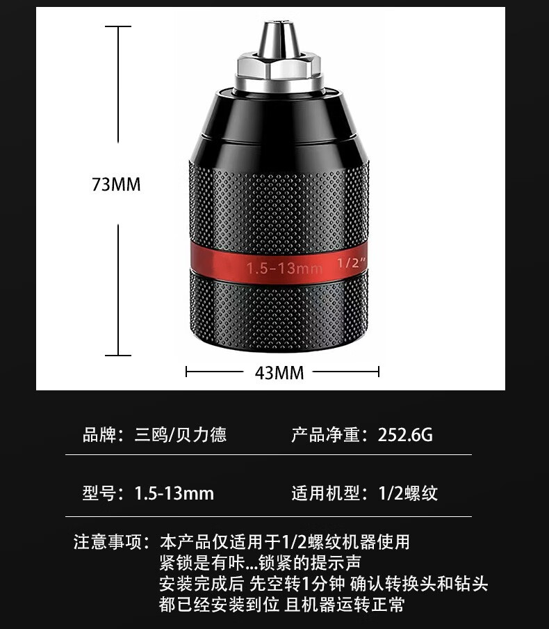 Chuangjimei self-locking ratchet chuck all-metal self-locking electric wrench electric hammer conversion head hand drill converter pistol drill 13mm ratchet chuck + wrench adapter rod